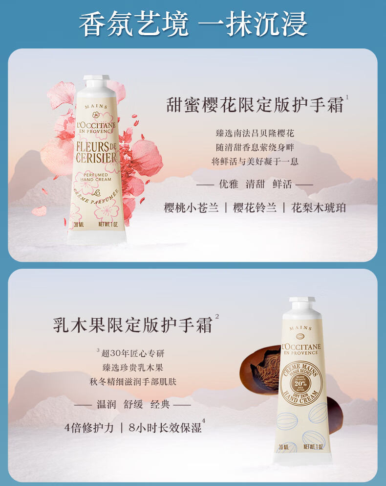 欧舒丹护手霜礼盒香氛乳木果4支装保湿滋润留香润肤圣诞礼物(香型随机)