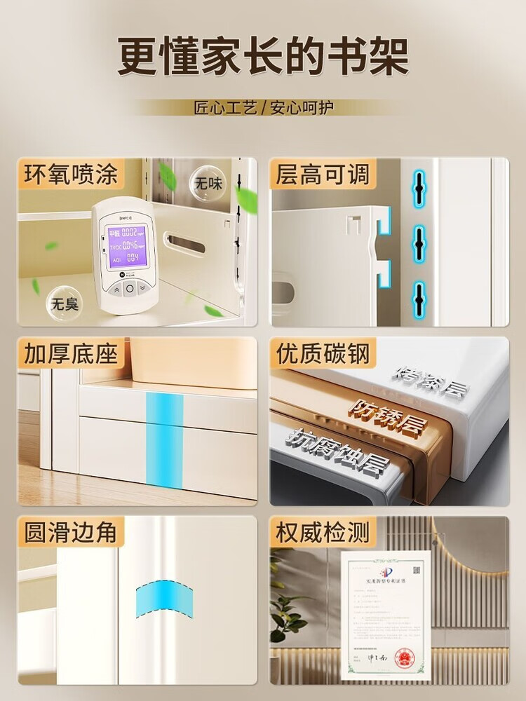 弘星隆图书馆书架加厚家用书房书柜客厅玩具收纳柜卧室床头柜简易书柜 高1.8米5层-白色 长0.9米*宽0.3米主架【送挡书条】