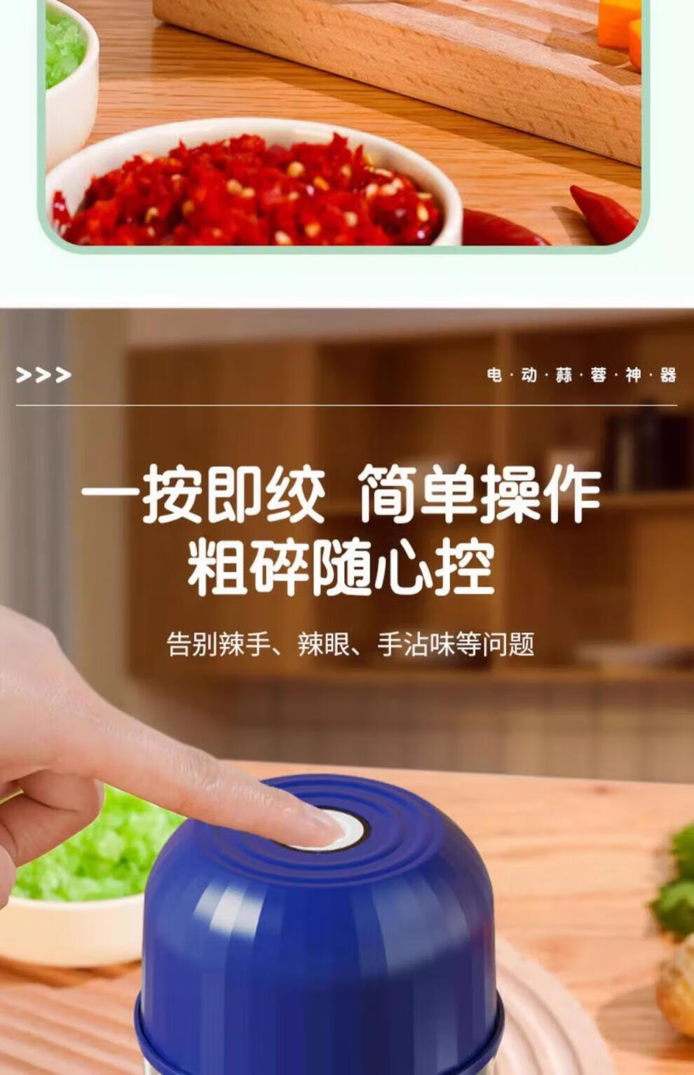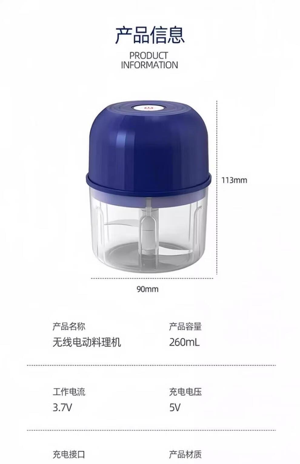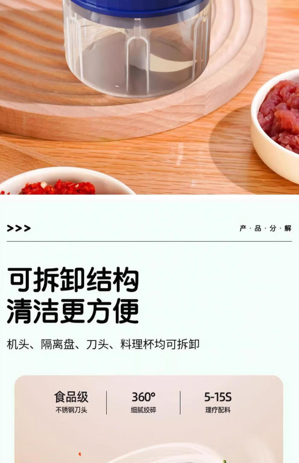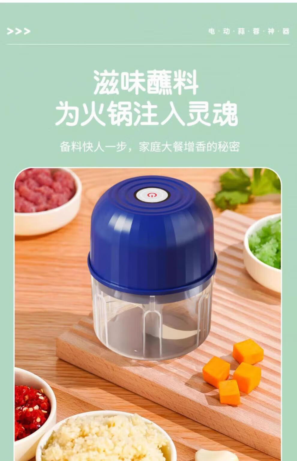 其他家电动蒜泥机家用自动打蒜绞肉辣椒搅拌器 宝蓝色260ml【1个装】强劲续航 精钢刀头