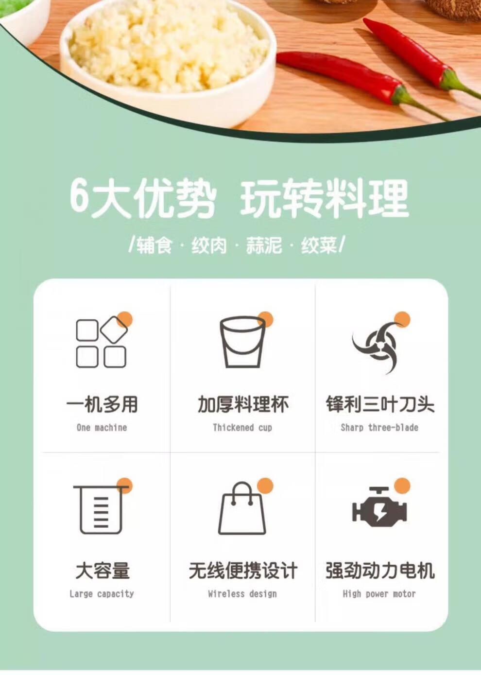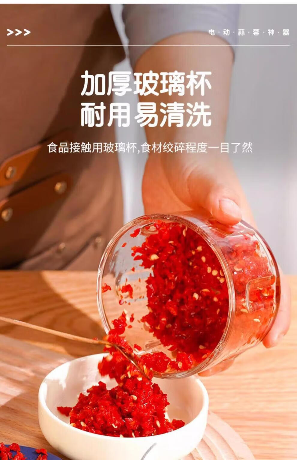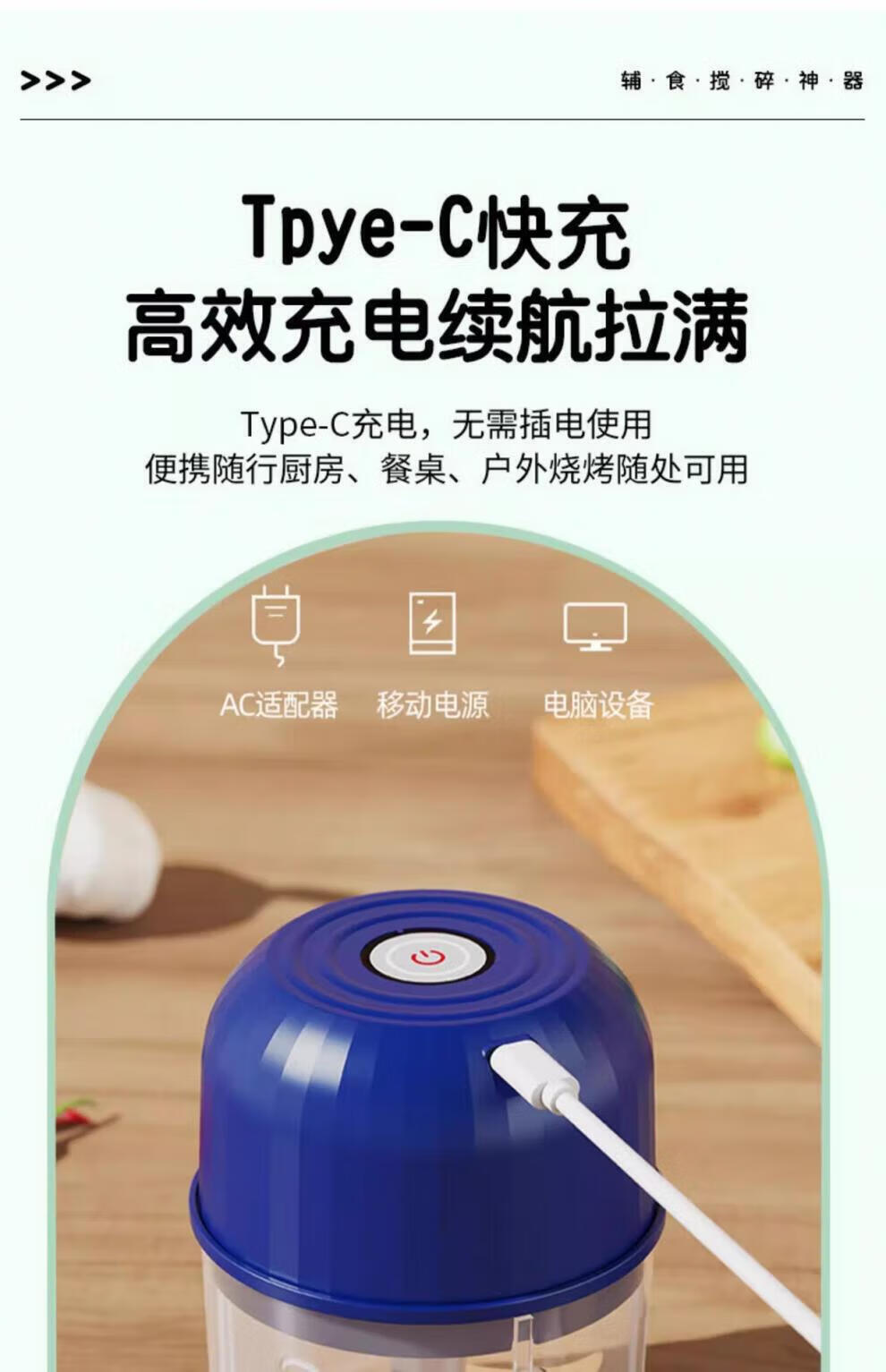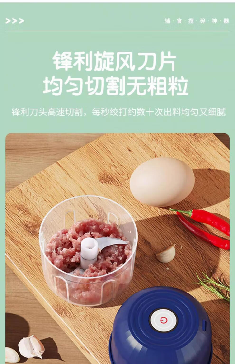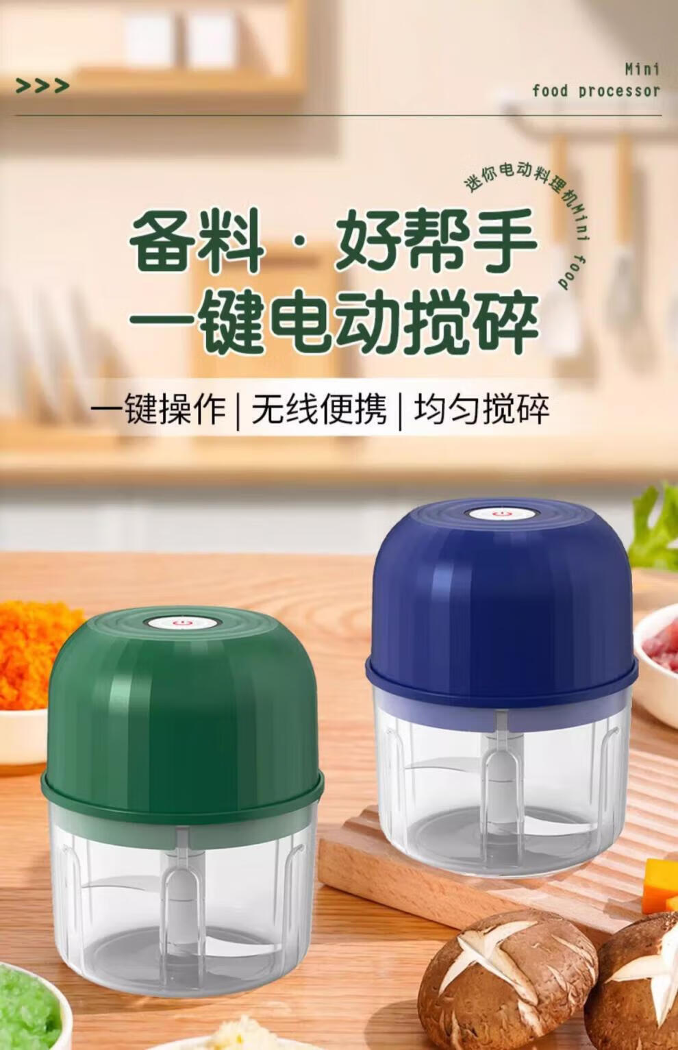 其他家电动蒜泥机家用自动打蒜绞肉辣椒搅拌器 宝蓝色260ml【1个装】强劲续航 精钢刀头