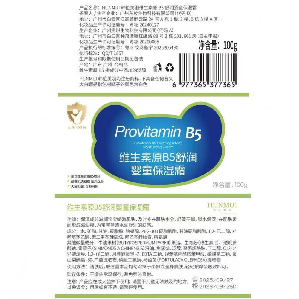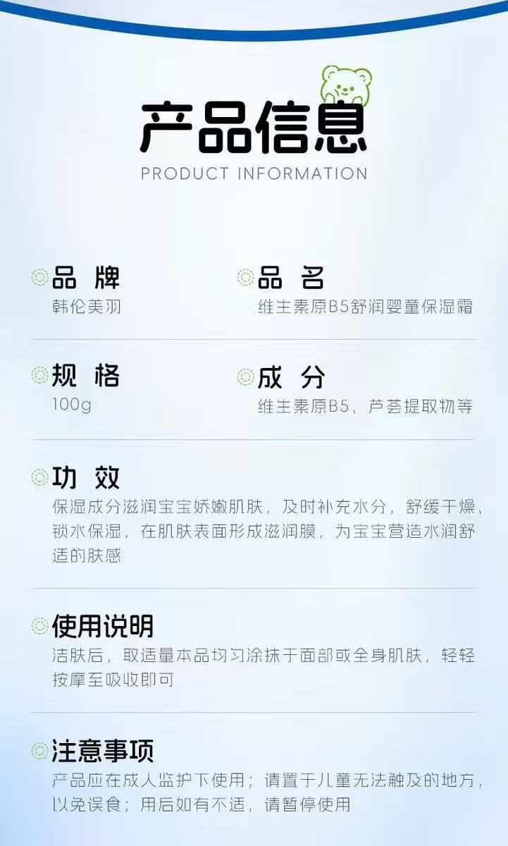 韩伦美羽B5儿面霜秋冬保湿舒缓润肤 维生素B5儿面霜