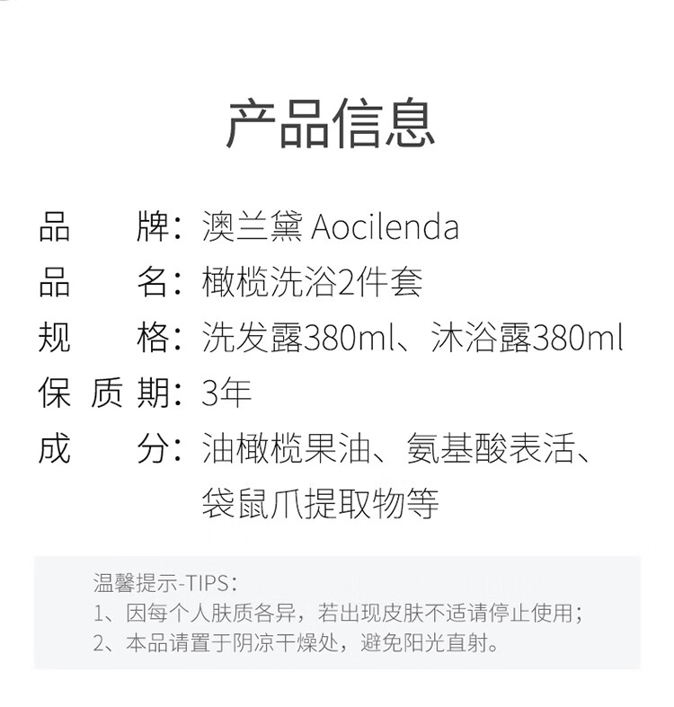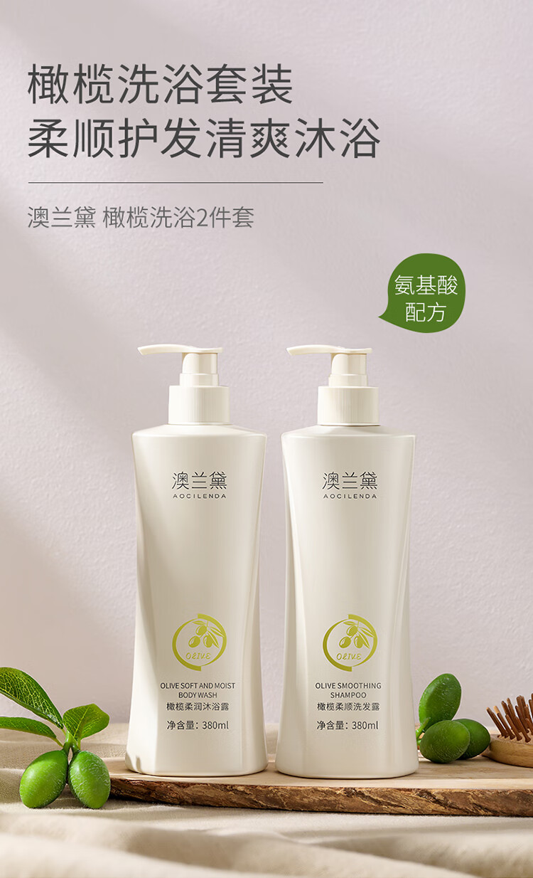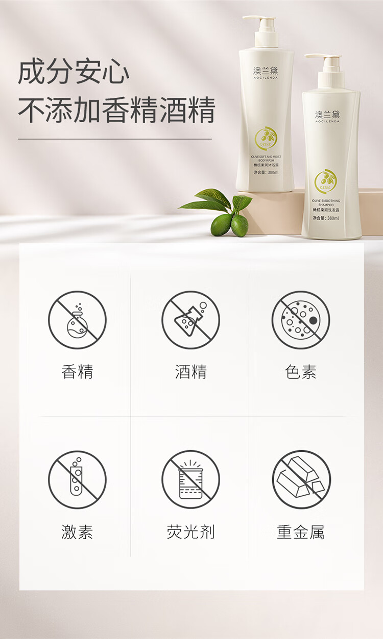 澳兰黛准孕妇沐浴露男女洗头洗发水洗澡液两件套深层清洁学生护理不假滑 橄榄柔润沐浴露380ml