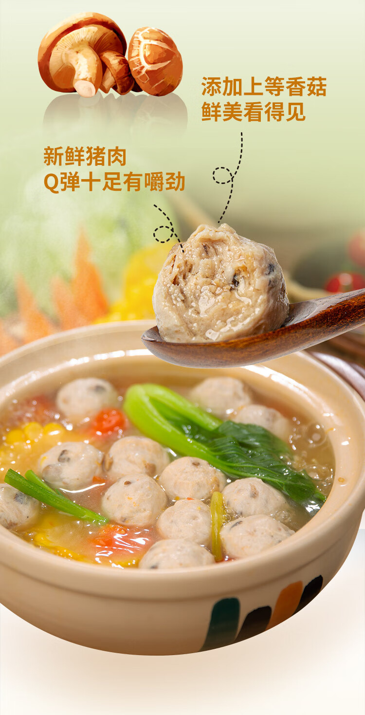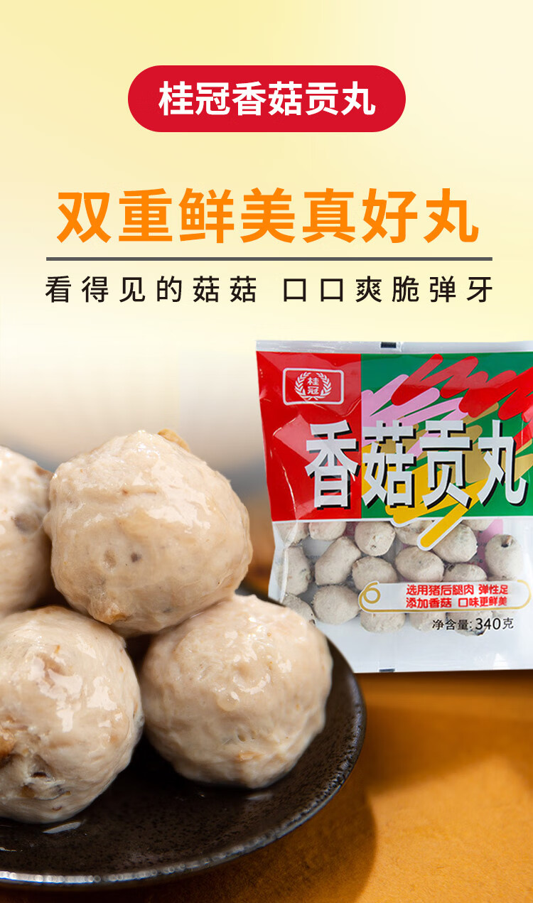 桂冠 香菇贡丸 340g 冷冻 猪后腿肉 贡丸 火锅麻辣烫关东煮食材
