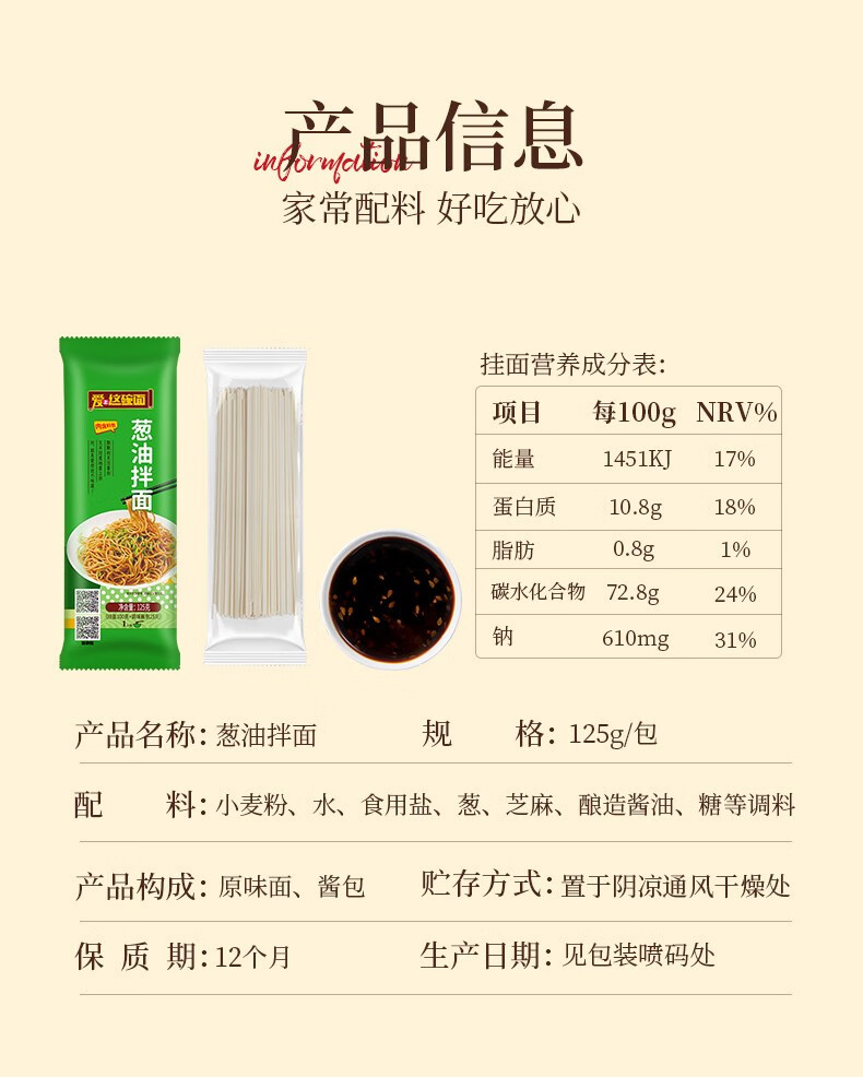 巨香 葱油拌面 健康非油炸方便速食学生宿舍早餐面料包面拌面 【上海葱油面】125g*5袋