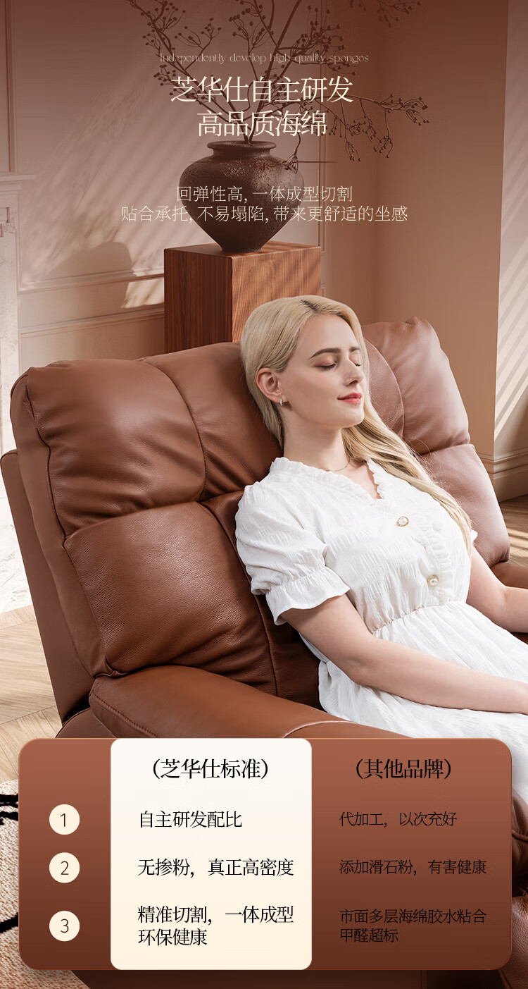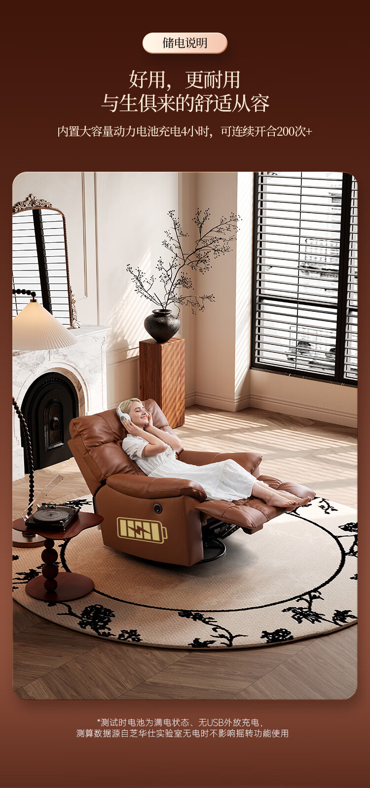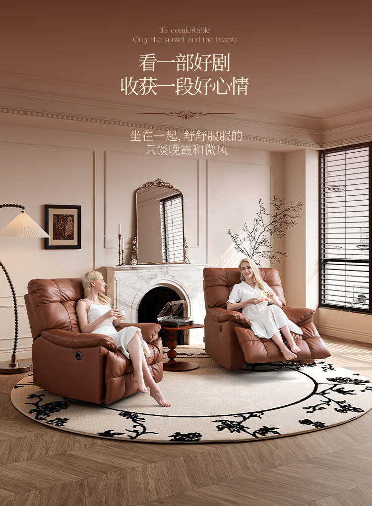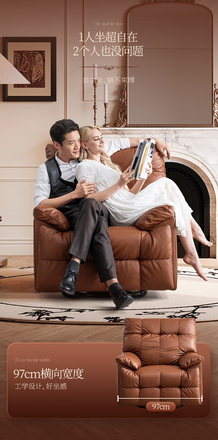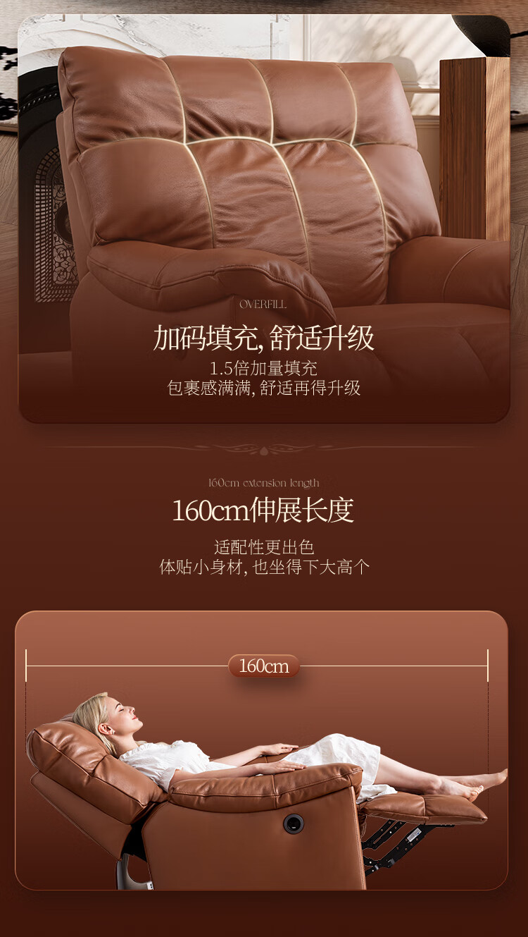 芝华仕(CHEERS)头等舱智能椅真皮单人电动沙发无线充美拉德休闲椅芝华士30266橘