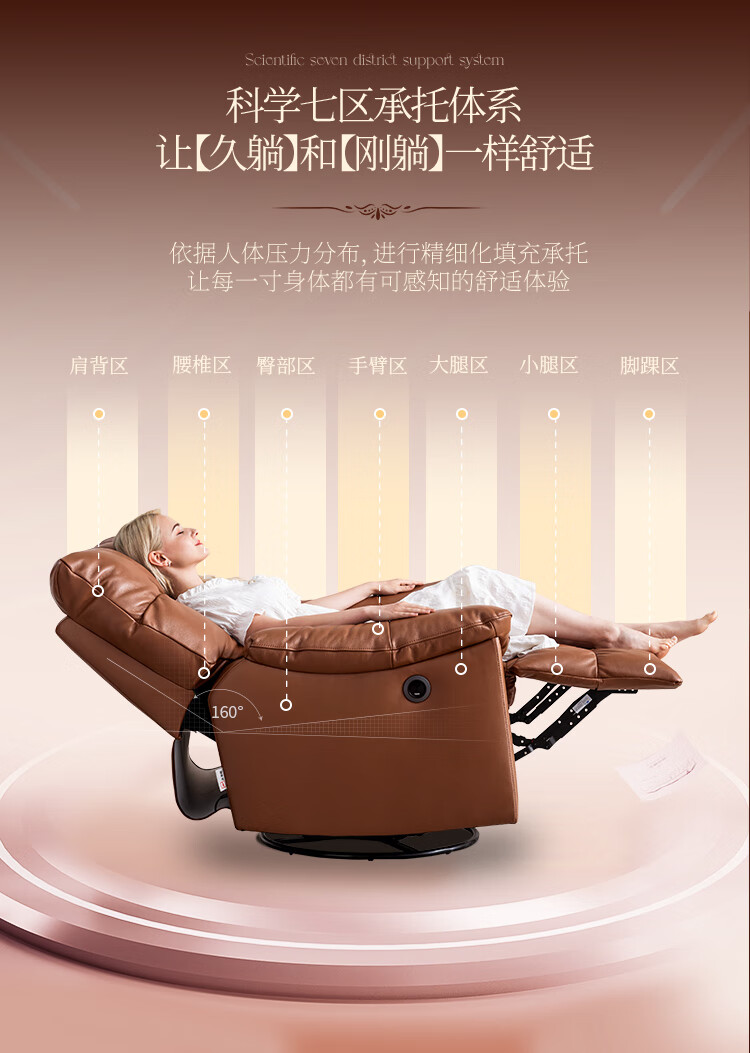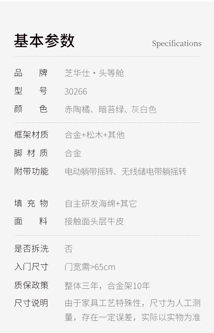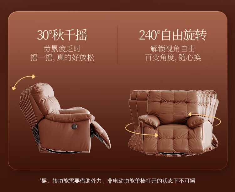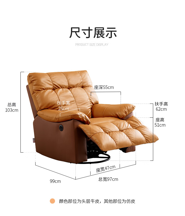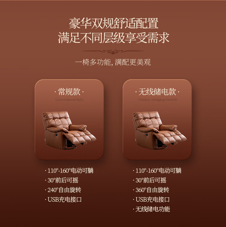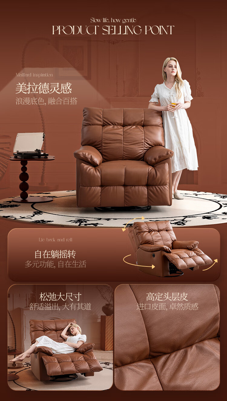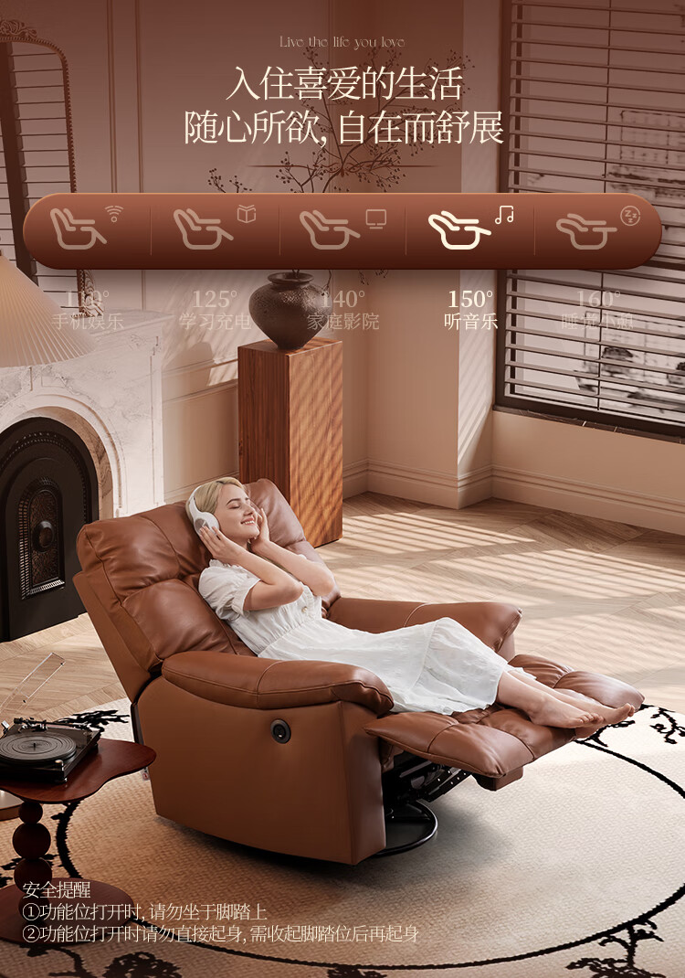 芝华仕(CHEERS)头等舱智能椅真皮单人电动沙发无线充美拉德休闲椅芝华士30266橘
