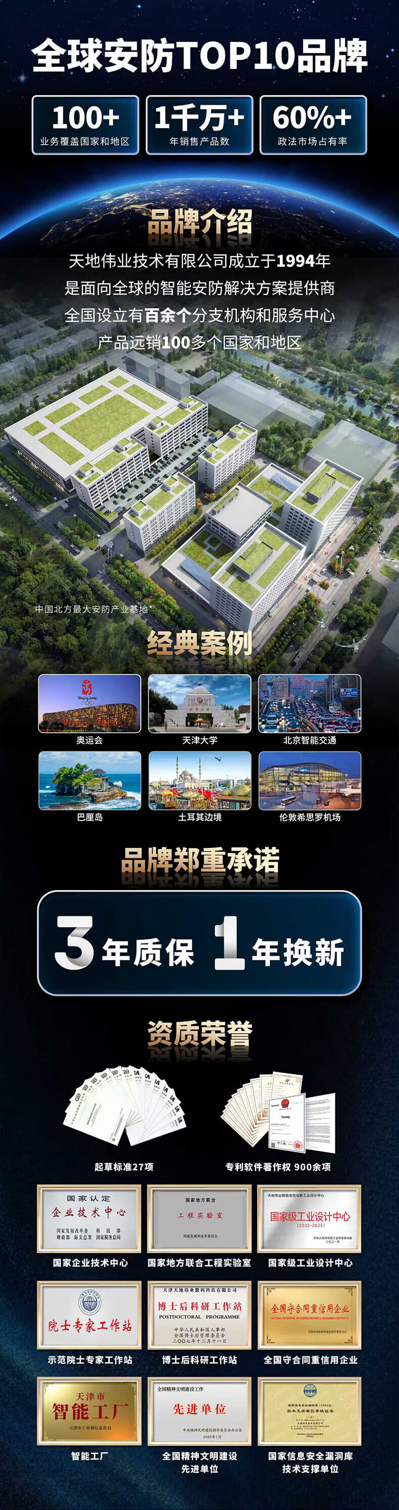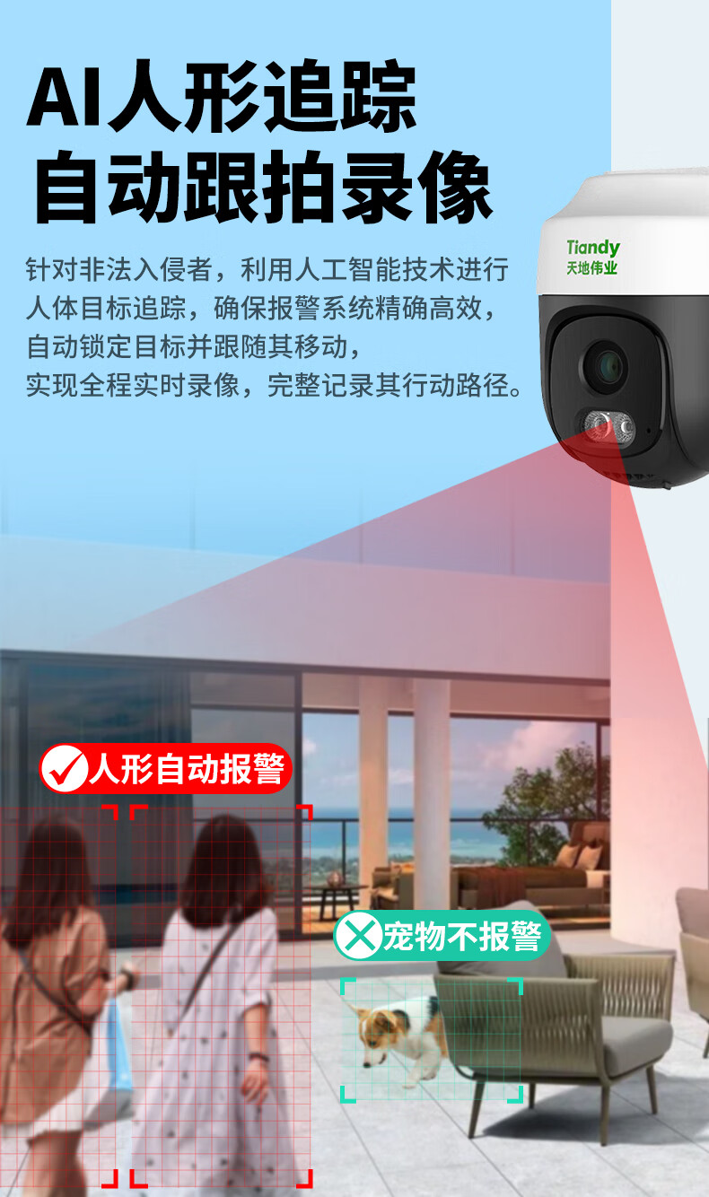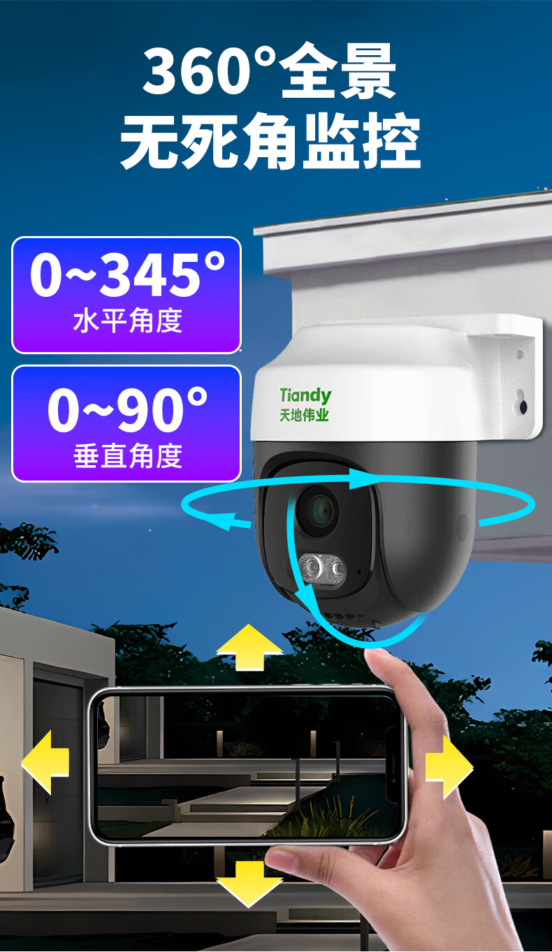 天地伟业监控摄像头家用 400万像素WiFi监控室外 监控器360度无死角带夜视超清 手机远程人形检测全彩夜视