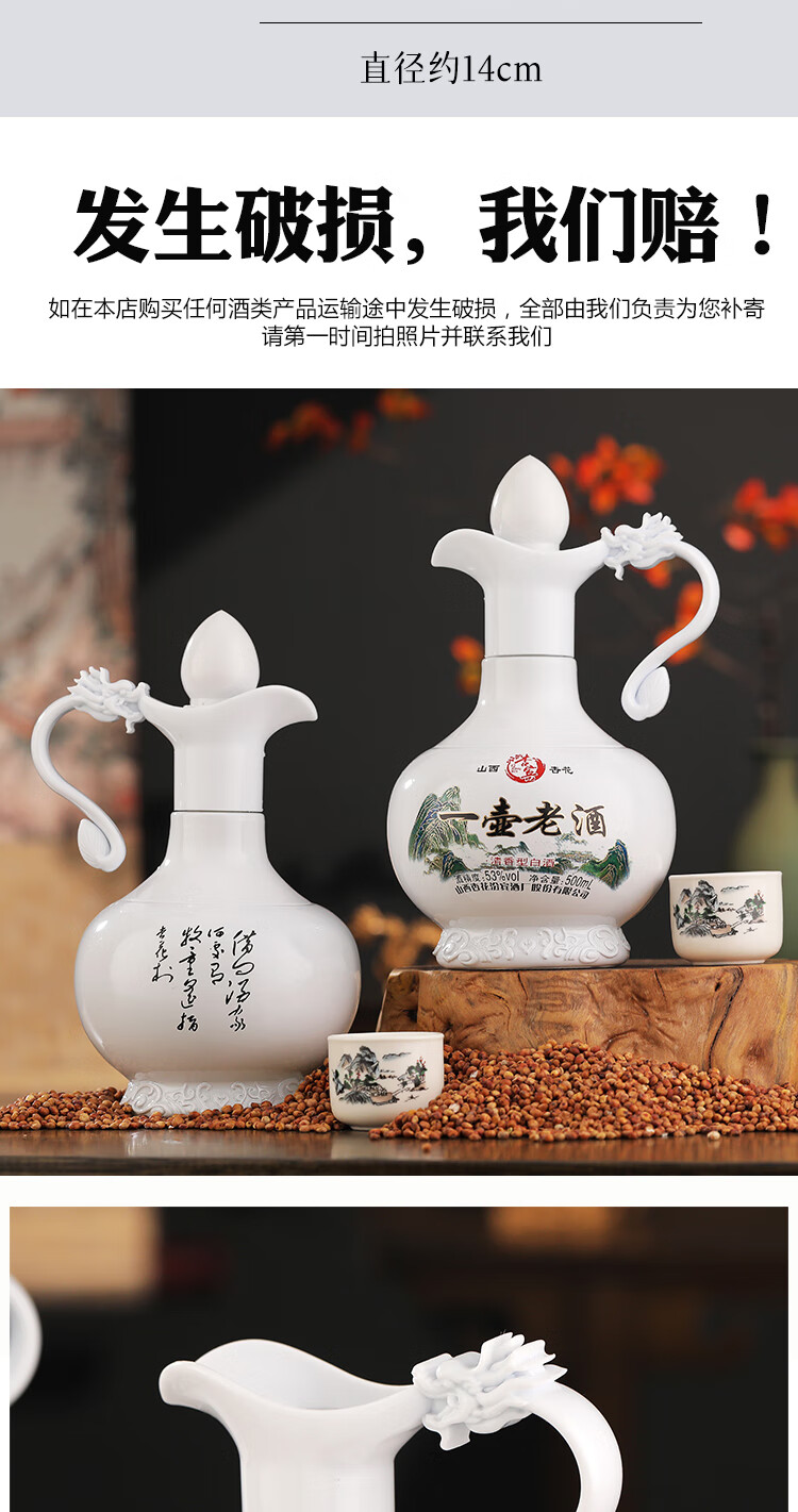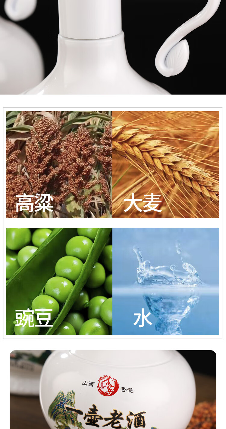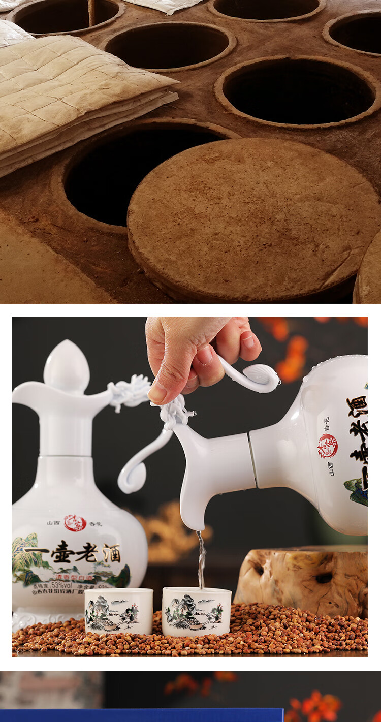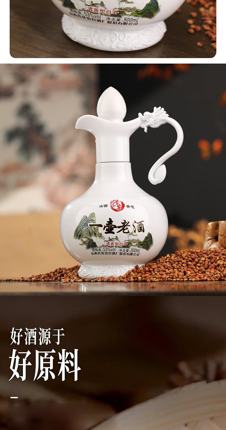 杏宾山西杏花村原产地53度清香型一壶老酒 53度 500mL 2瓶 礼盒装+2酒杯