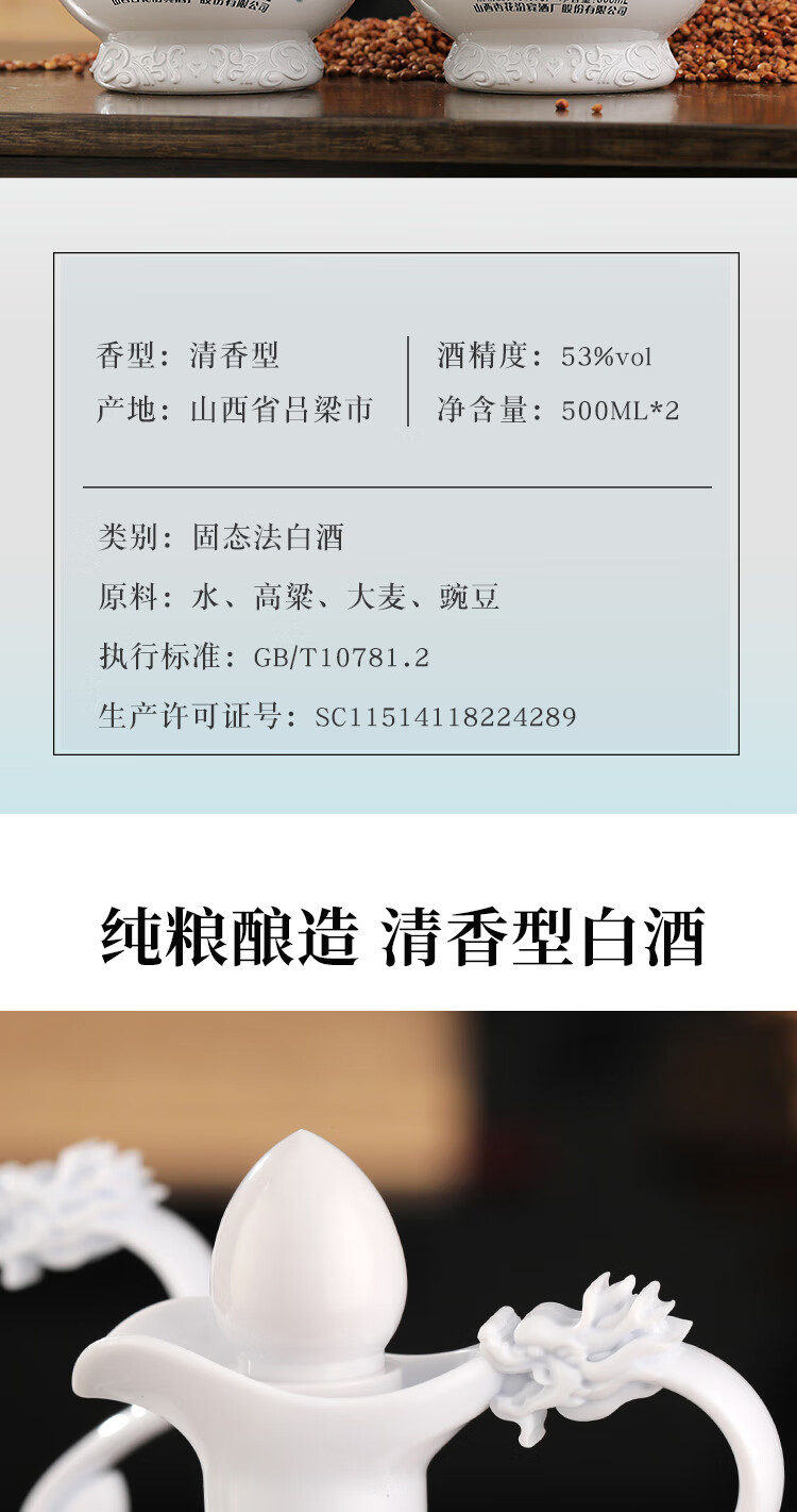 杏宾山西杏花村小兰花53度清香型白酒纯粮食酒送礼自饮 53度 500mL 2瓶 手提礼盒