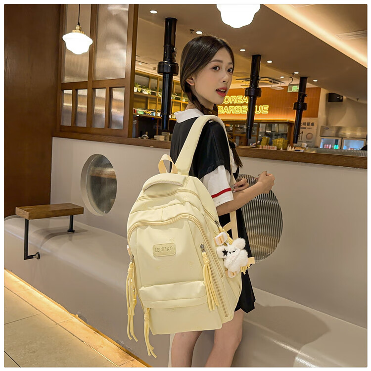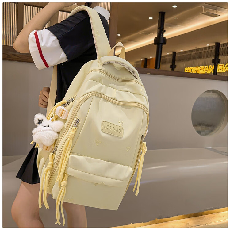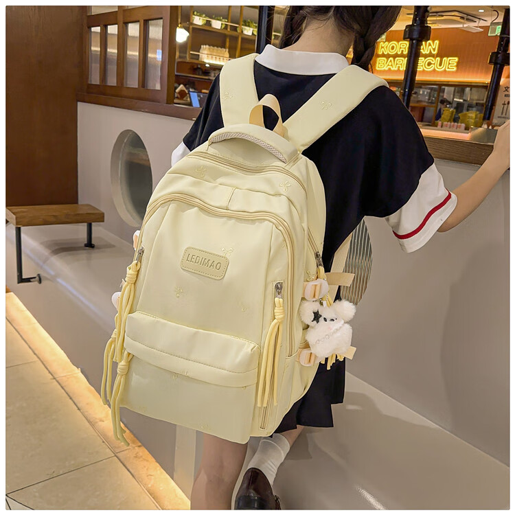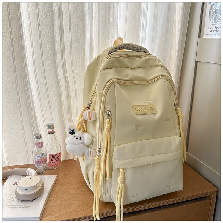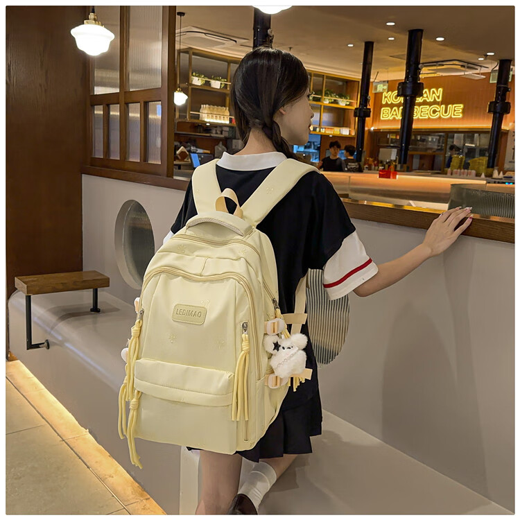 CLBD书包女高颜值ins韩版可爱背包大容量初高中小学生简约通勤双肩包 黄色 大号