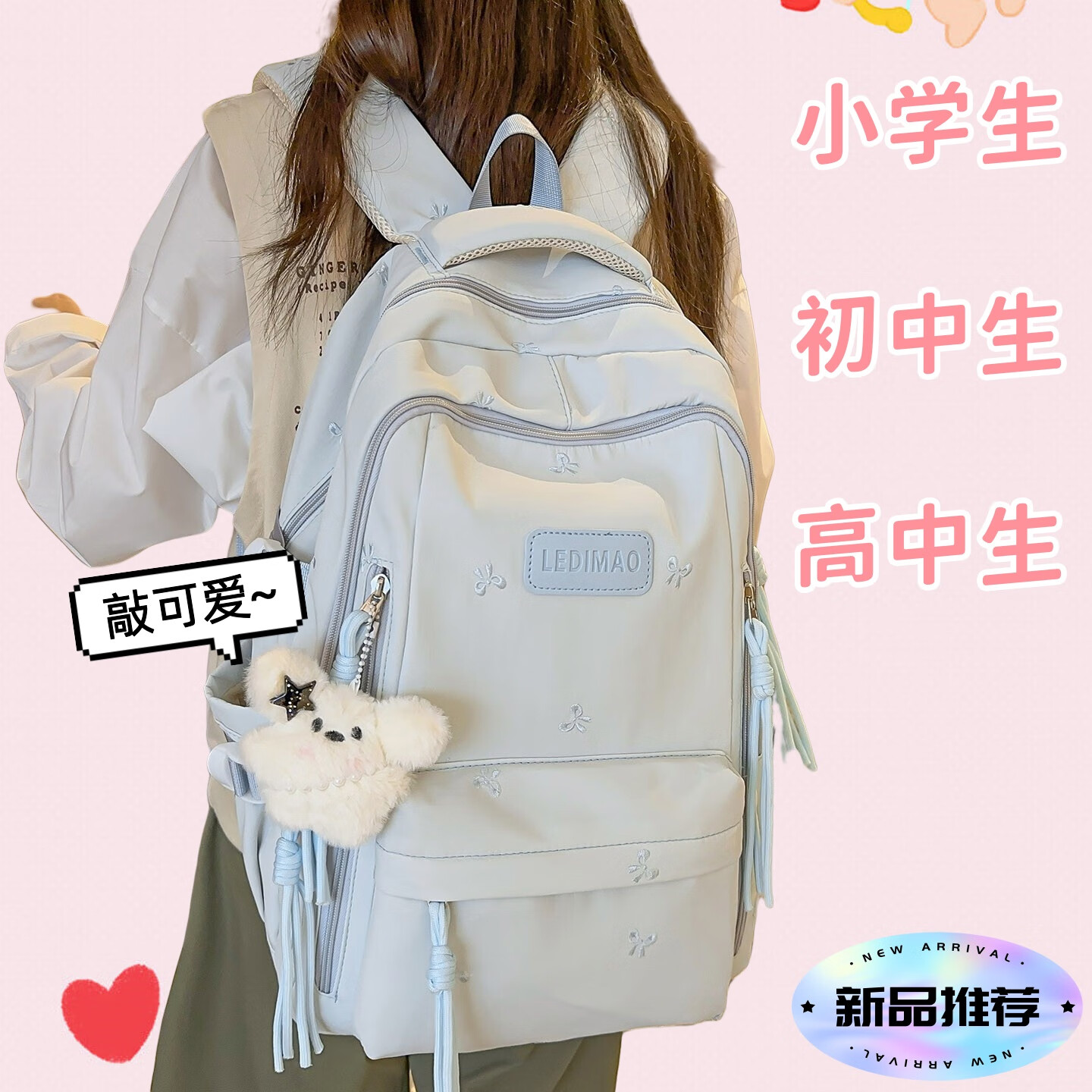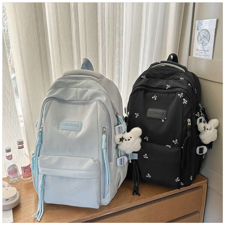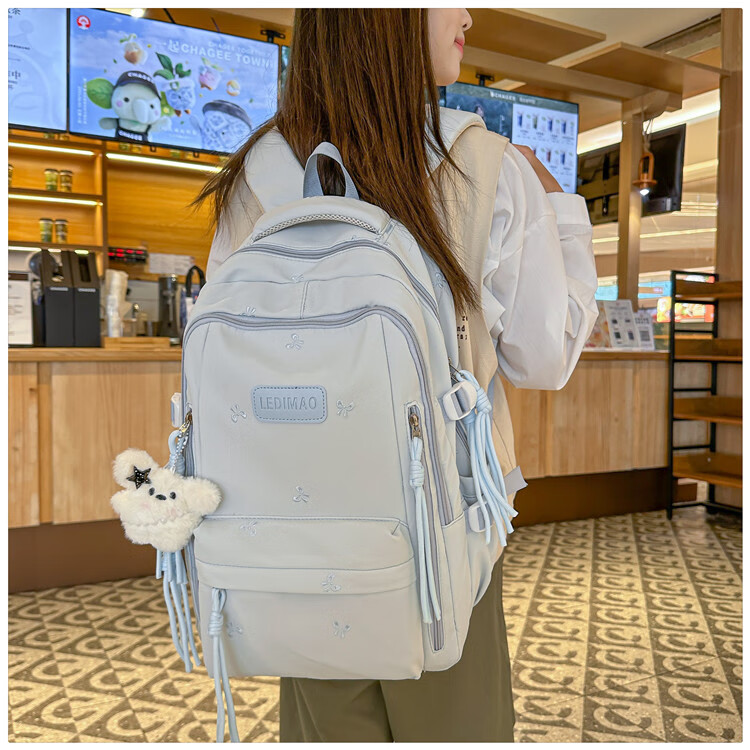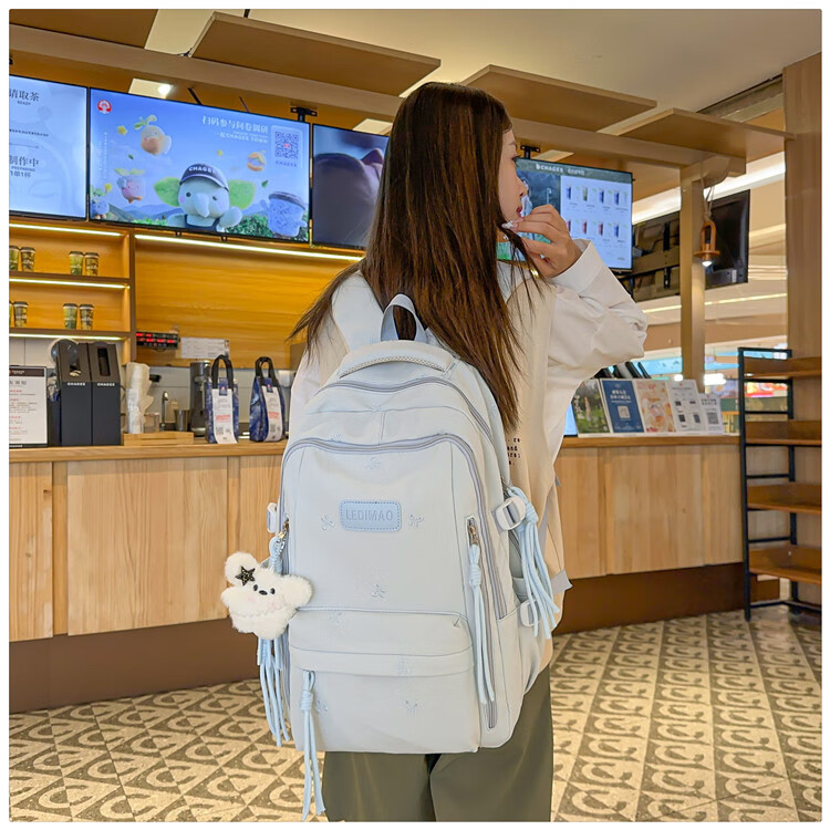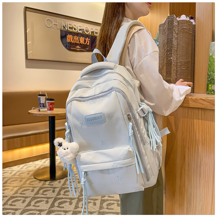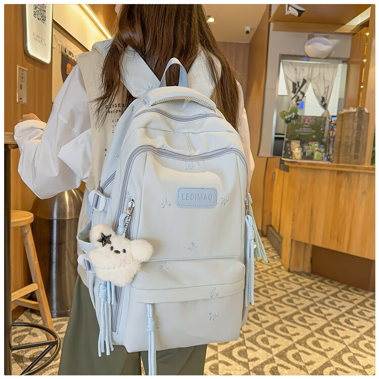 CLBD书包ins风韩系小众初高中生高颜值双肩包女简约大容量小学生背包 蓝色