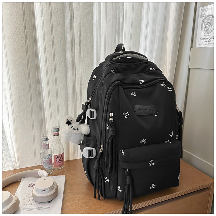 CLBD书包女初高中生大容量双肩包男潮流ins风韩系高颜值学生旅行背包 黑色 小学5年级-大学