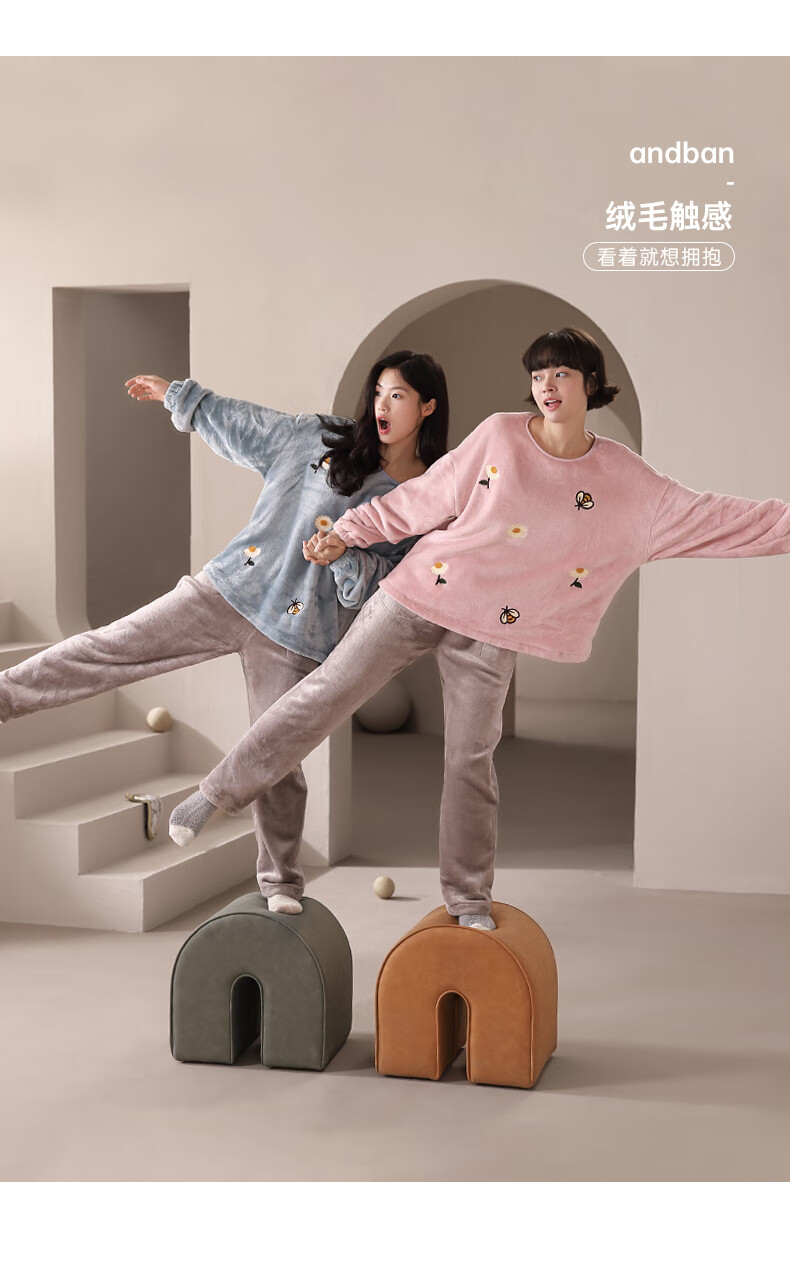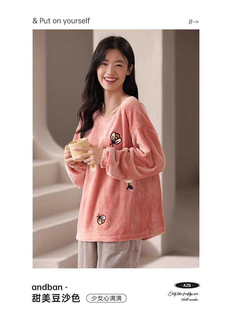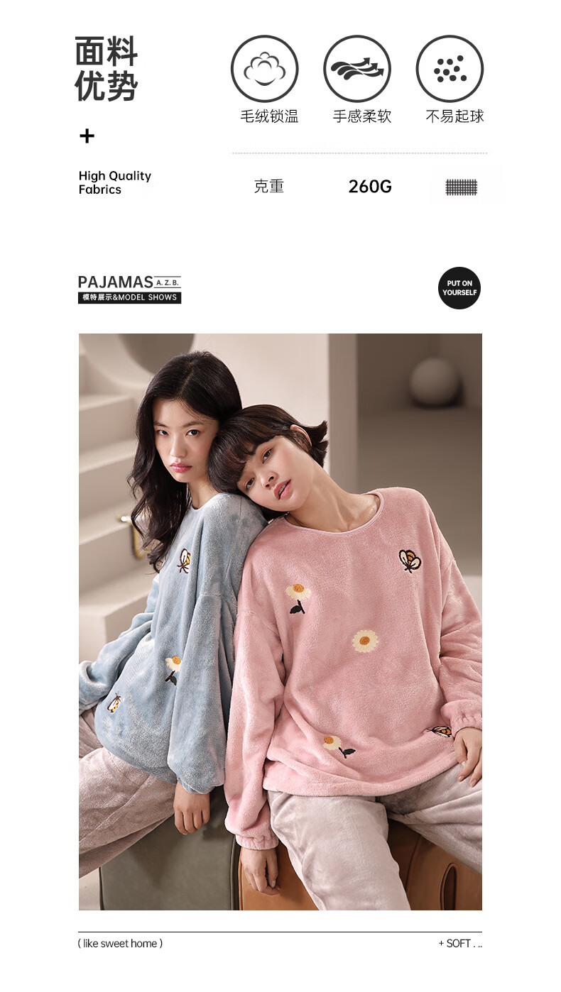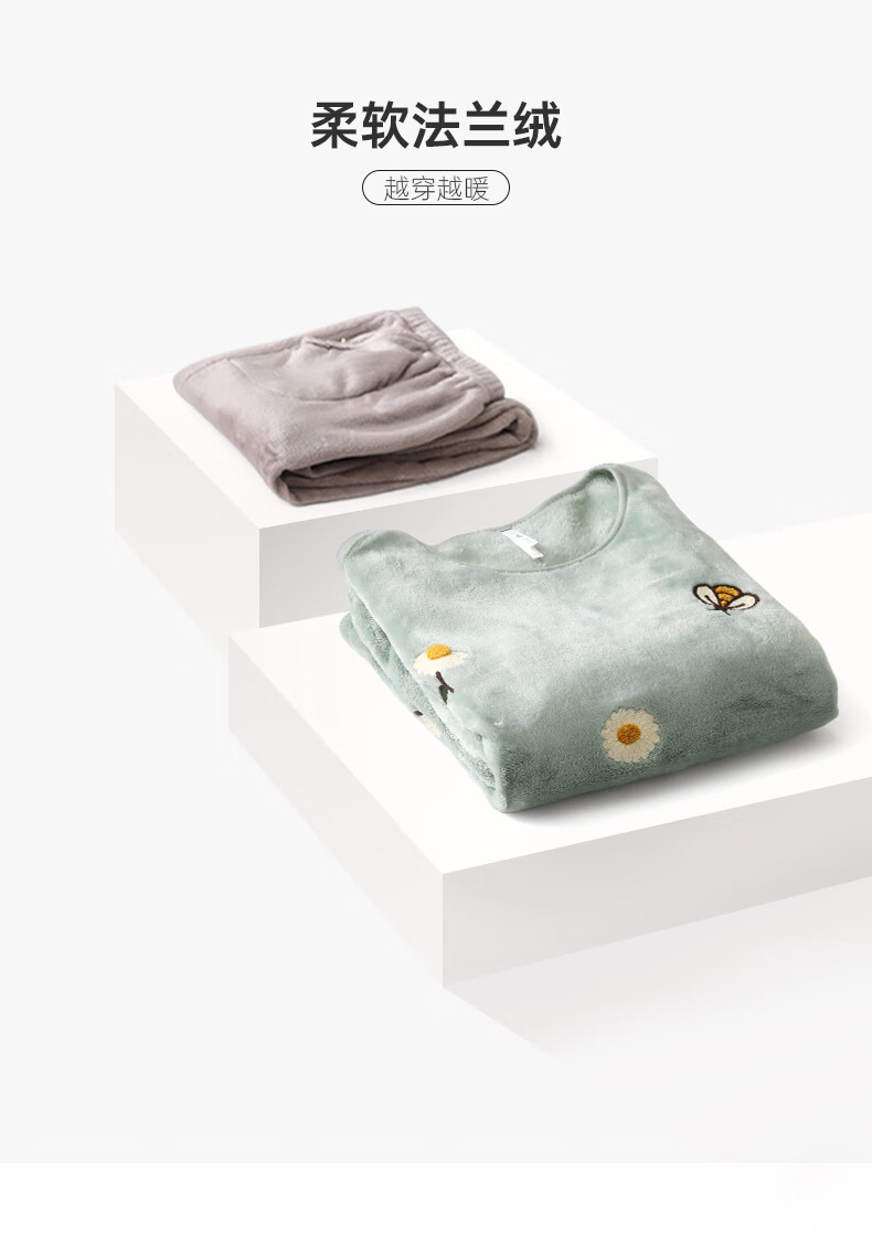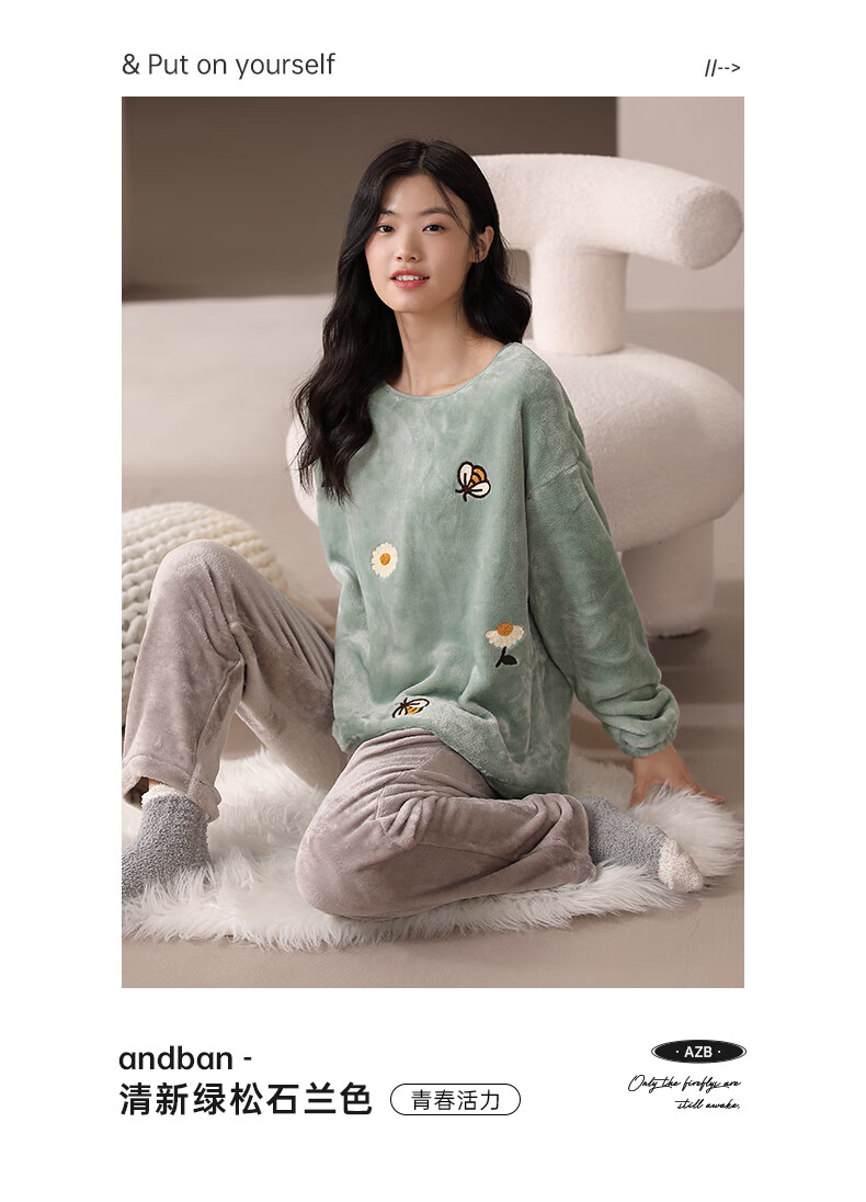 安之伴睡衣女秋冬法兰绒长袖套头圆领卡通多色保暖舒适可外穿家居服套装 冰兰(法兰绒锁温又柔软) L