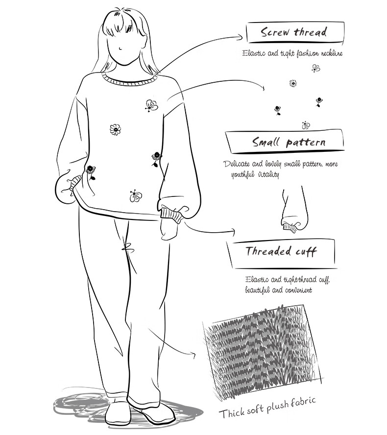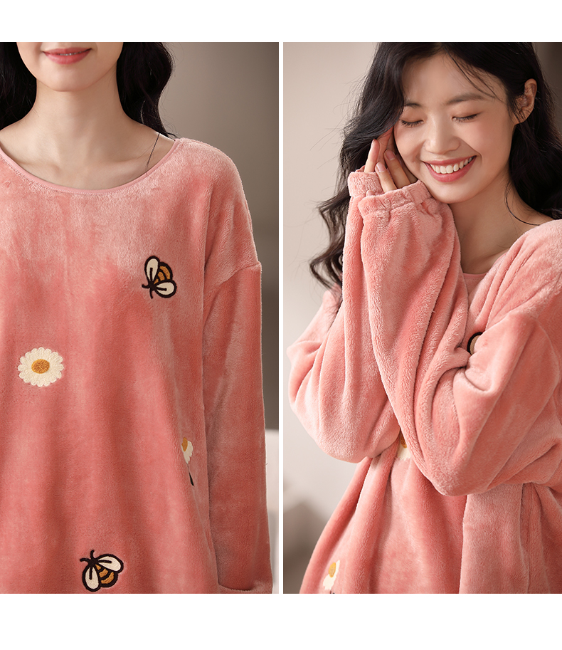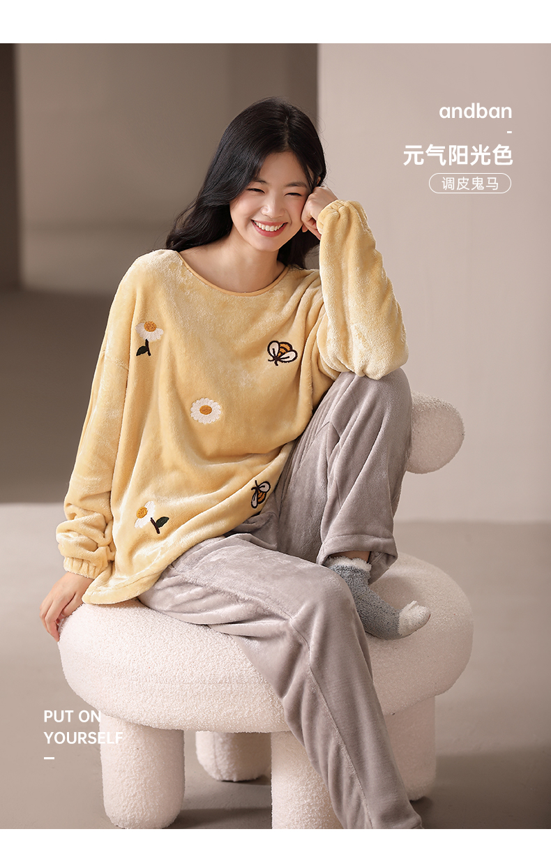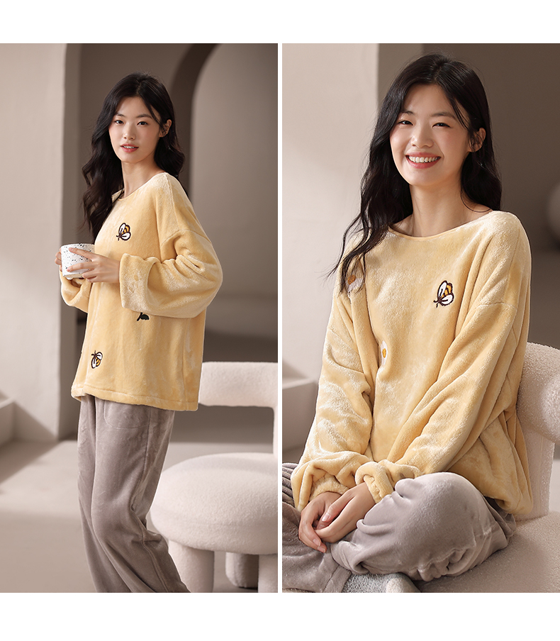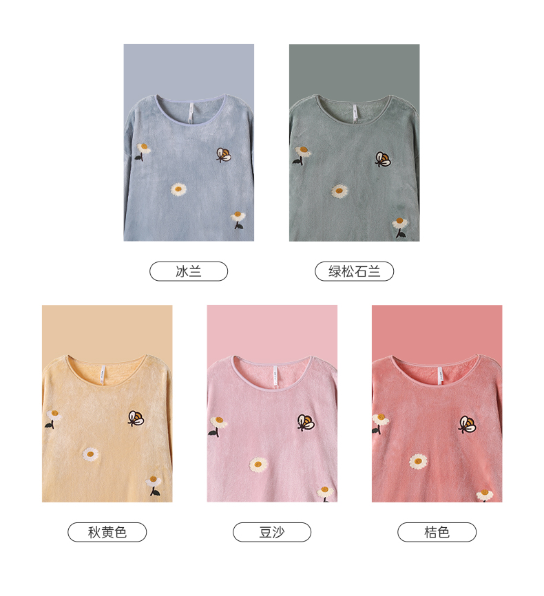 安之伴睡衣女秋冬法兰绒长袖套头圆领卡通多色保暖舒适可外穿家居服套装 冰兰(法兰绒锁温又柔软) L