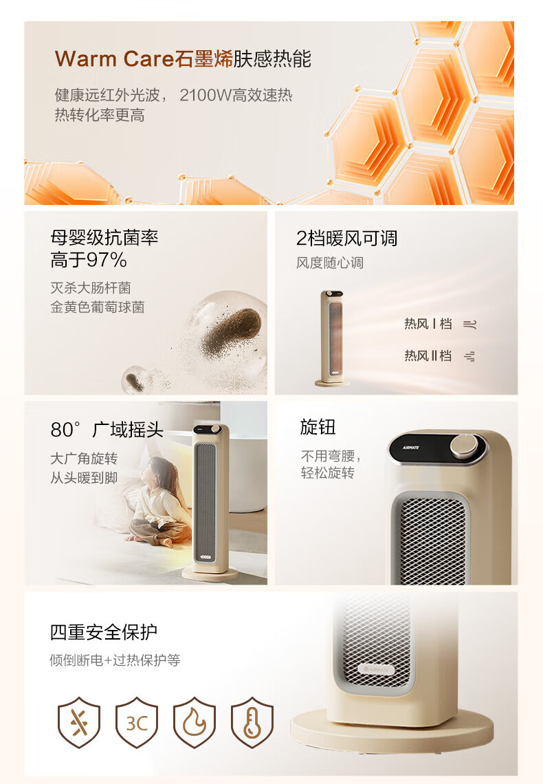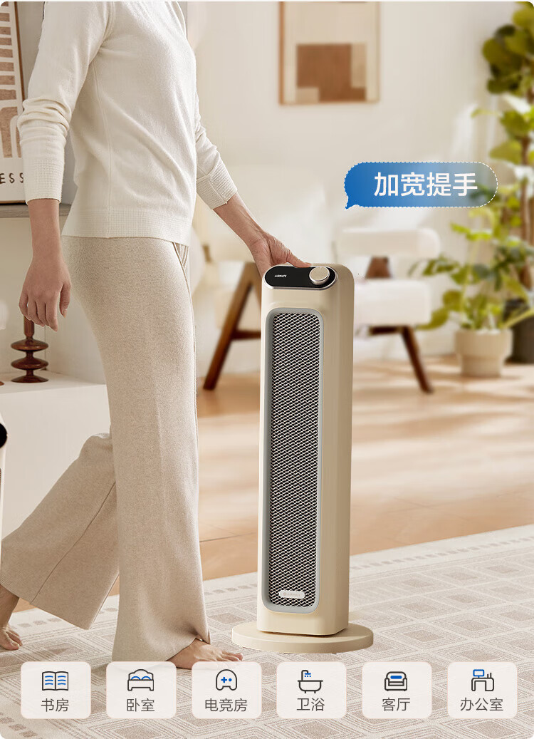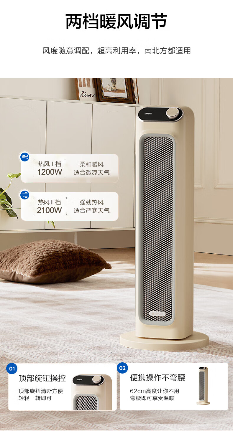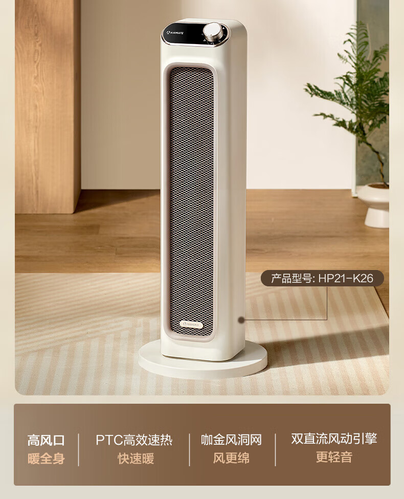 艾美特(AIRMATE) 取暖器家用立式暖风机速热电暖风智能定时电暖器遥控客厅卧室热风机烤火炉电暖气片 遥控款石墨烯PTC速热-HP21-R27