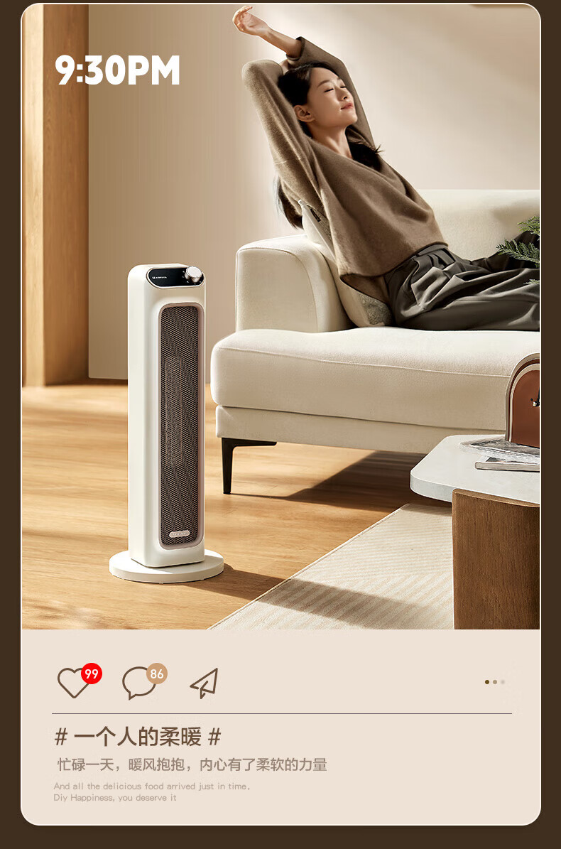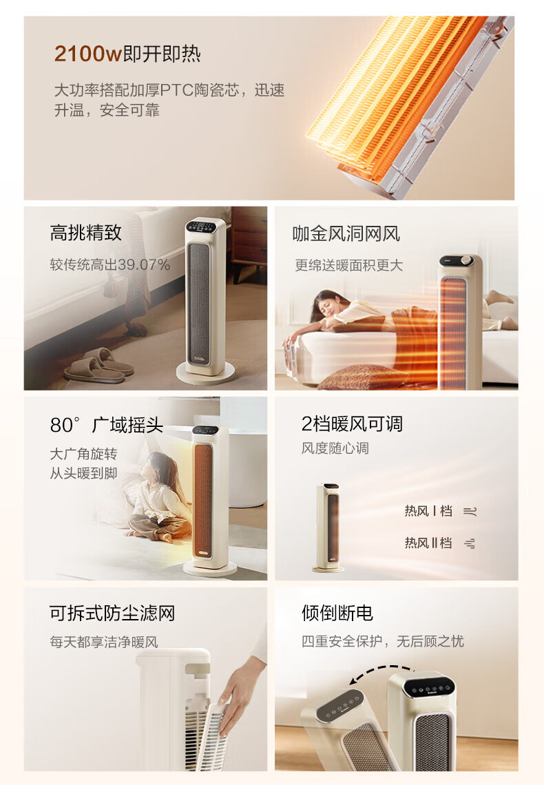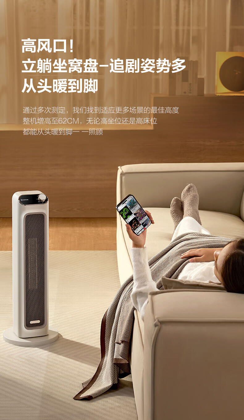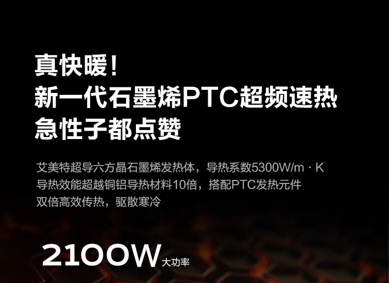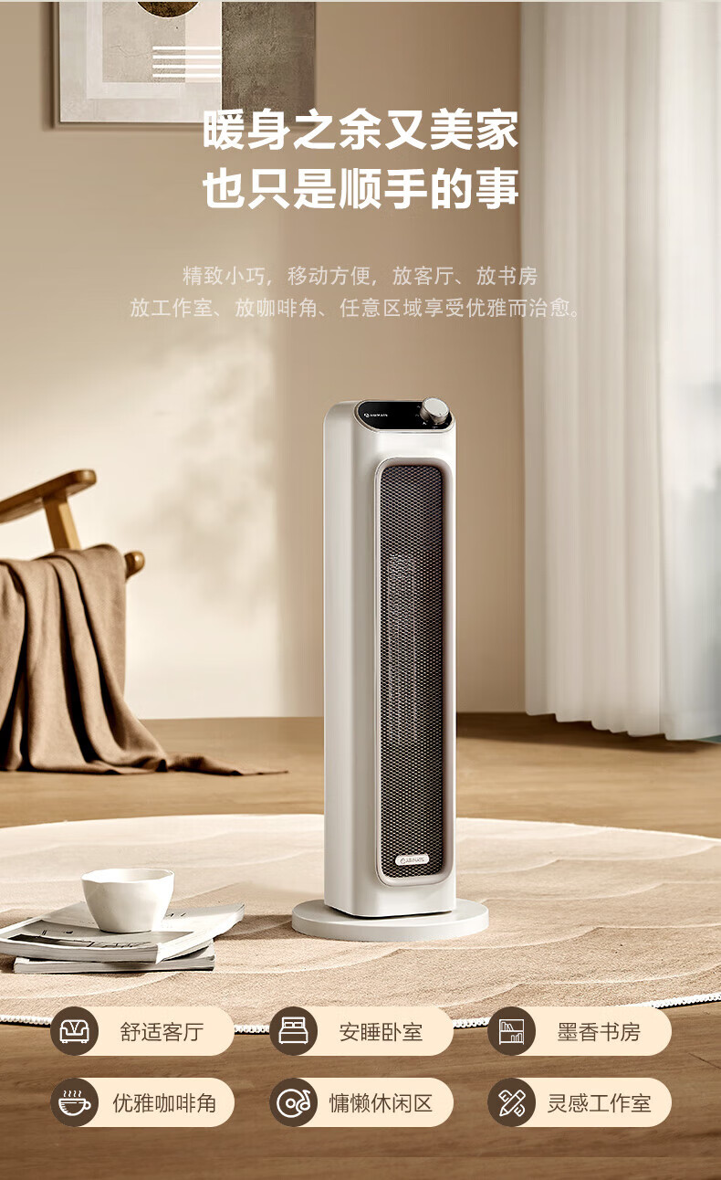 艾美特(AIRMATE) 取暖器家用立式暖风机速热电暖风智能定时电暖器遥控客厅卧室热风机烤火炉电暖气片 遥控款石墨烯PTC速热-HP21-R27