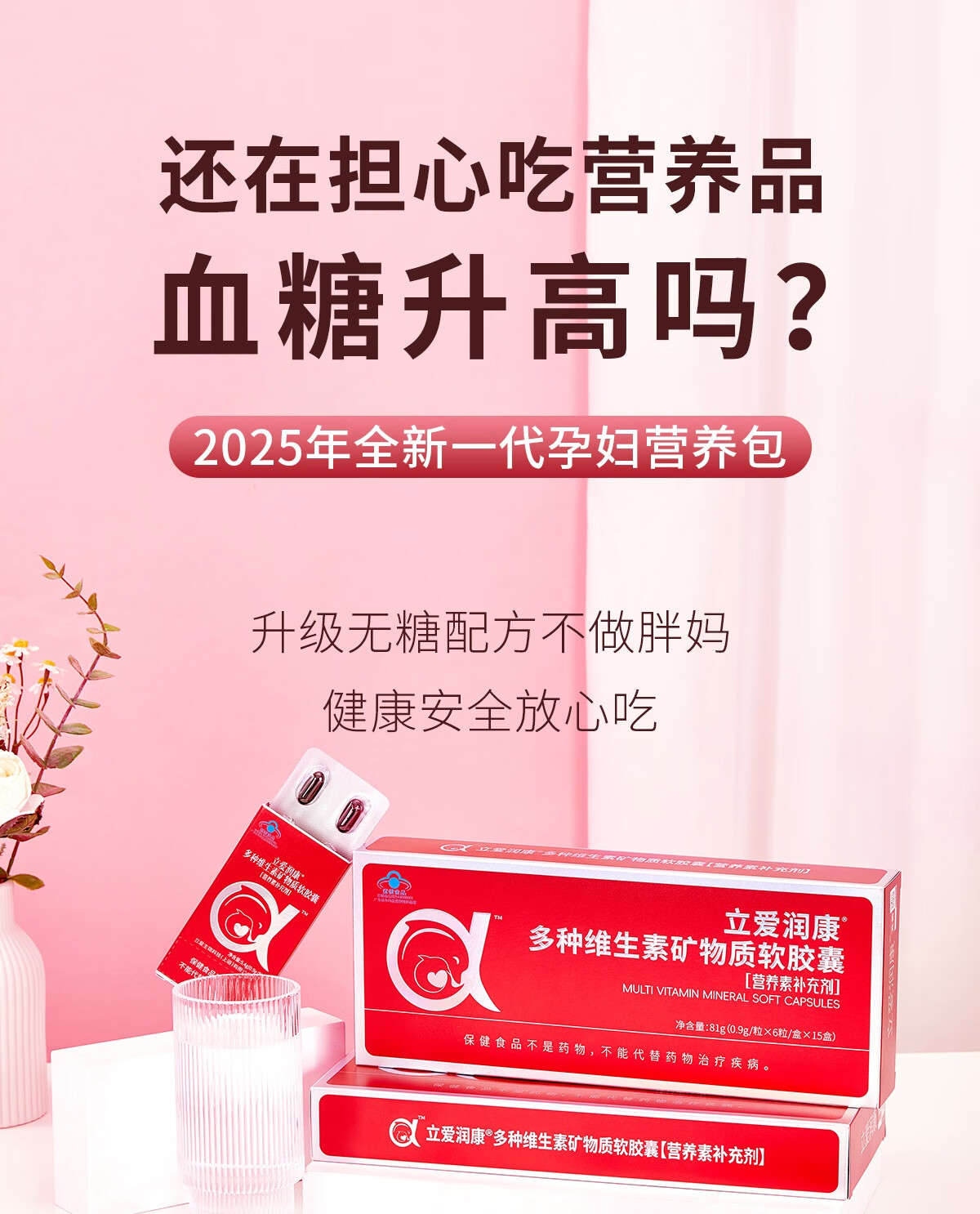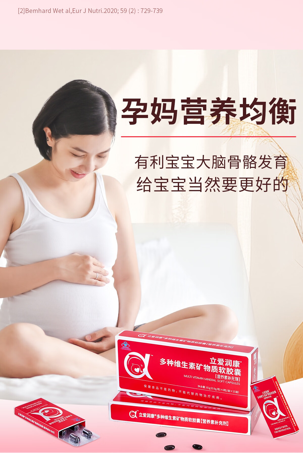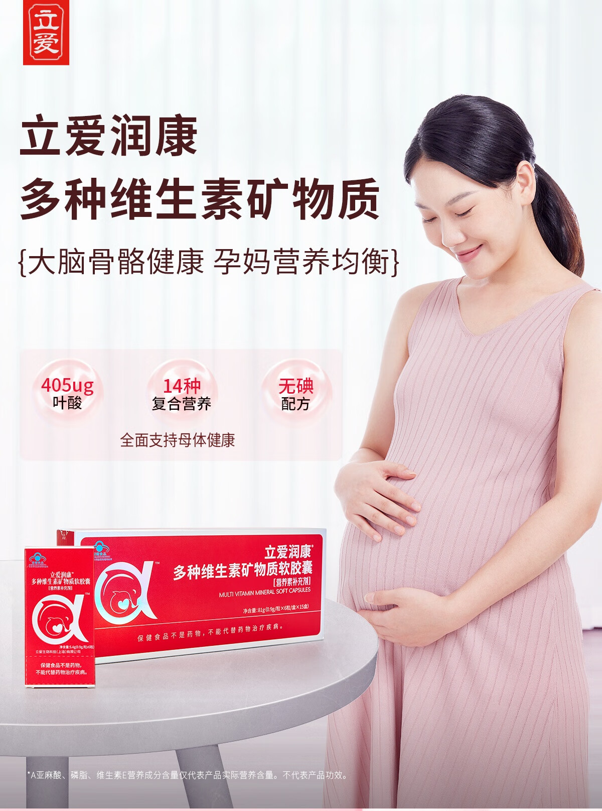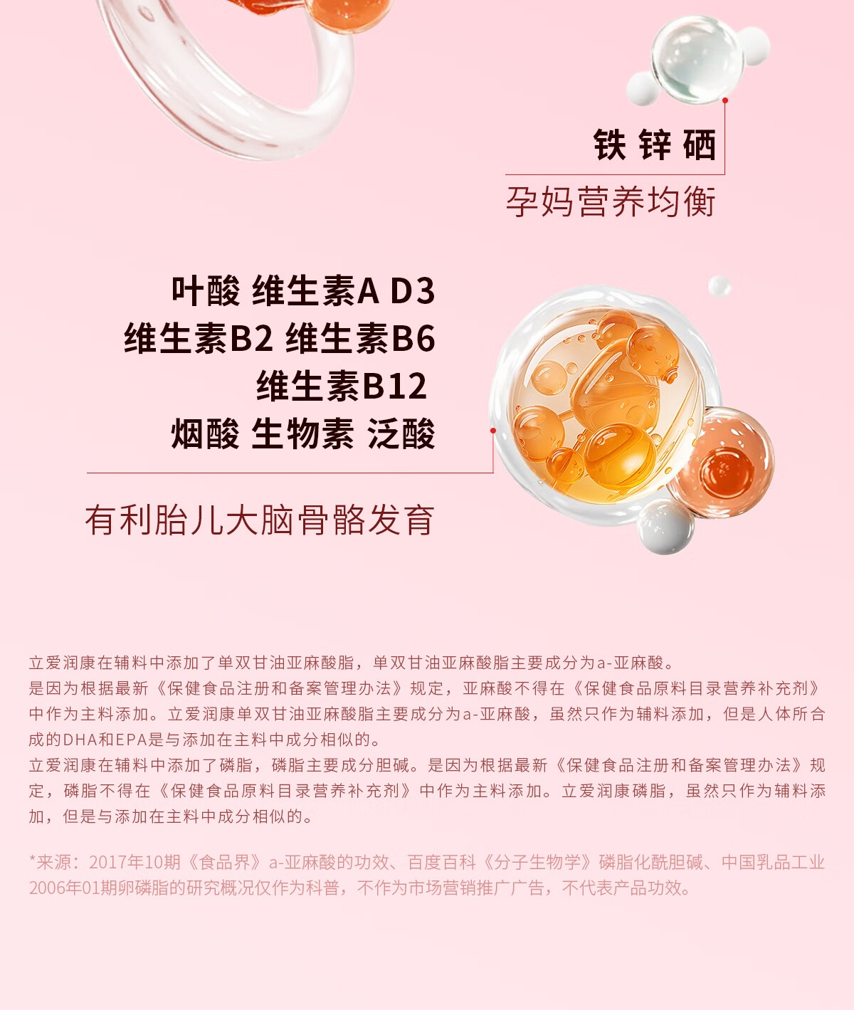 立爱润康孕妇DHA补叶酸孕妇复合维生素多种矿物质铁亚麻酸软胶囊 润康30天量