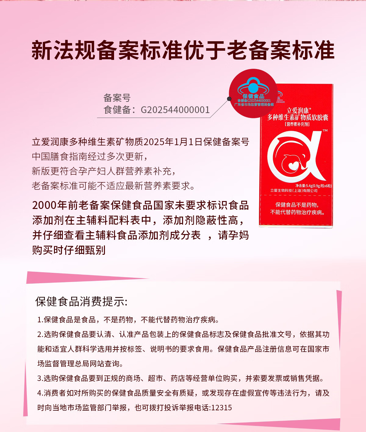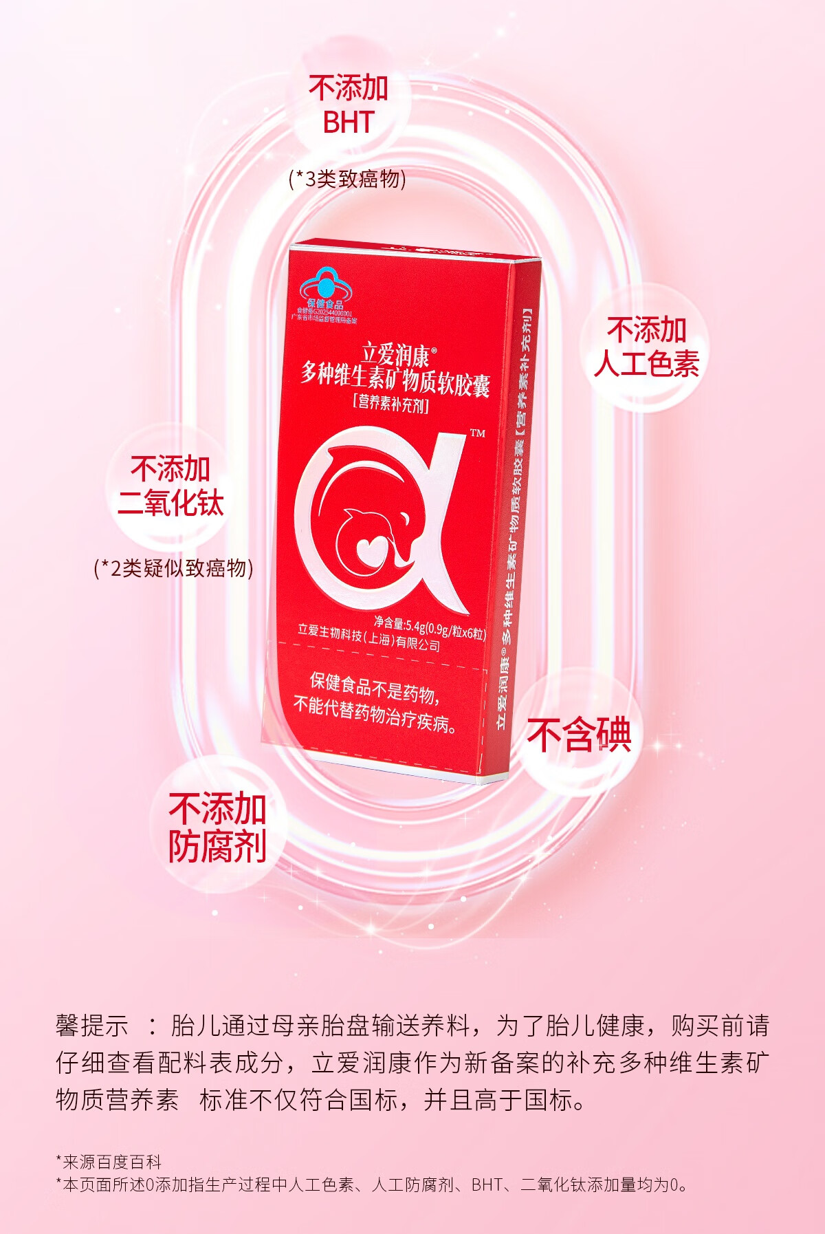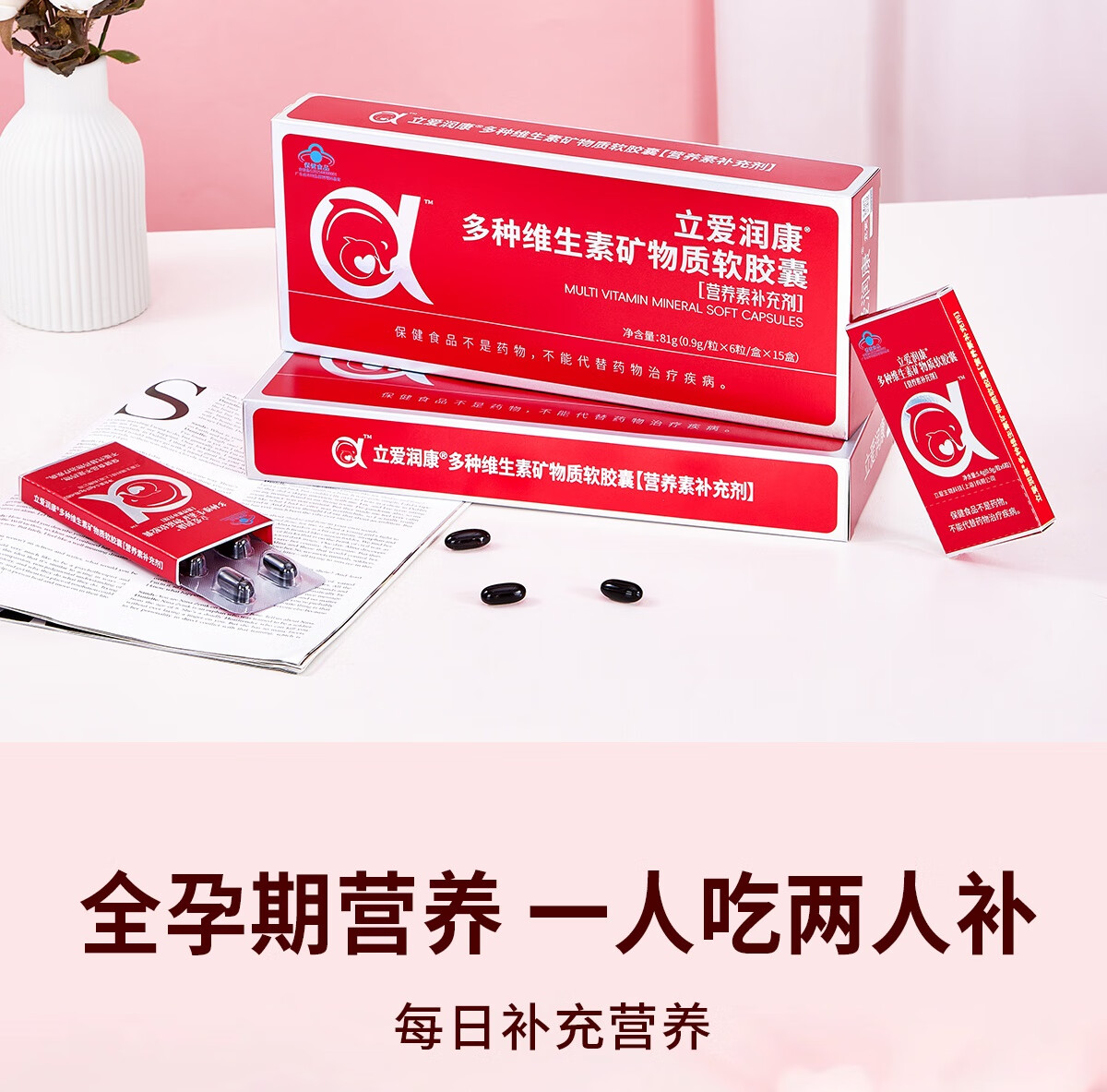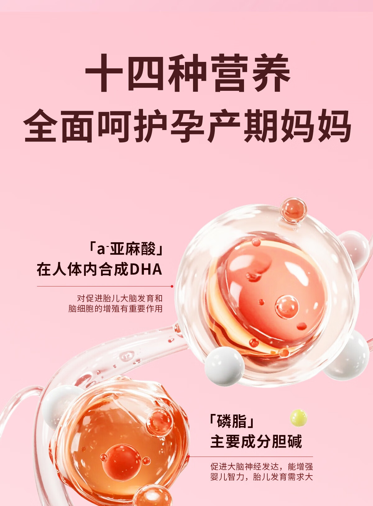 立爱润康孕妇DHA补叶酸孕妇复合维生素多种矿物质铁亚麻酸软胶囊 润康30天量