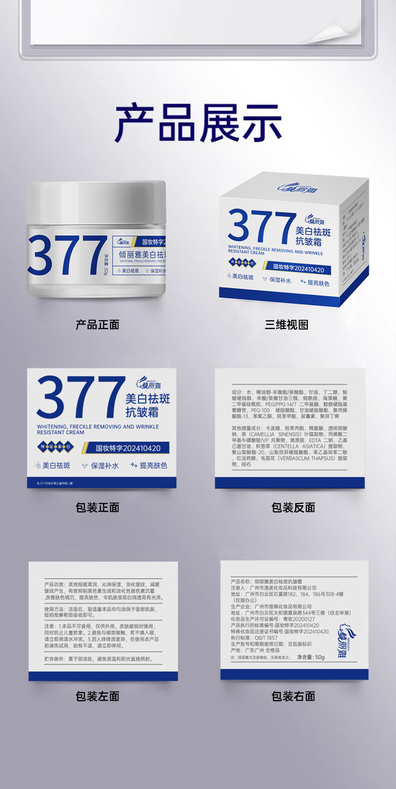 梵贞祛斑霜面霜乳液烟酰胺凝胶祛斑霜美白淡化老年黄褐雀斑黑色素 377祛斑霜50g