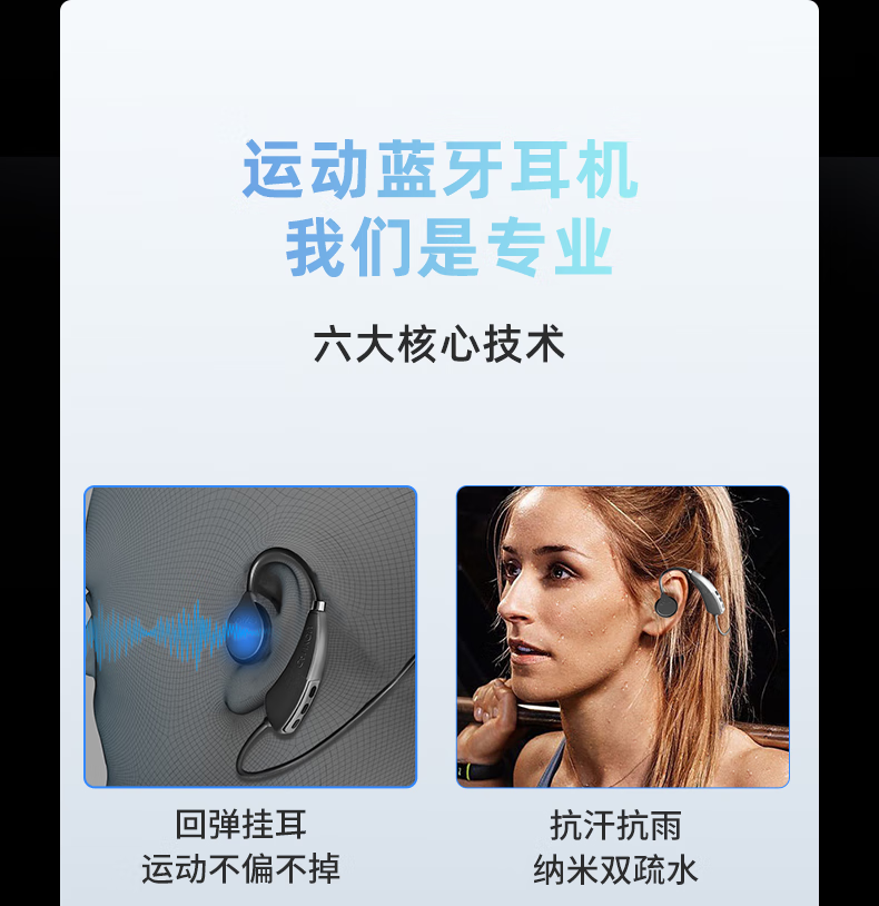 唯立德蓝牙耳机挂耳式运动跑步真无线入耳式音乐骑行舒适佩戴超长续航通话降噪防水S08黑 银河黑 | 沉浸音质 | 高清通话