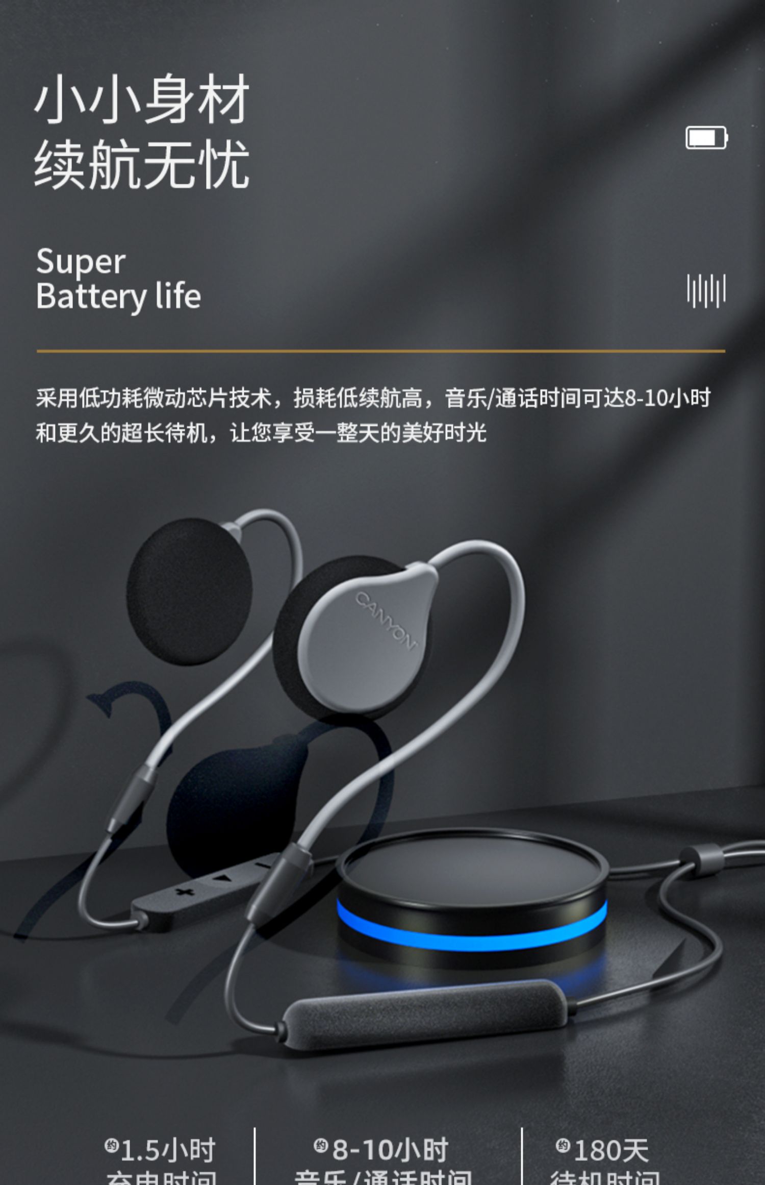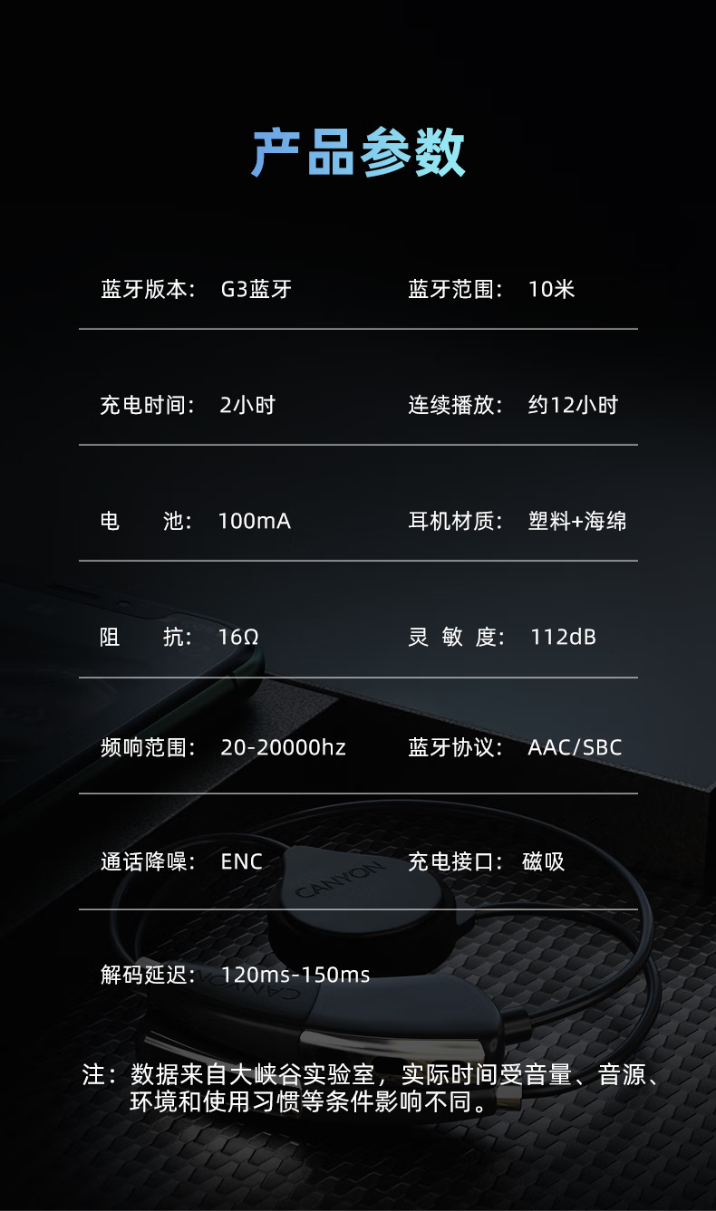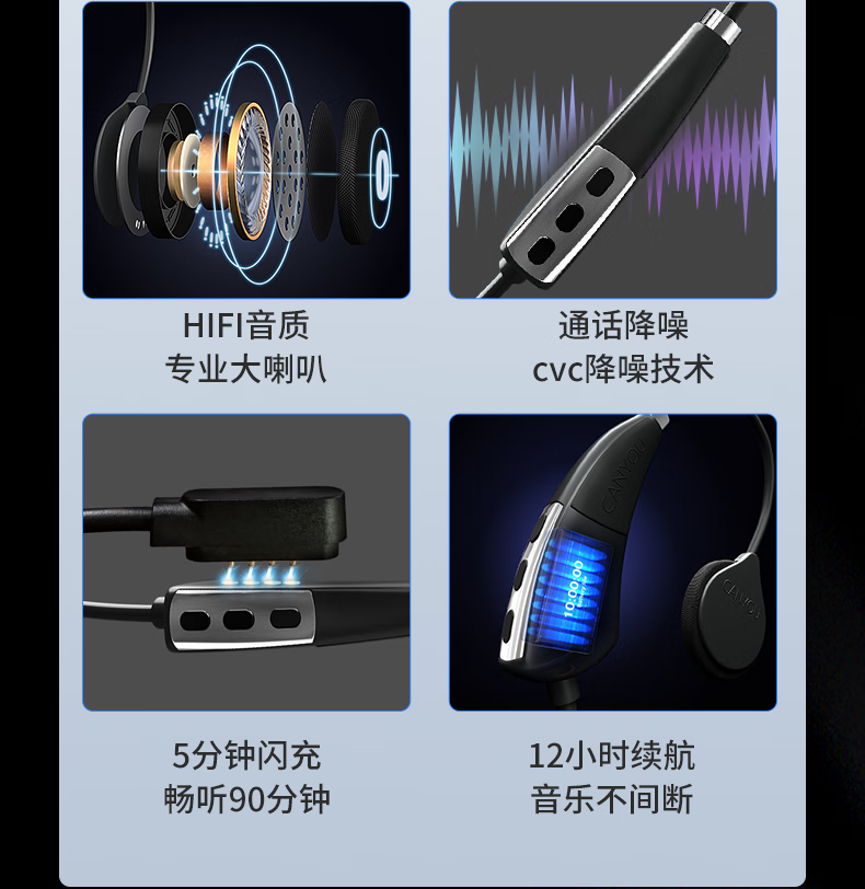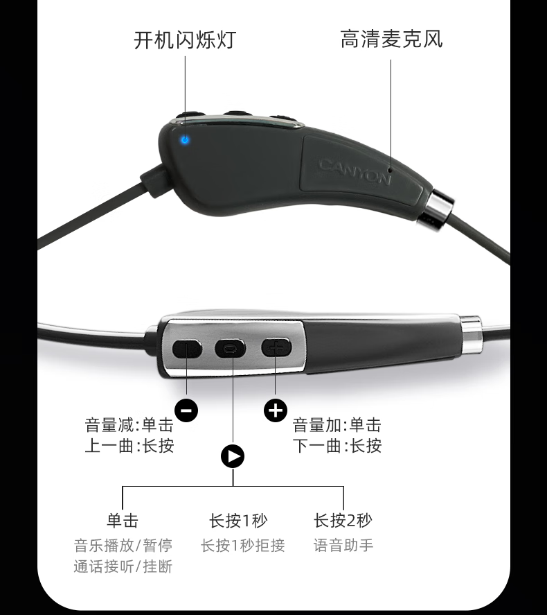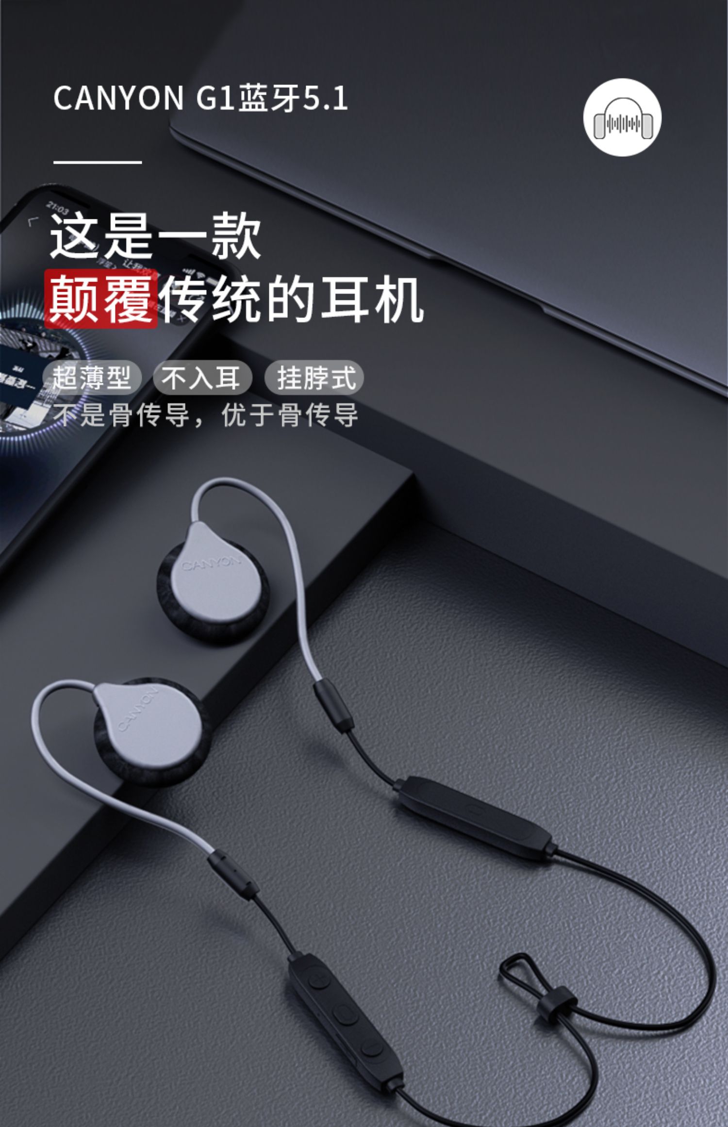 大峡谷(CANYON)G1挂耳式蓝牙耳机无线开放式不入耳舒适久戴不痛运动跑步骑行超长续航适用于华为苹果安卓 【G1高通蓝牙版】 续航约22小时