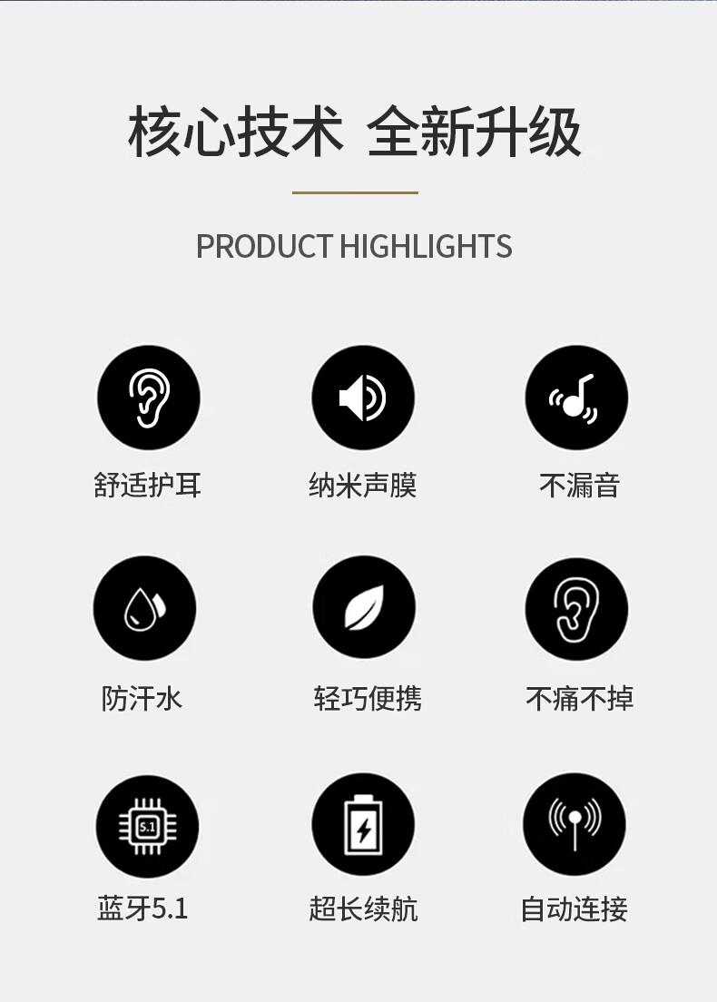 鑫羽音【甄选好物】【甄选好物】【100万+】新款无线蓝牙耳机不入耳气骨 黑+超长续航+超清通话 蓝牙通用