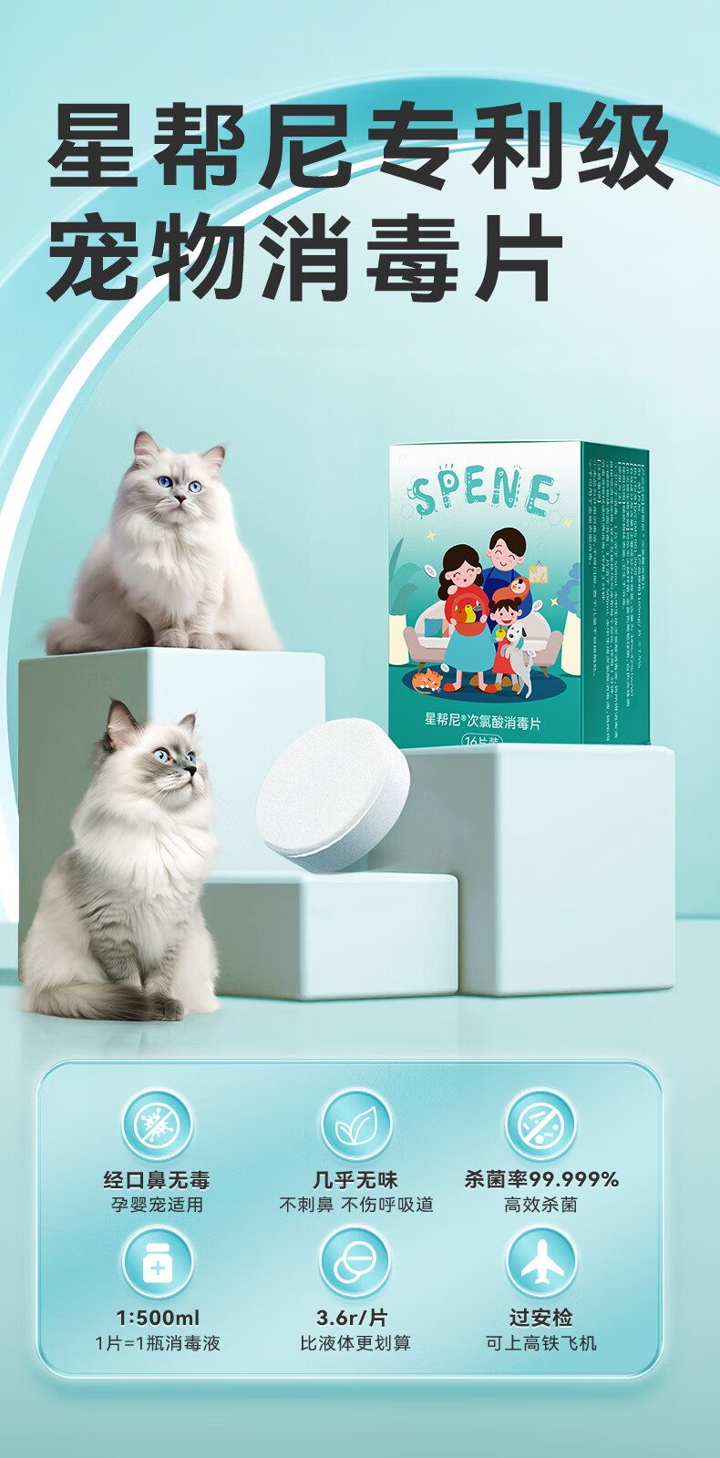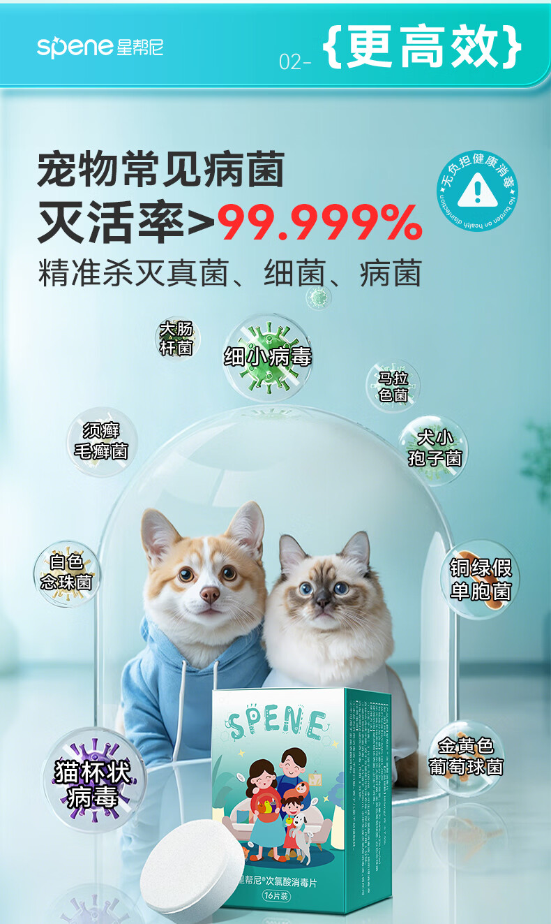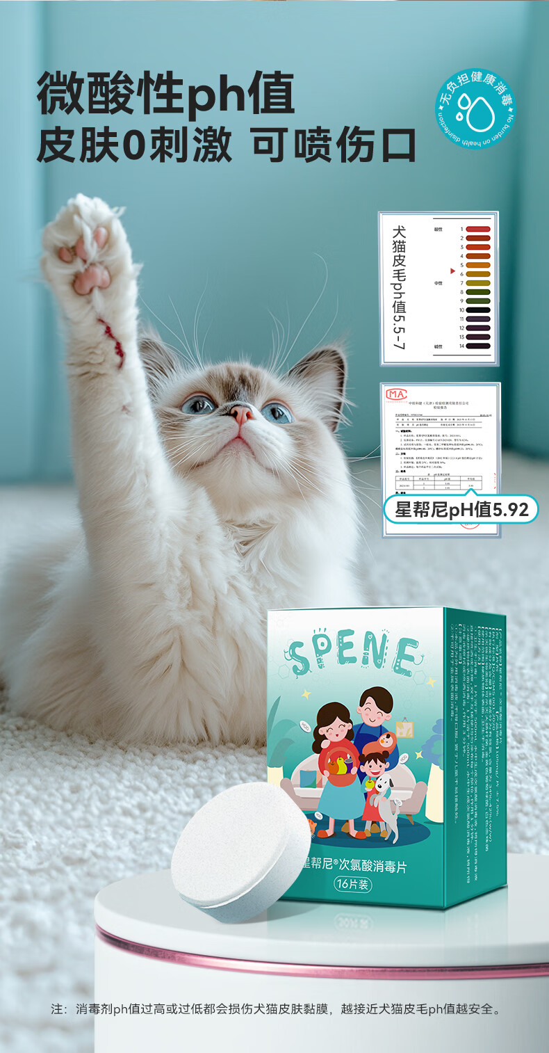星帮尼(Spene)宠物次氯酸消毒片星邦尼猫咪狗狗猫藓猫癣杀菌喷雾液专用泡腾片剂
