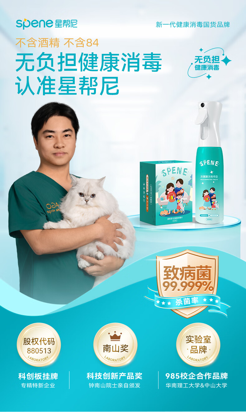 星帮尼(Spene)次氯酸宠物消毒液水猫咪专用星邦尼家用环境狗狗猫癣猫藓杀菌喷雾