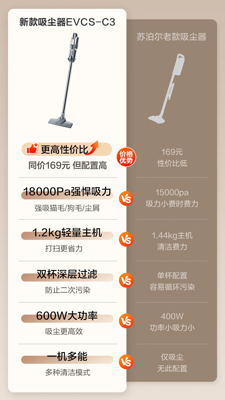 苏泊尔(SUPOR)【国家补贴】吸尘器家用有线手持推杆地毯两用大吸力大功率纤薄机身宠物家庭适用C3节日礼物