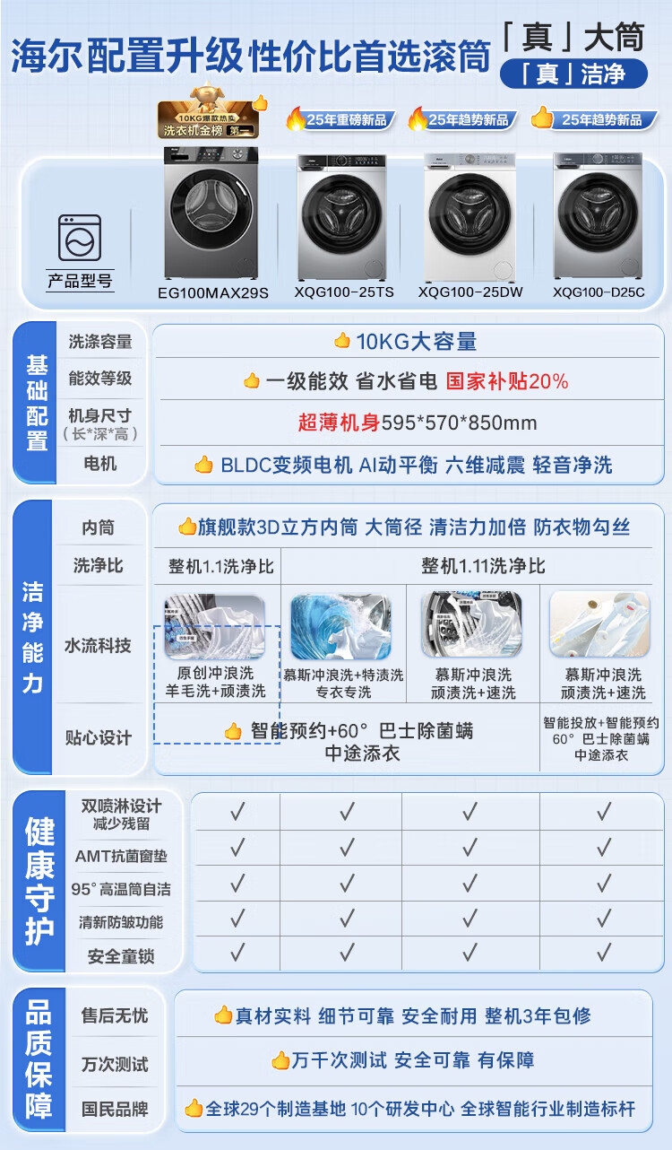 海尔(Haier)滚筒全自动洗衣机10公斤懒人超薄家用 一级能效 家电国家补贴20% 以旧换新 EG100MAX29S 热销百万