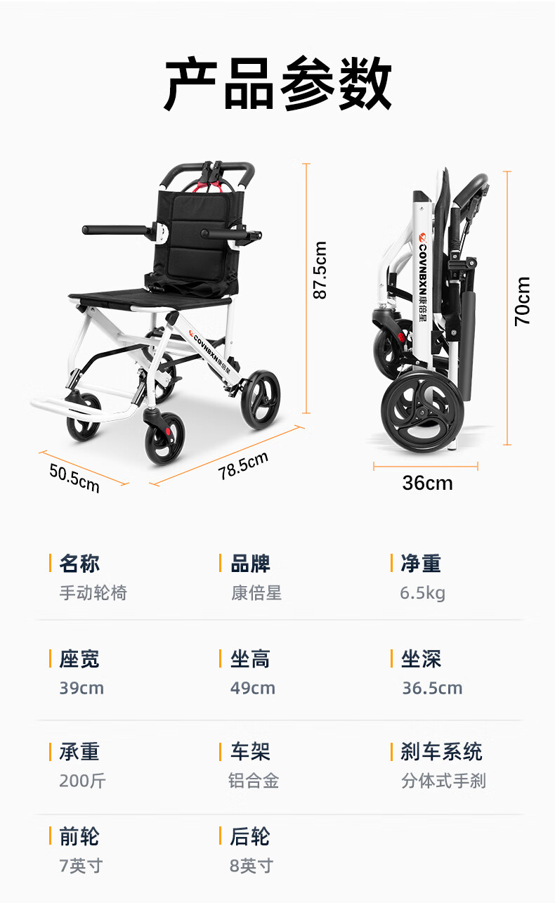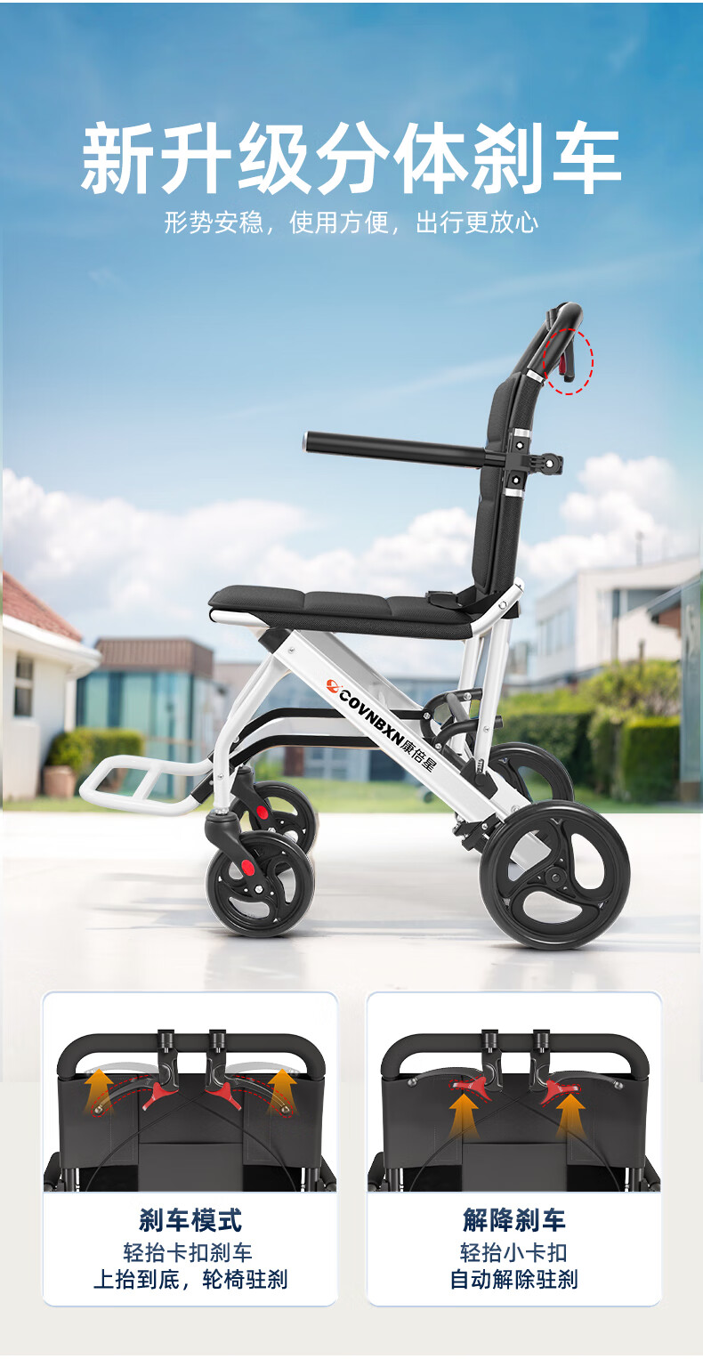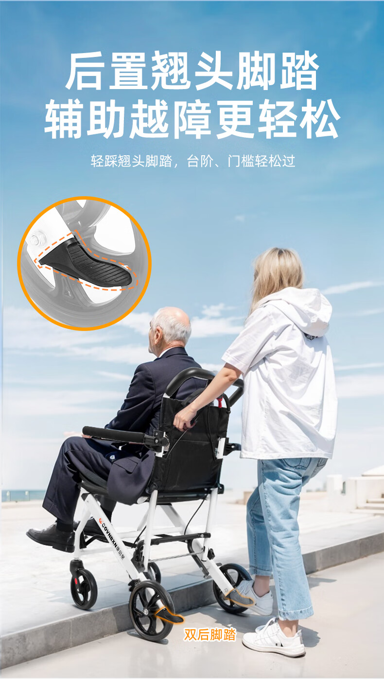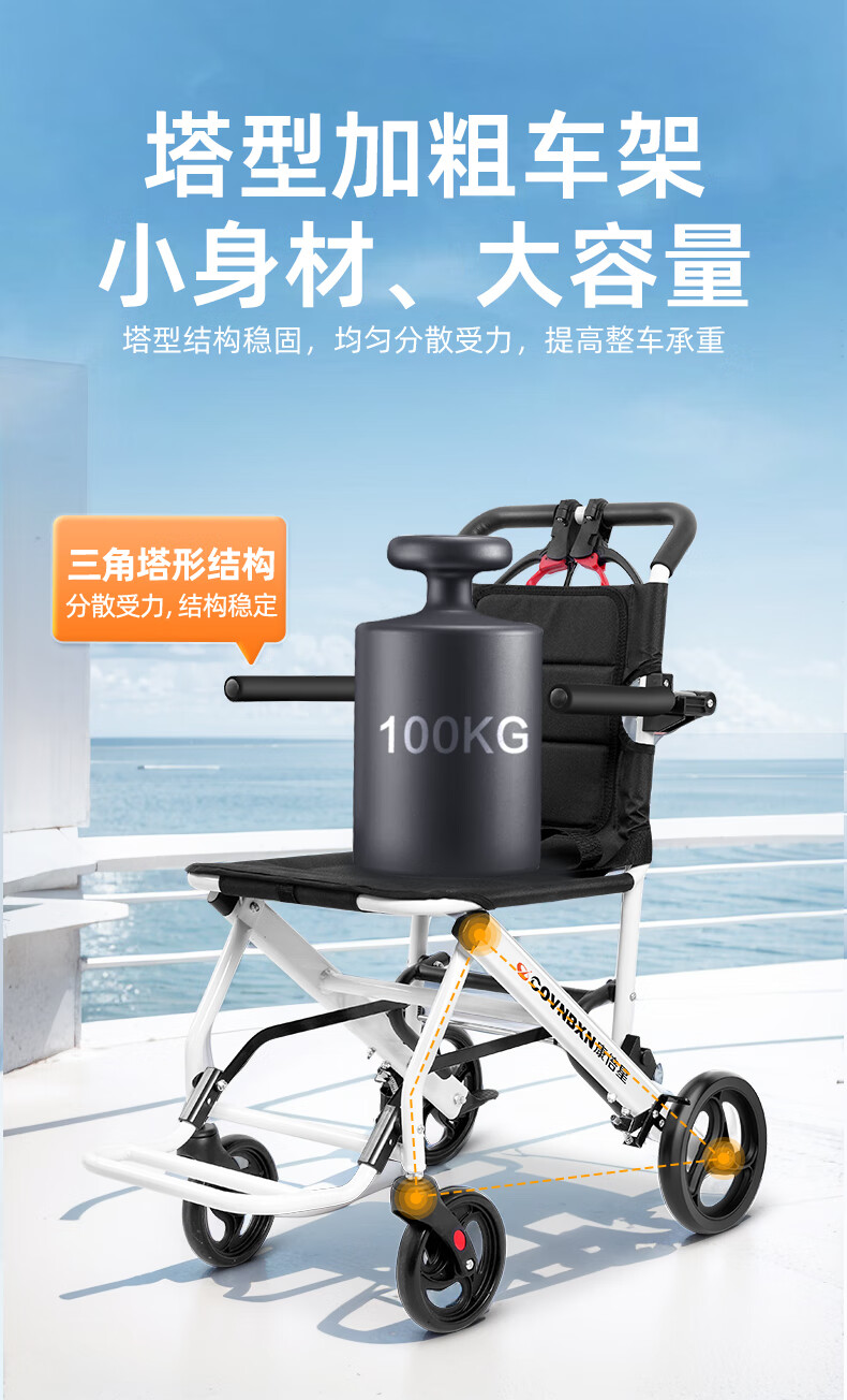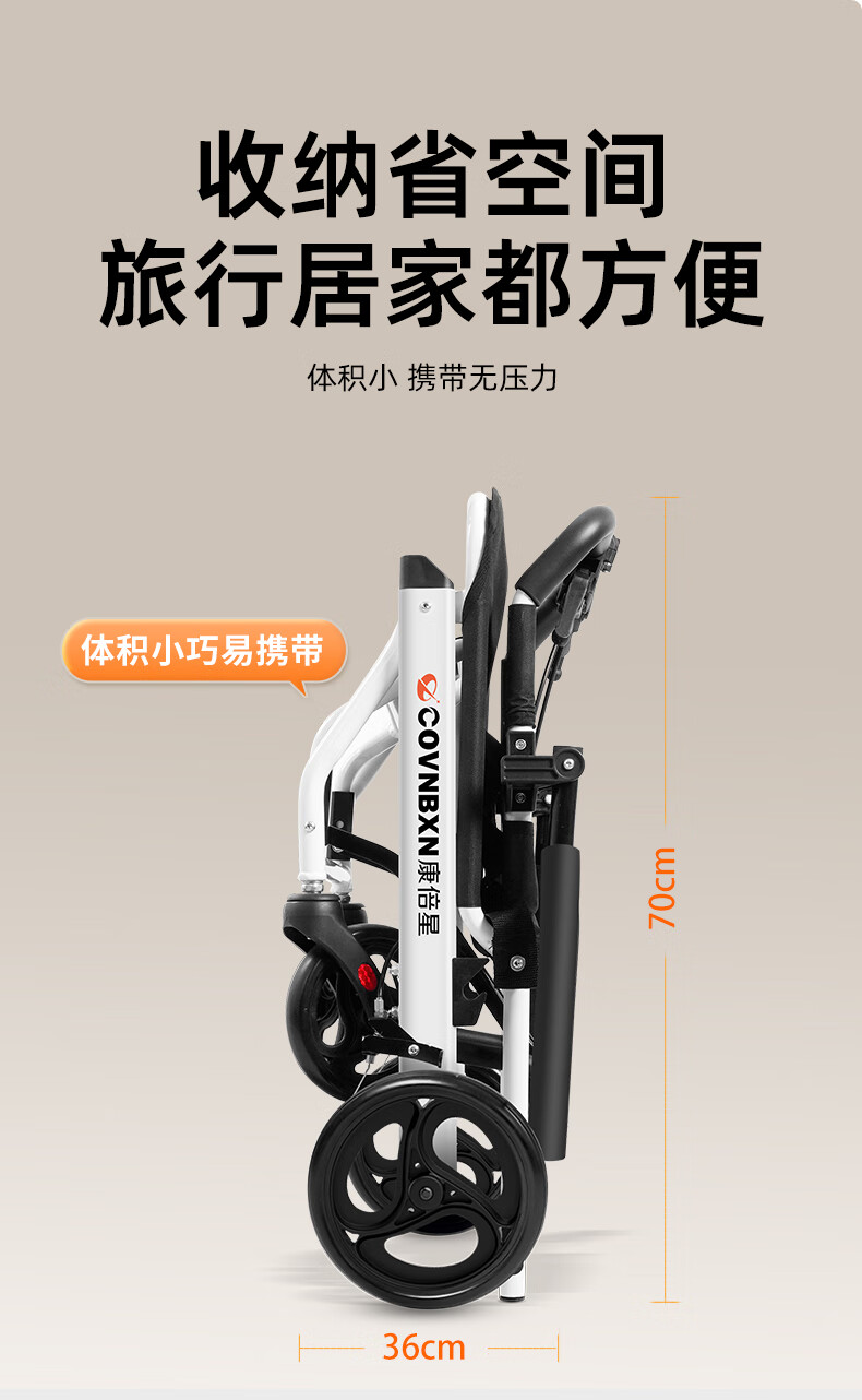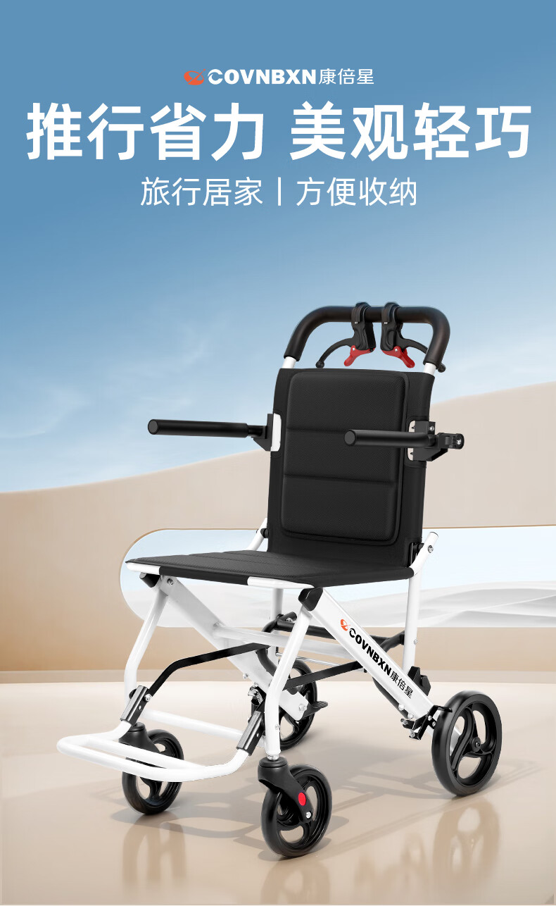 康倍星折叠轻便老人旅行手推车便携简易老年手动轮椅车SYIV100-DY-103L