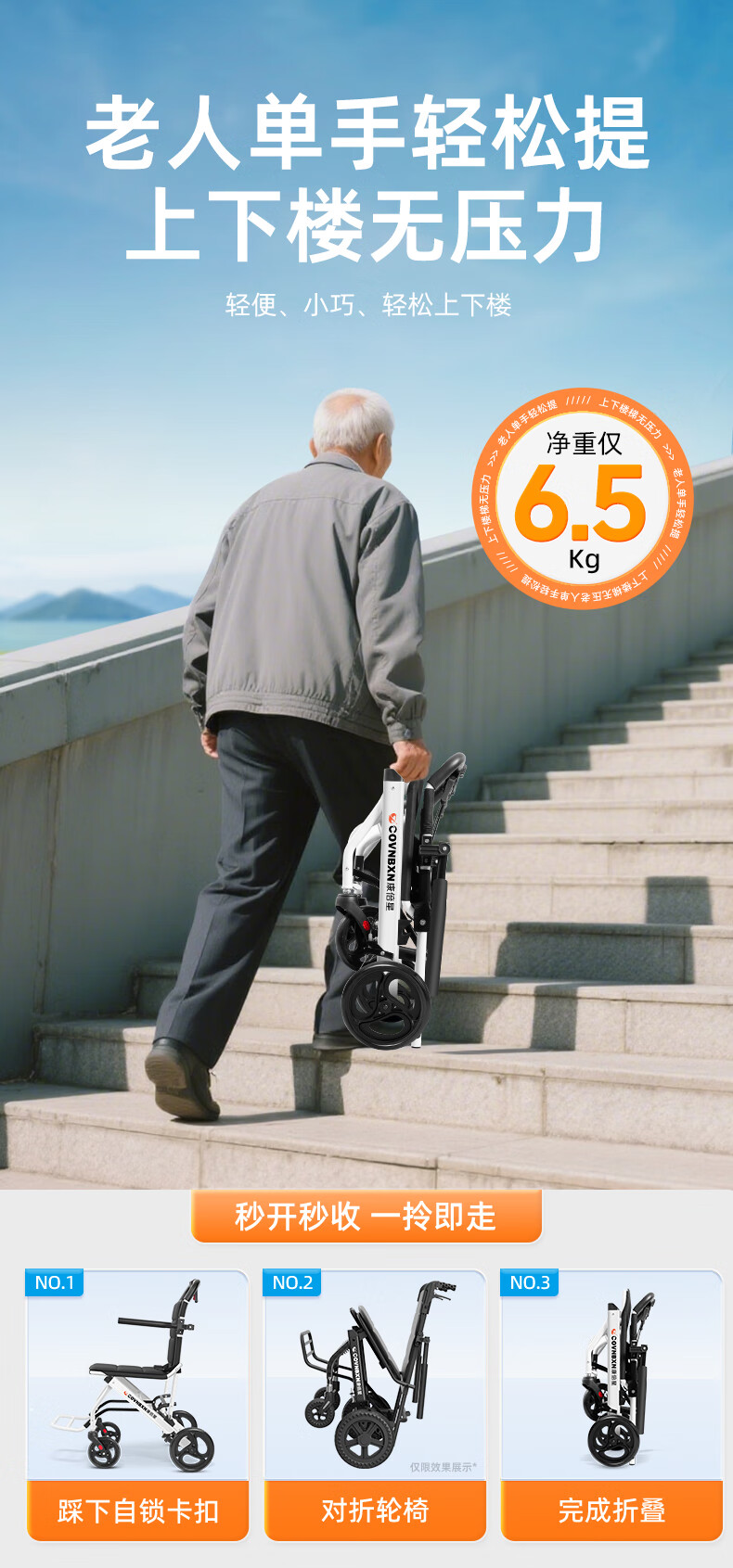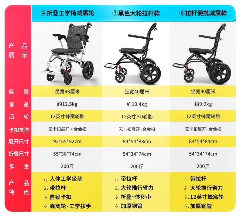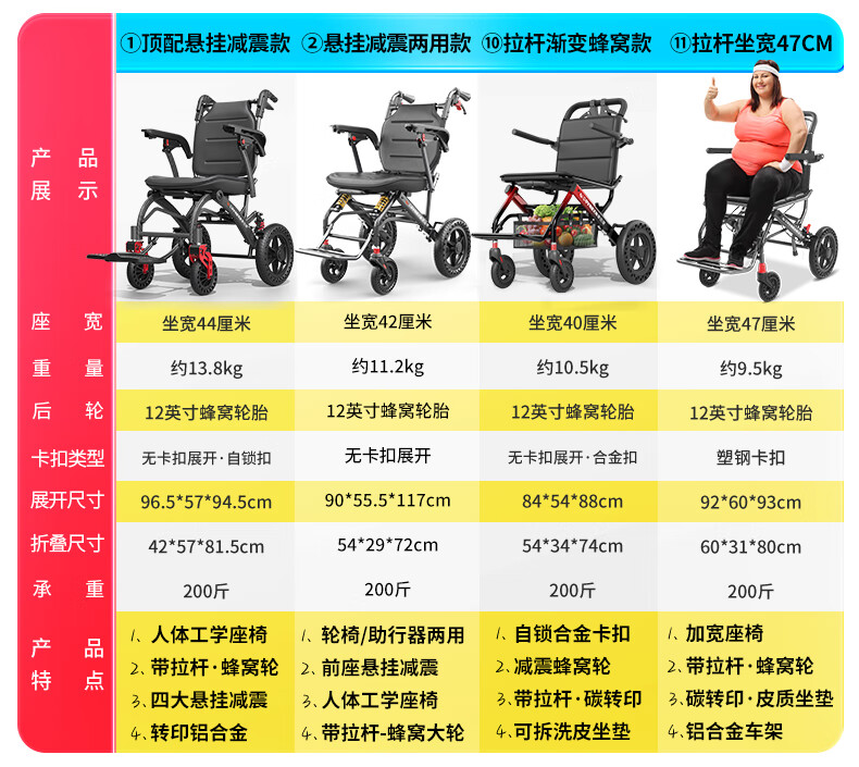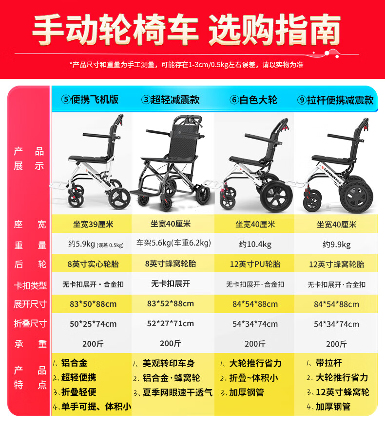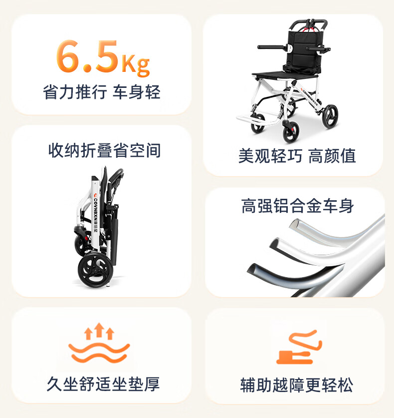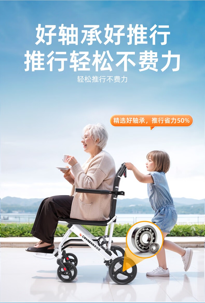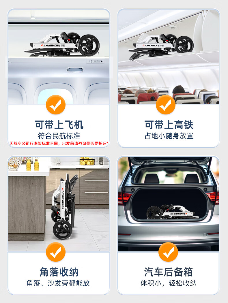 康倍星折叠轻便老人旅行手推车便携简易老年手动轮椅车SYIV100-DY-103L