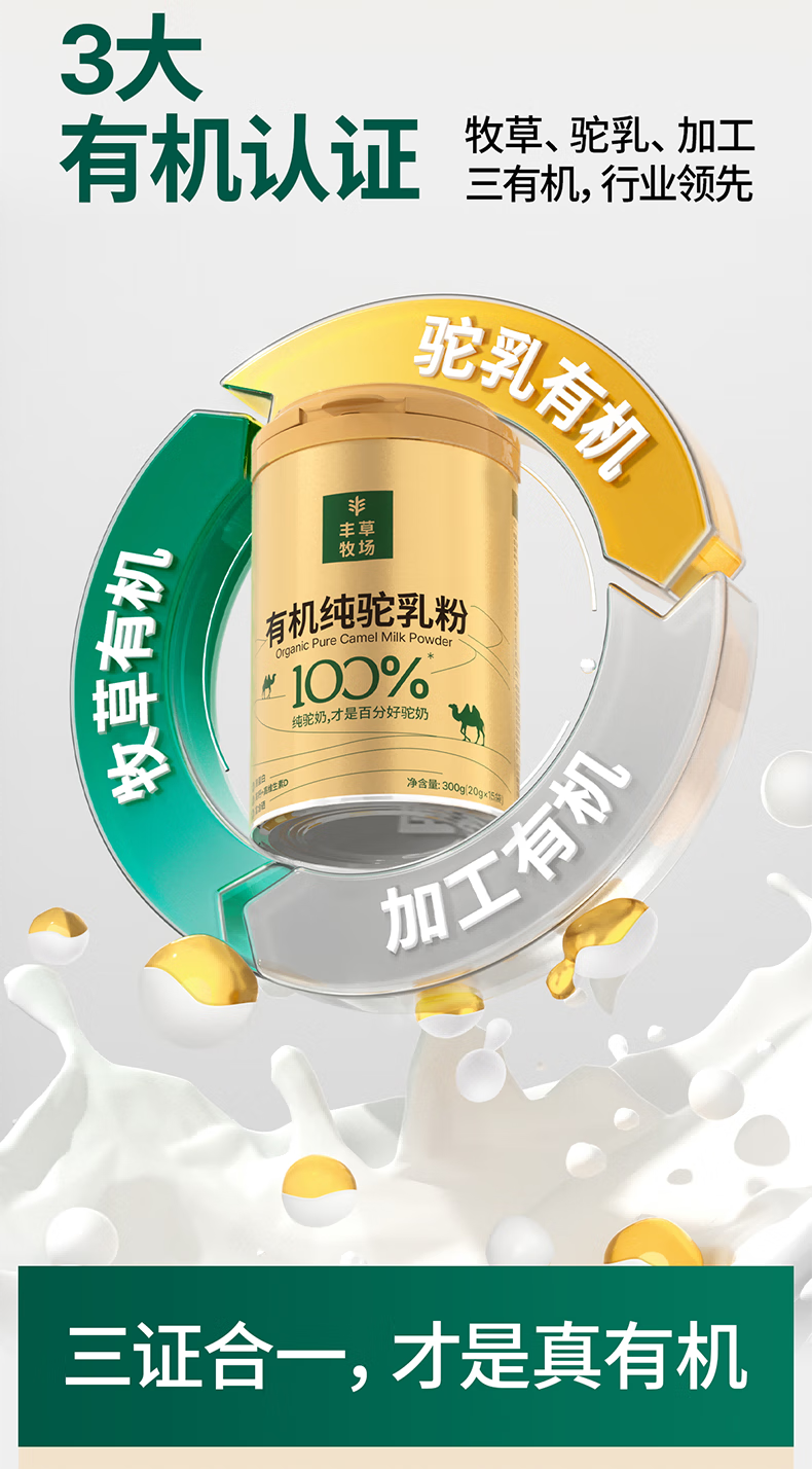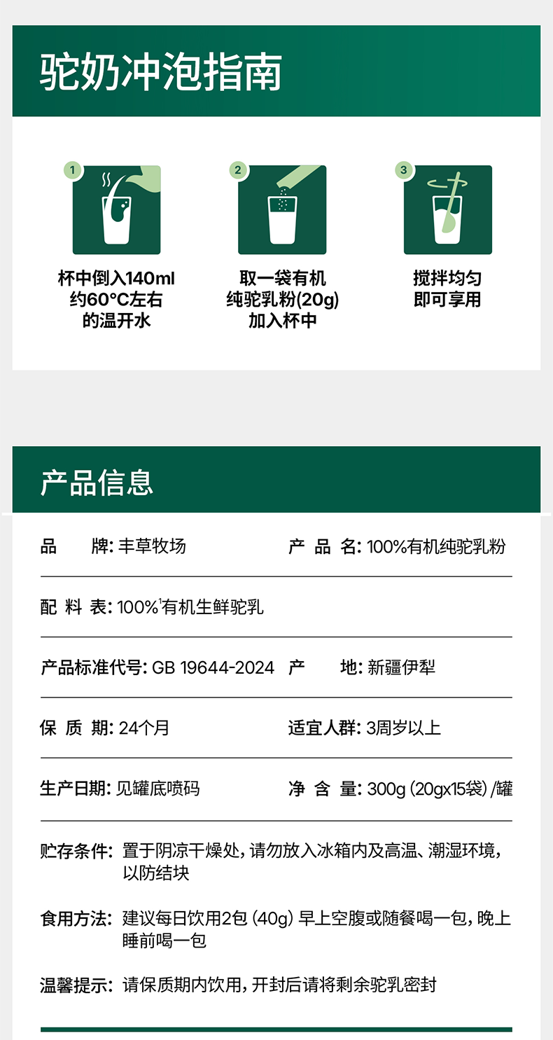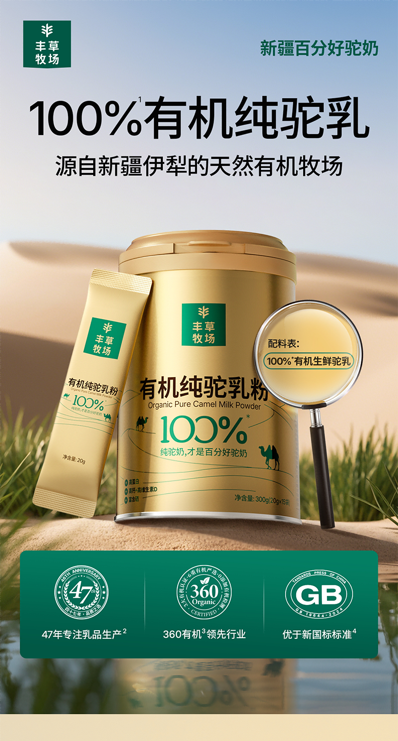 丰草牧场100%有机纯驼奶粉试喝装新国标新疆骆驼乳粉试喝装20g*1条装