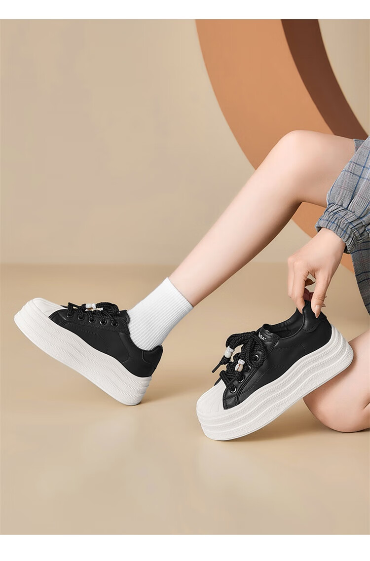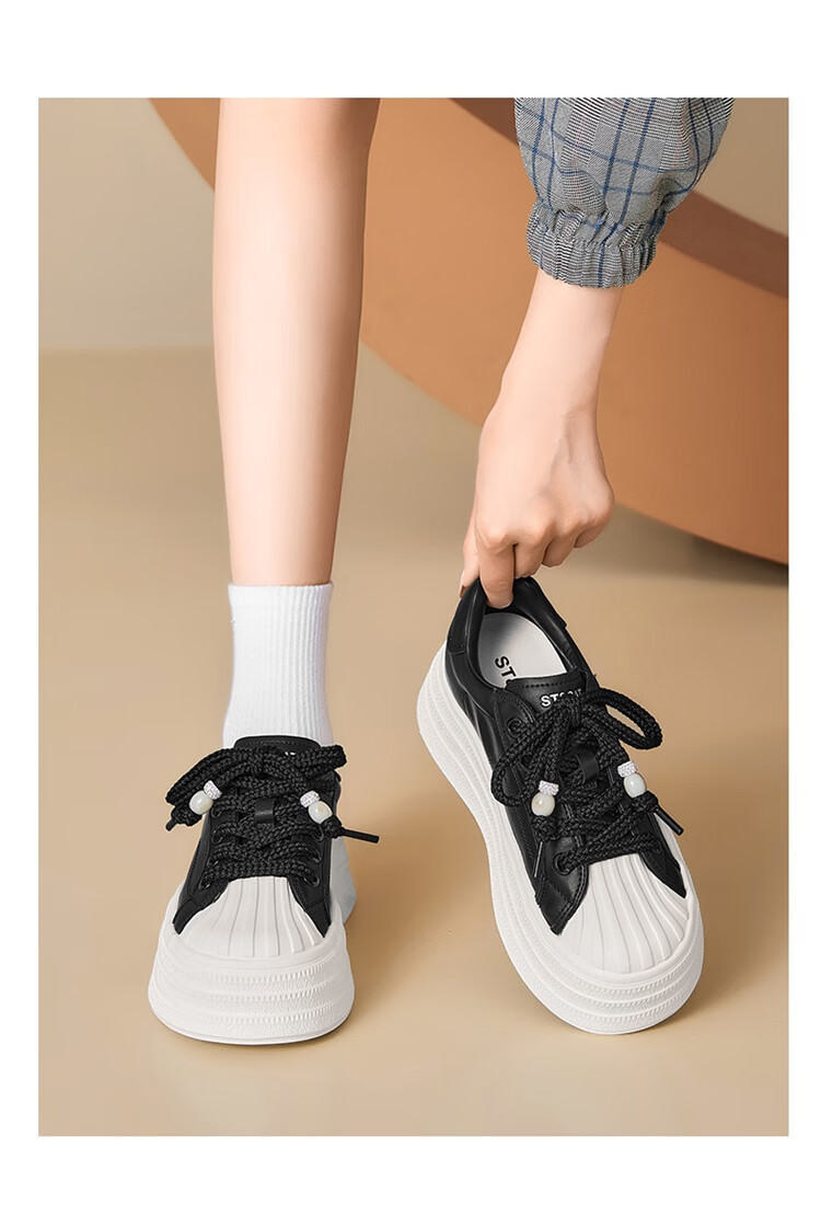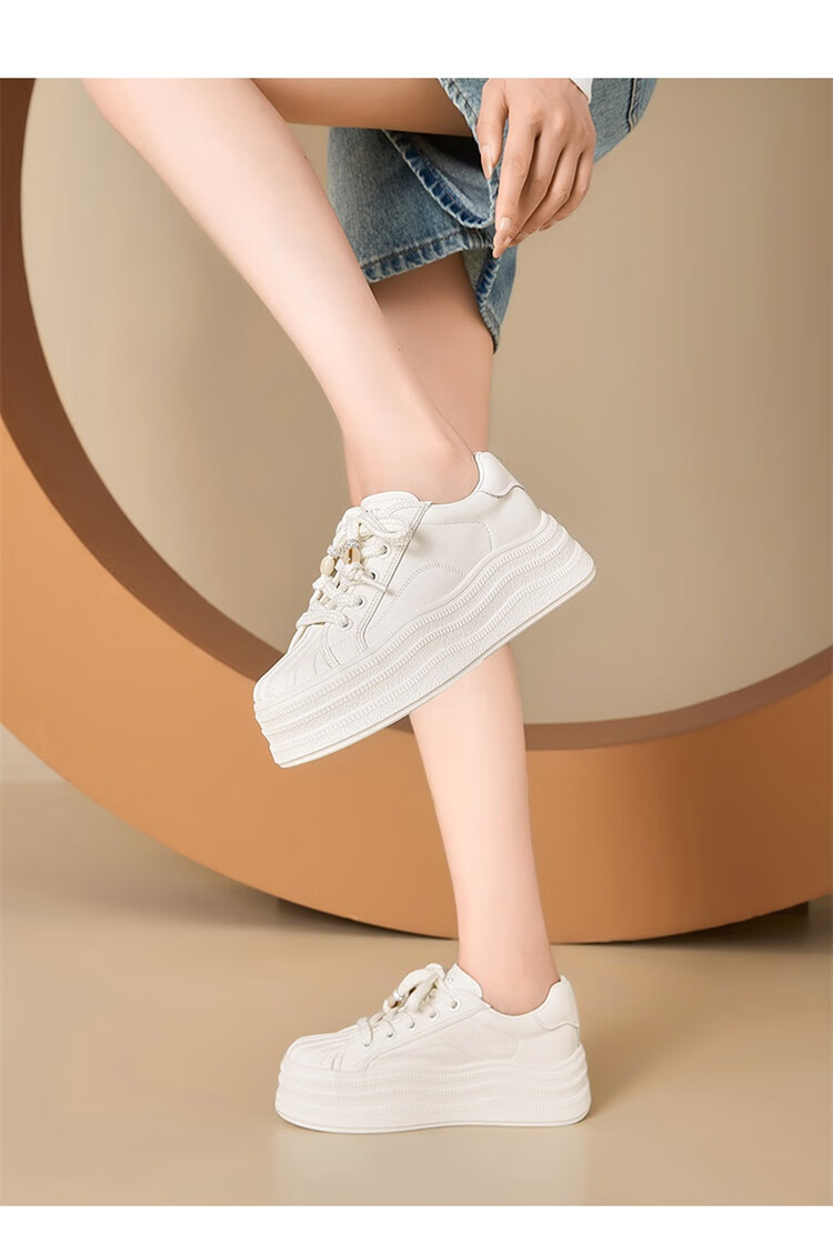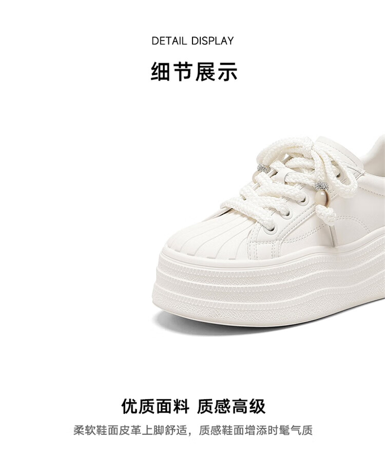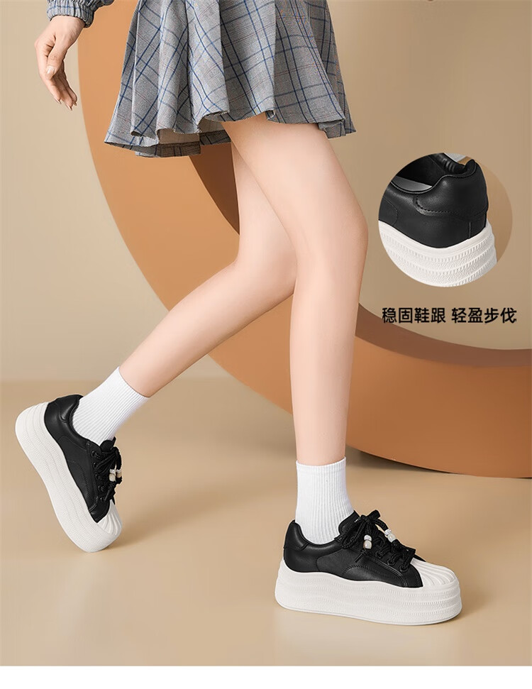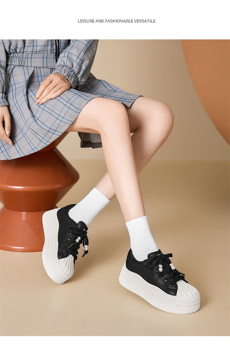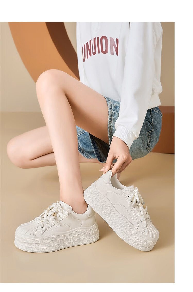 达芙妮(DAPHNE)厚底小白鞋女2022春季新款女鞋小香风松糕底饼干鞋休闲板鞋JL 米色【温柔米白】 37