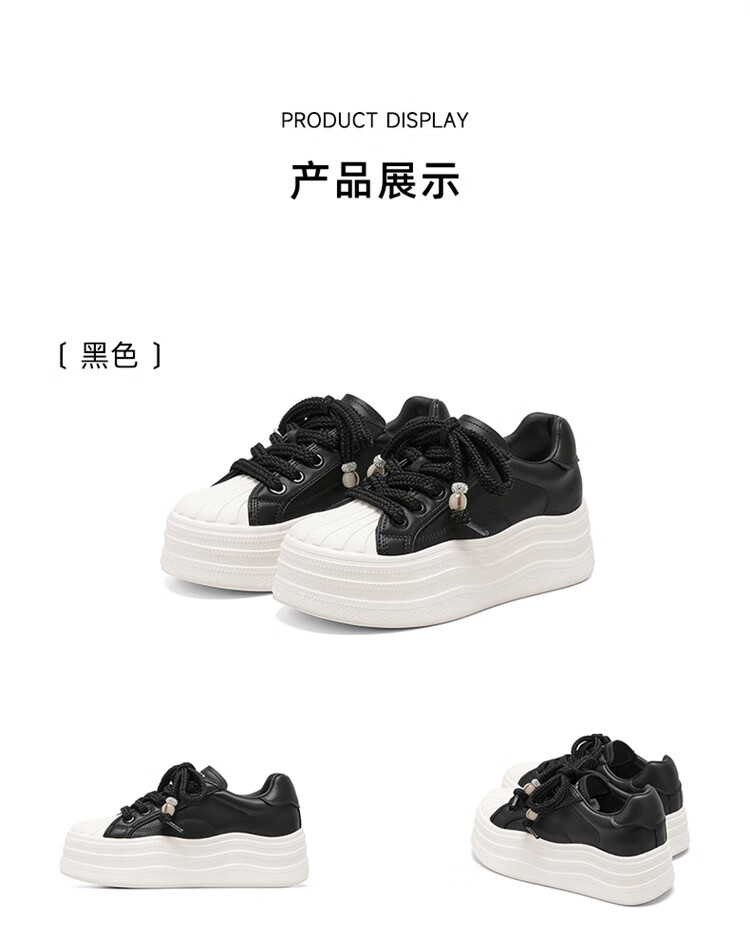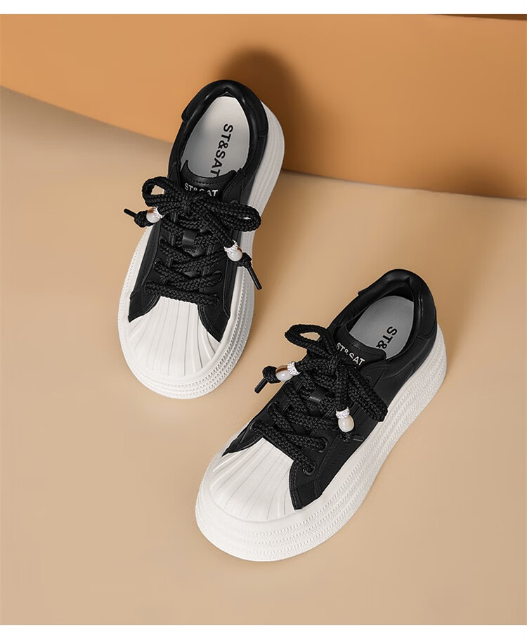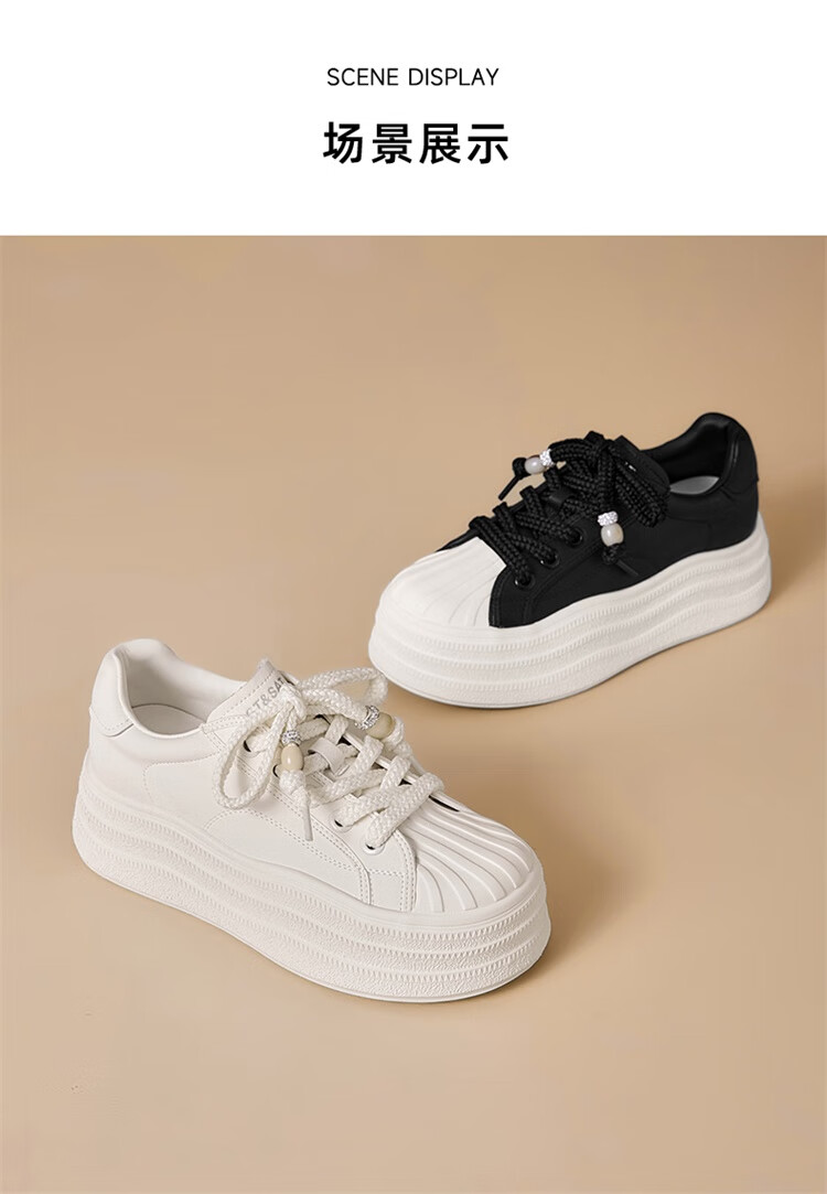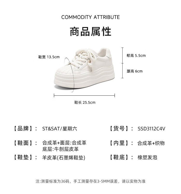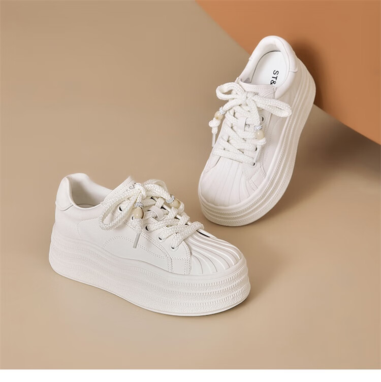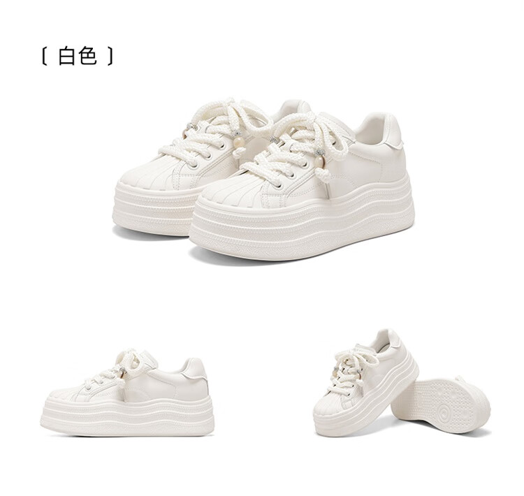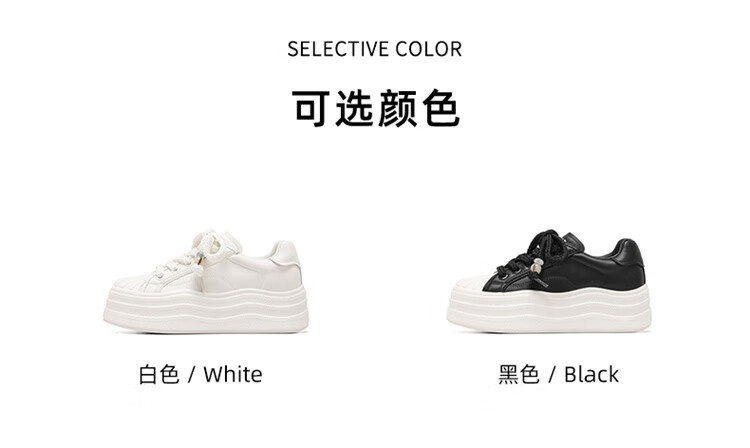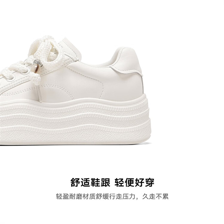 星期六圆头纯色厚底板鞋2025秋季新款百搭舒适小白鞋MTSSD3112C4V 白色 36