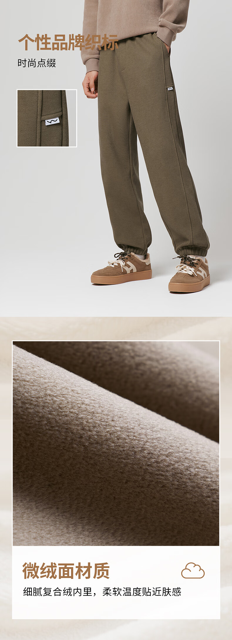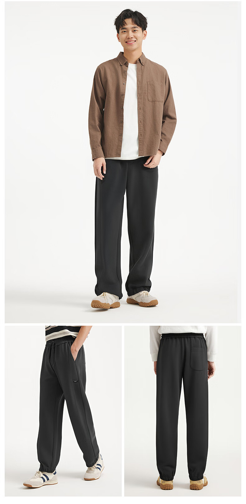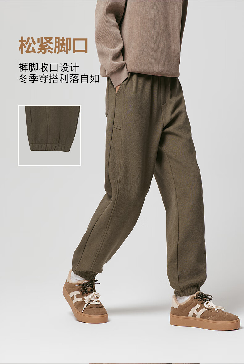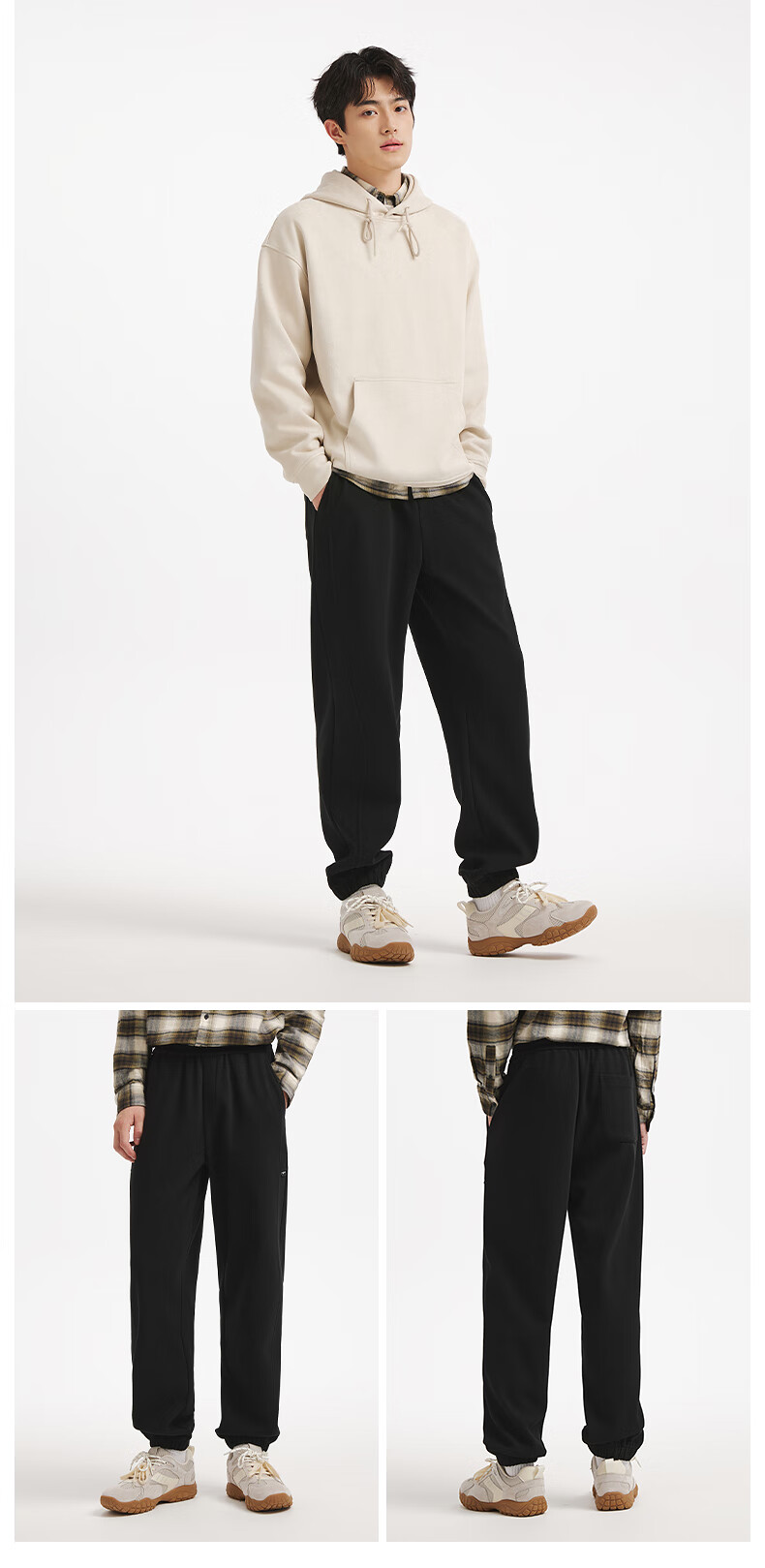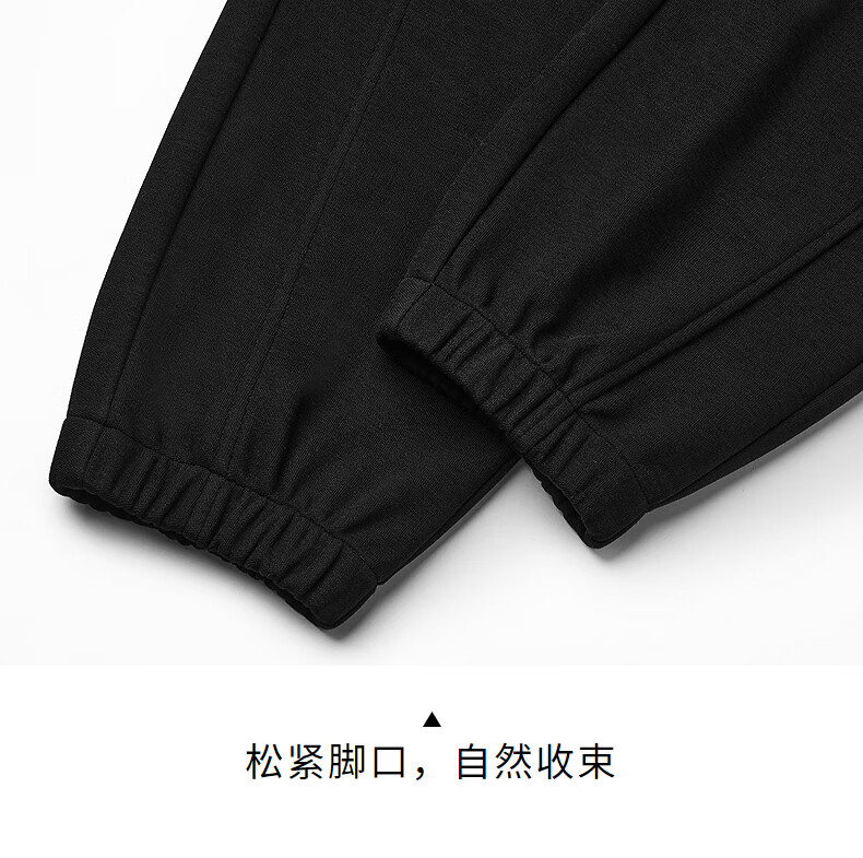 热风男士加绒卫裤2025年冬季新款宽松束脚直筒松紧腰抓绒休闲卫裤 01黑色 S