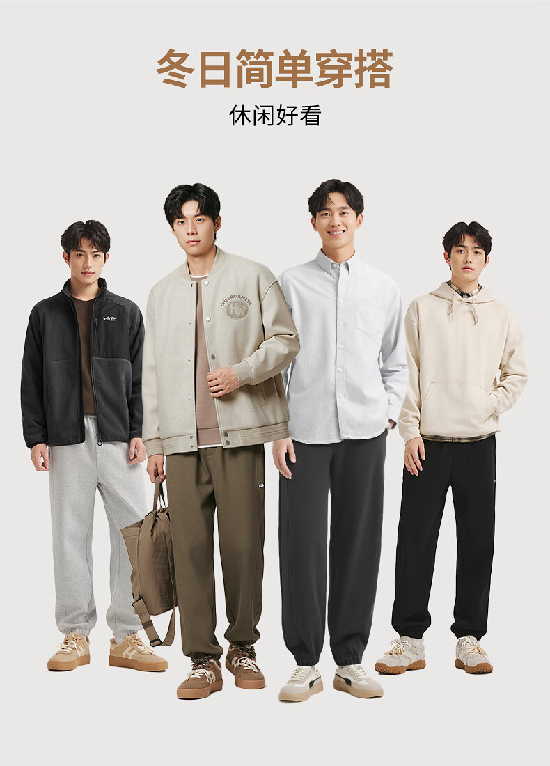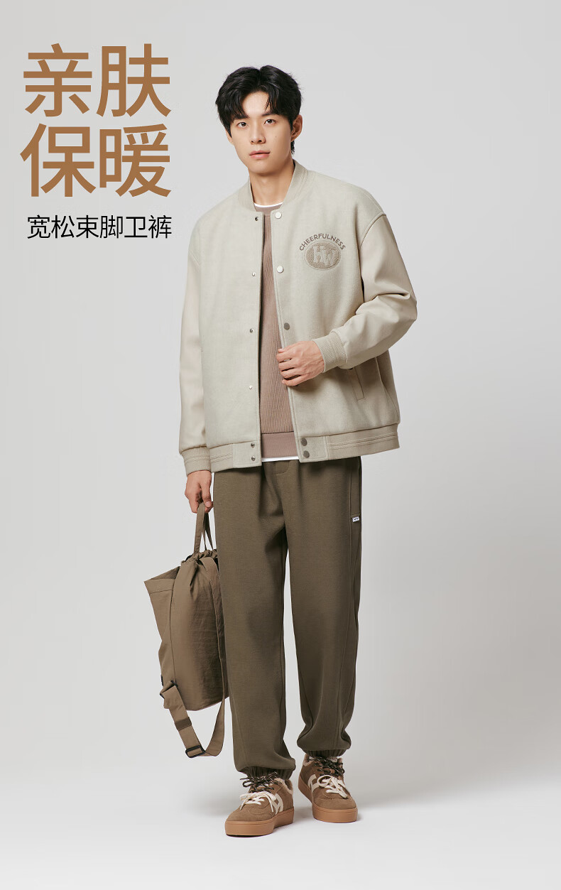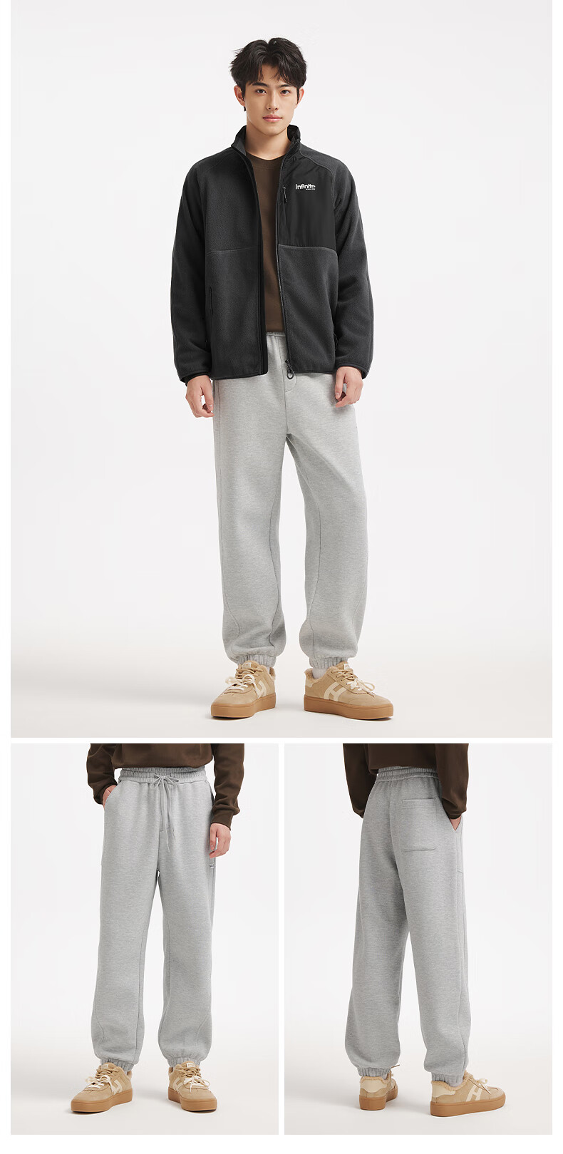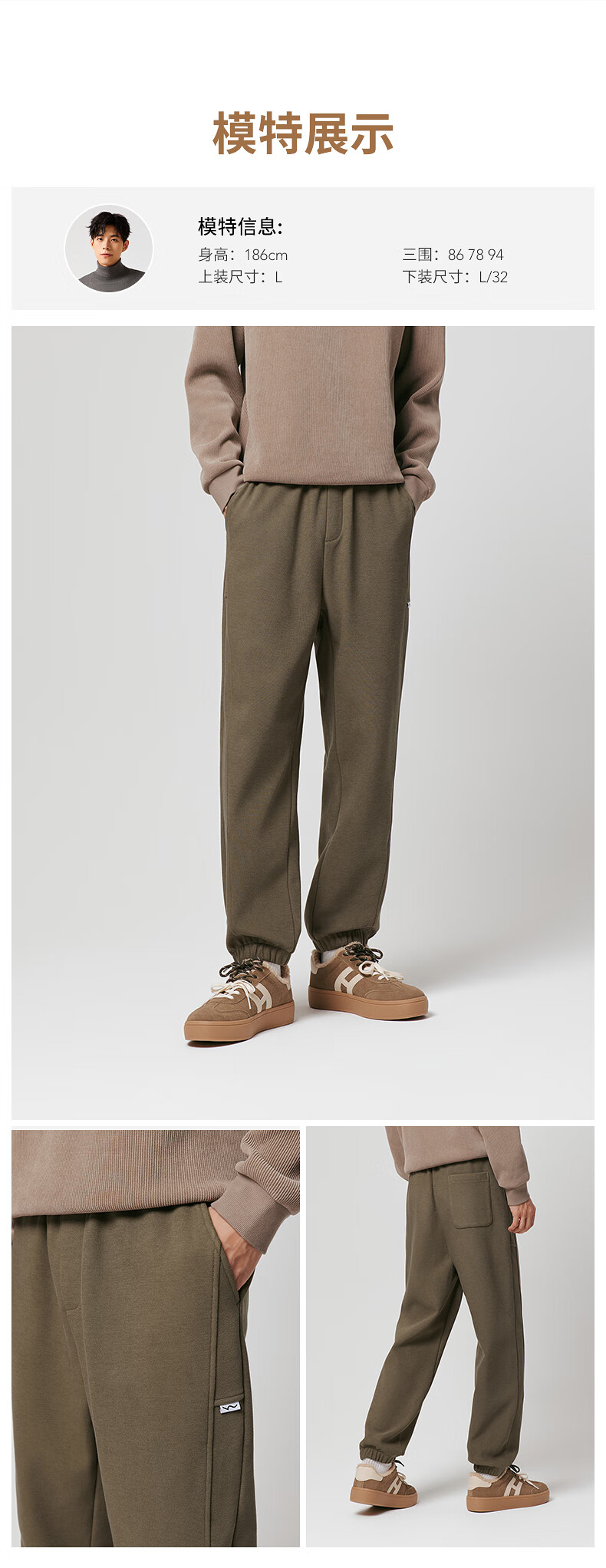 热风男士加绒卫裤2025年冬季新款宽松束脚直筒松紧腰抓绒休闲卫裤 01黑色 S