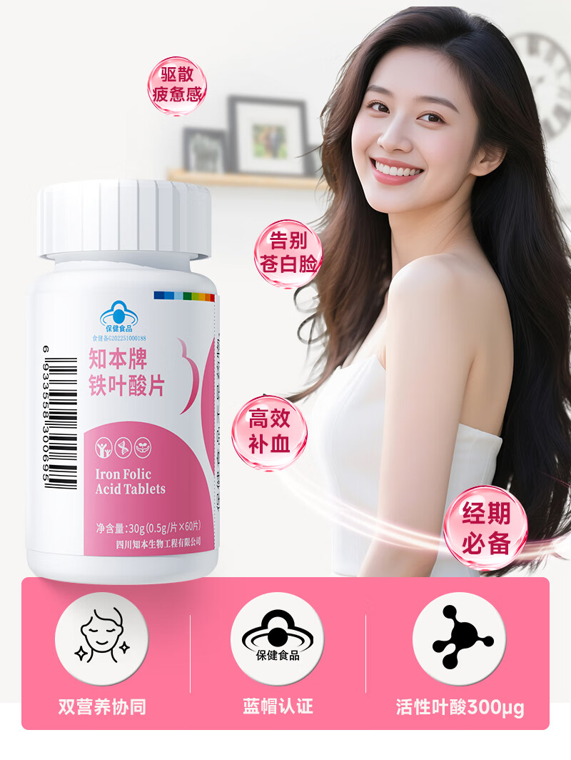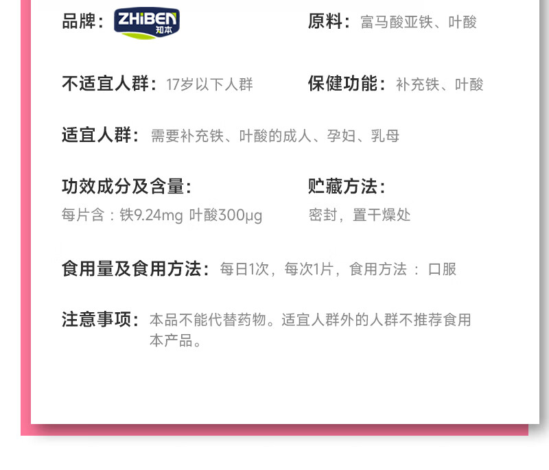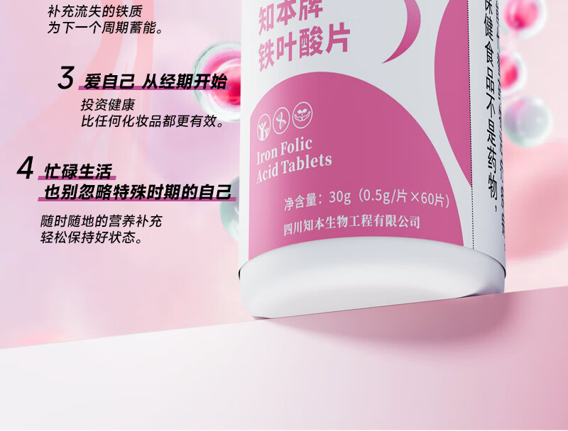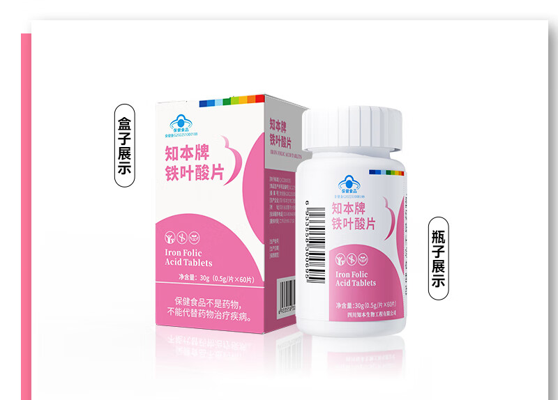 知本活性铁叶酸备孕营养品维生素b6孕妇中后期男女同补铁+叶酸 【备孕男女同补】60片/瓶