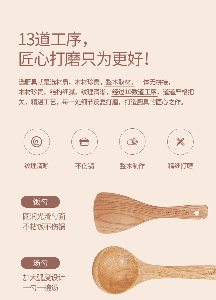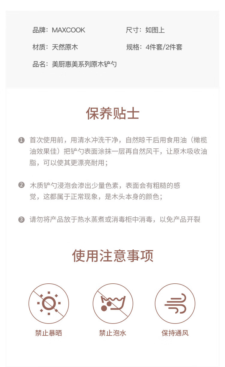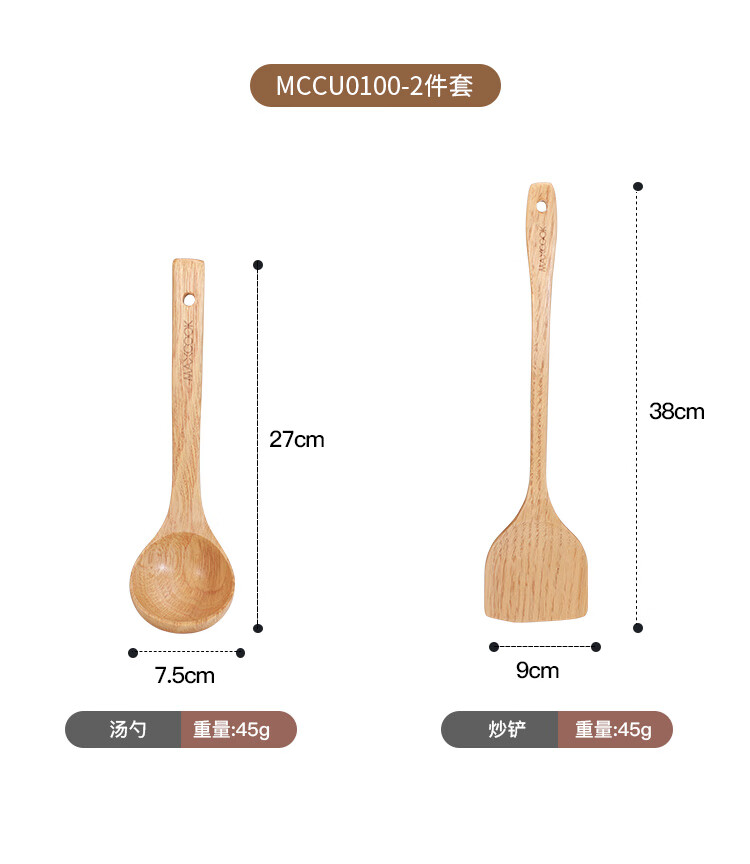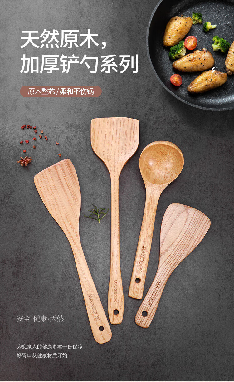 美厨(maxcook)炒铲锅铲木汤勺锅铲 木铲不粘锅铲 铲勺2件套MCCU0100