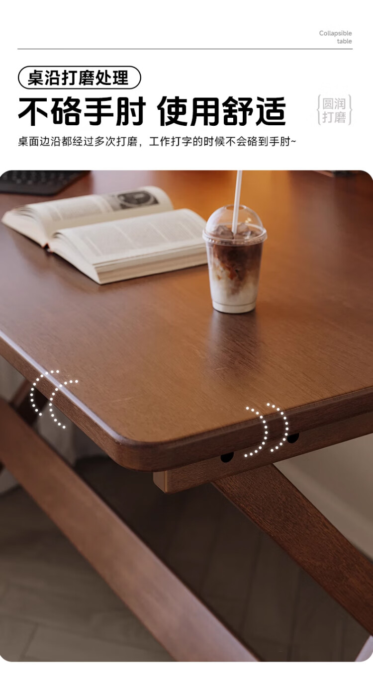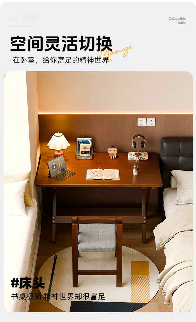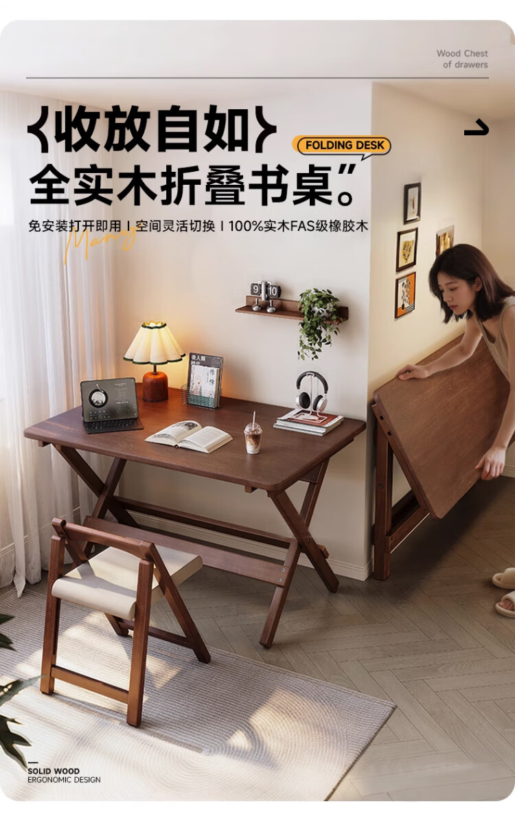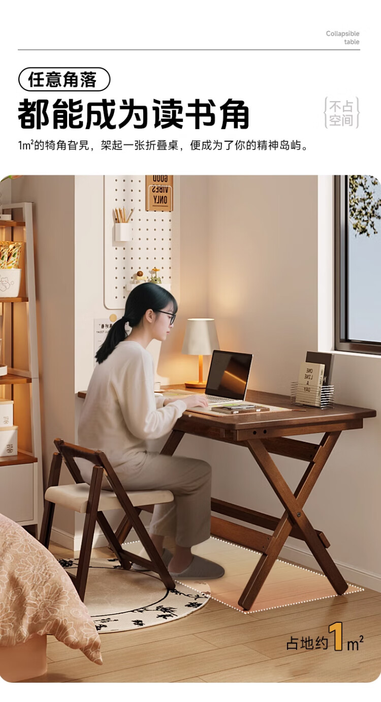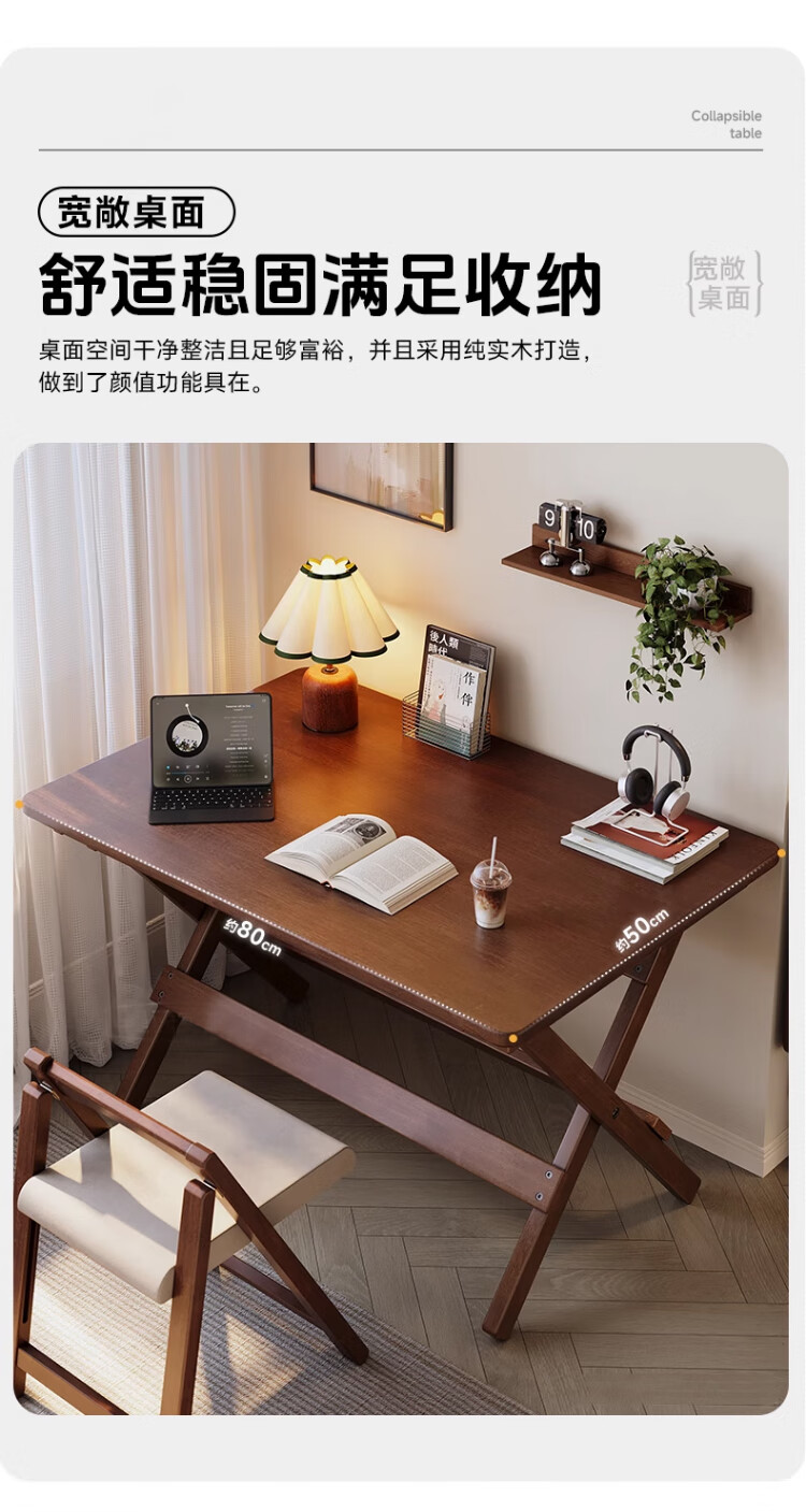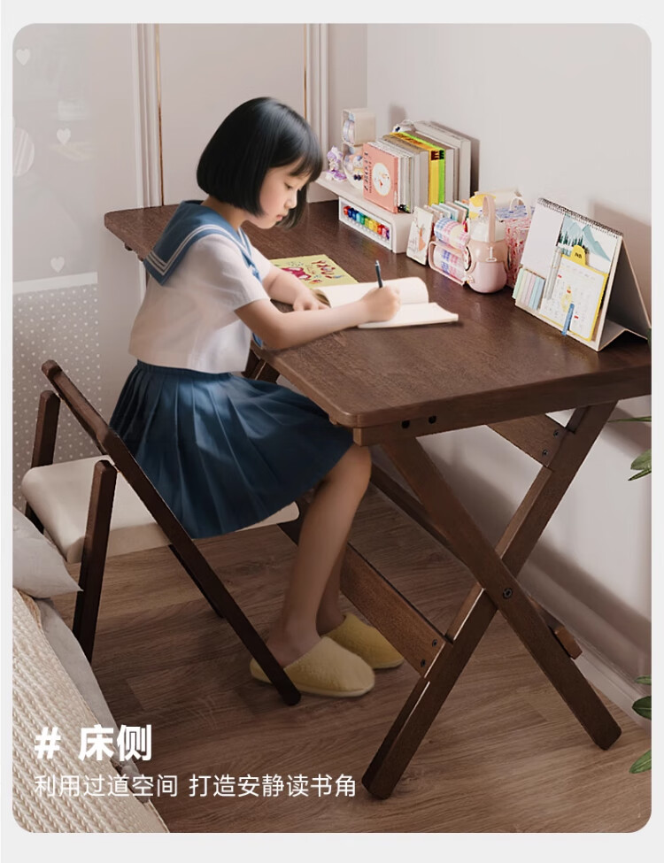 家逸实木折叠书桌学生家用电脑桌学习桌书房办公桌小户型床边写字桌子