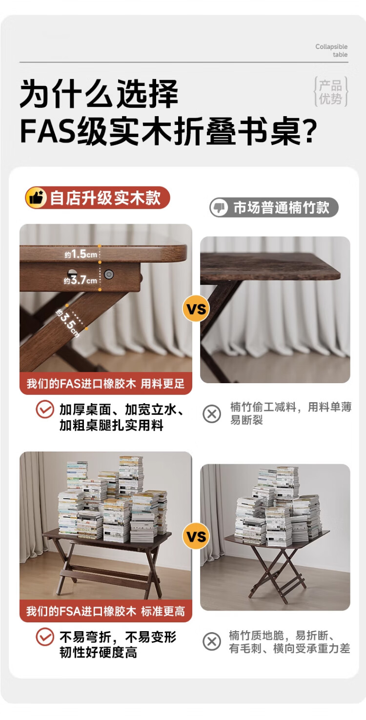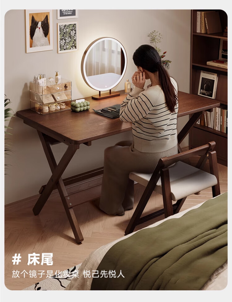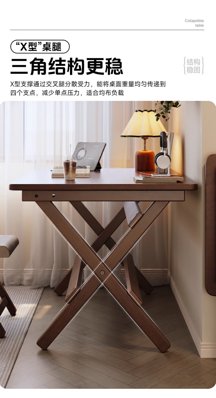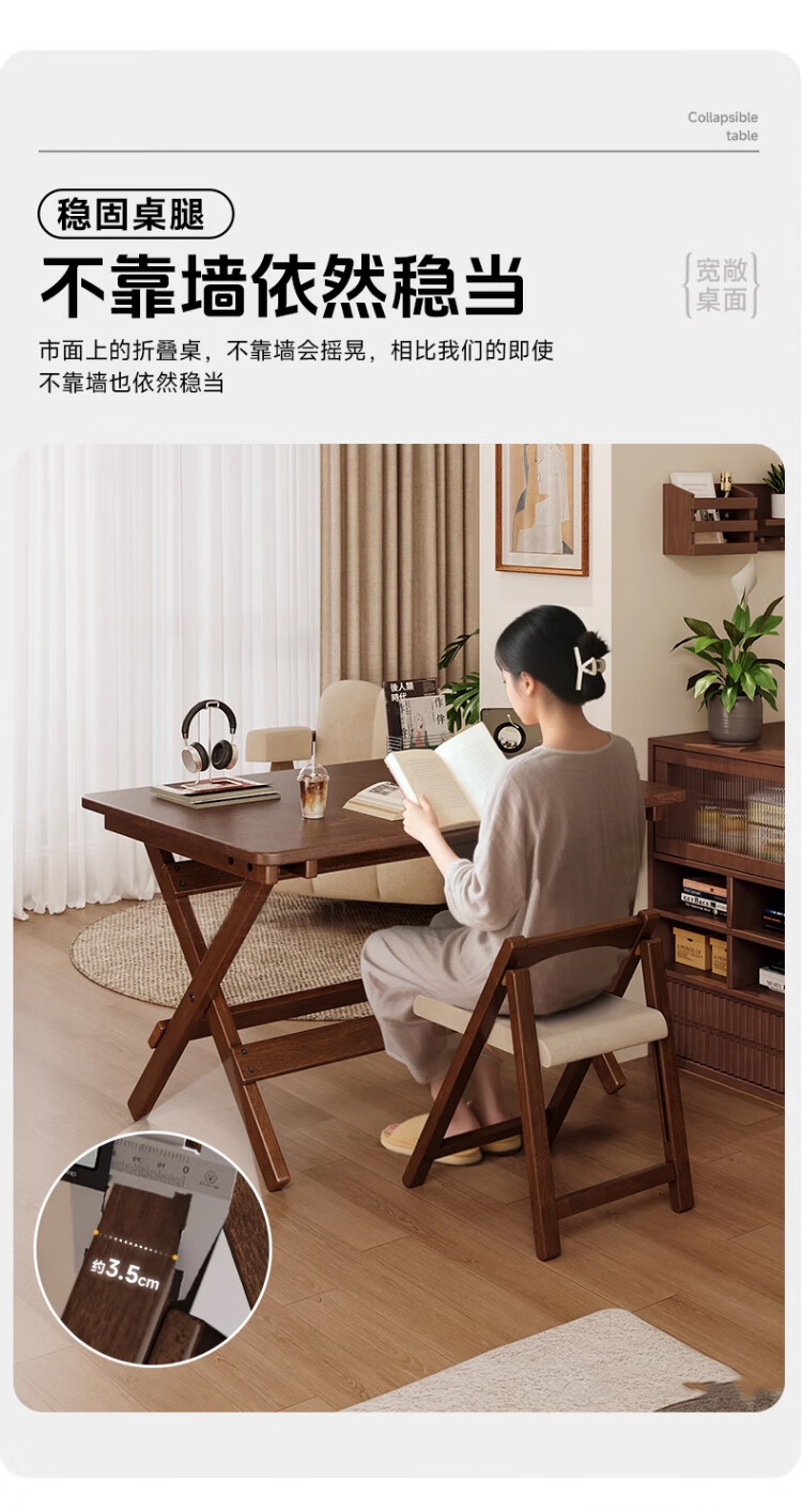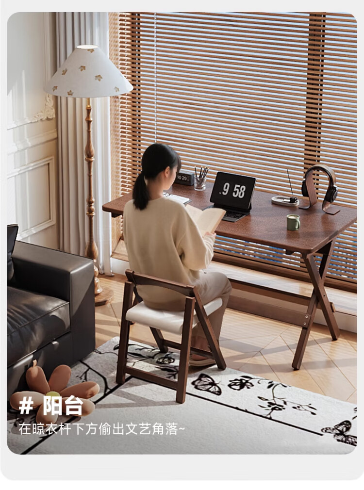 家逸实木折叠书桌学生家用电脑桌学习桌书房办公桌小户型床边写字桌子