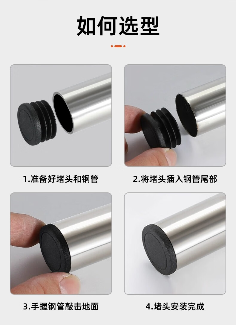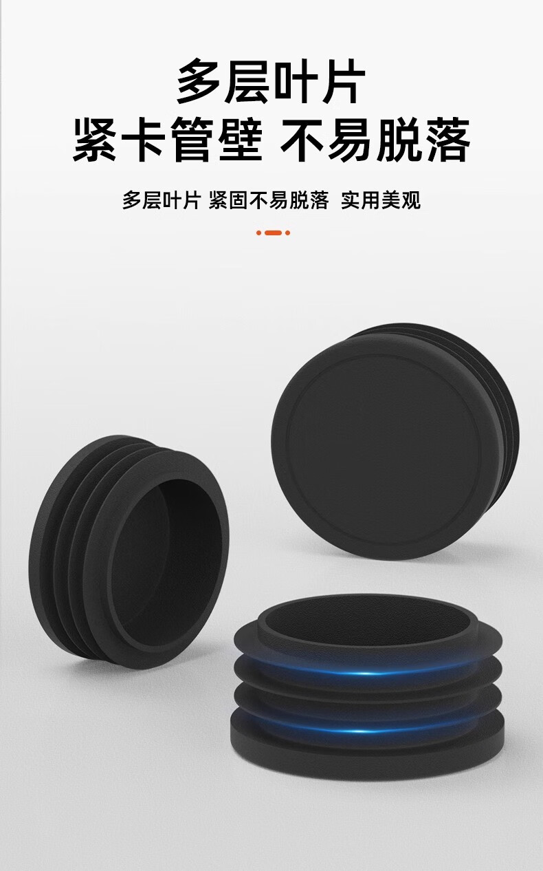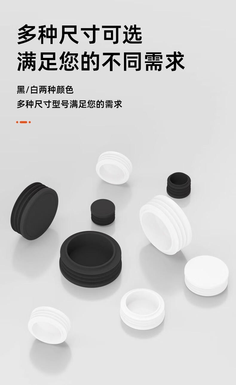 天卓五金方管堵塞头塑料堵头盖帽方钢塞头方管封口盖堵帽堵盖管塞防滑脚垫 Φ76黑色-5个