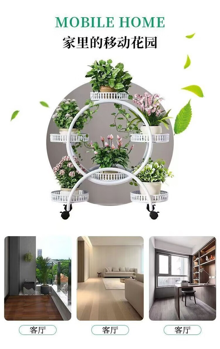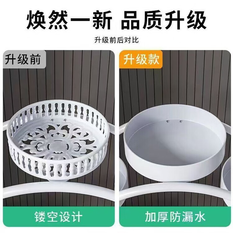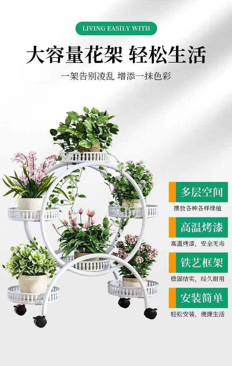 欣慕雅花架子客厅落地式可移动带轮绿萝花盆架铁艺多层阳台花架家用落地 白色--加粗加厚6盆(万向轮)