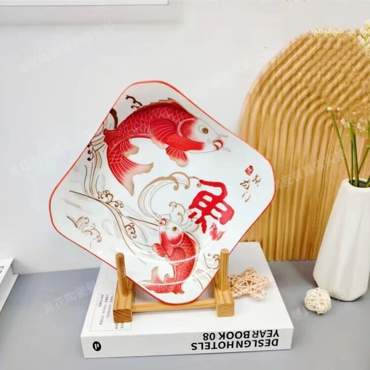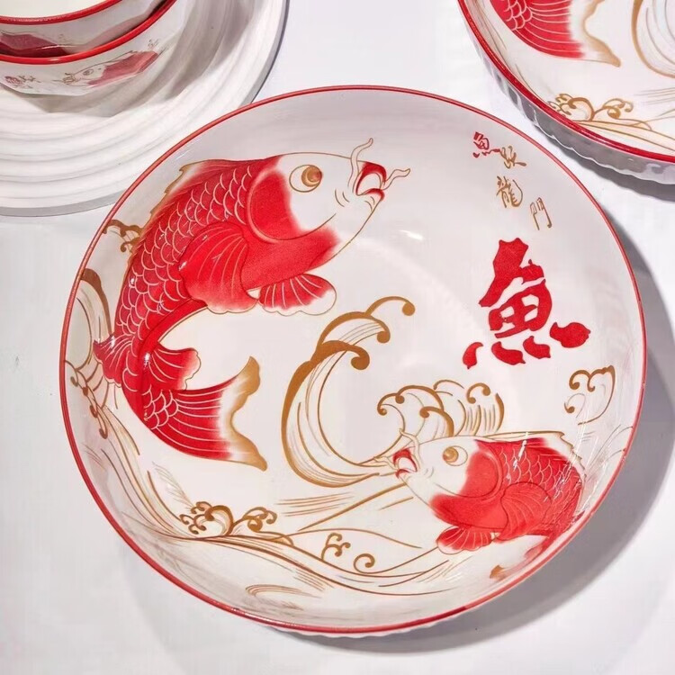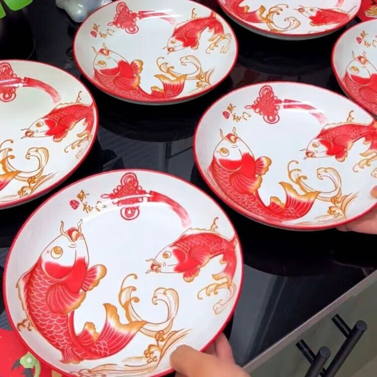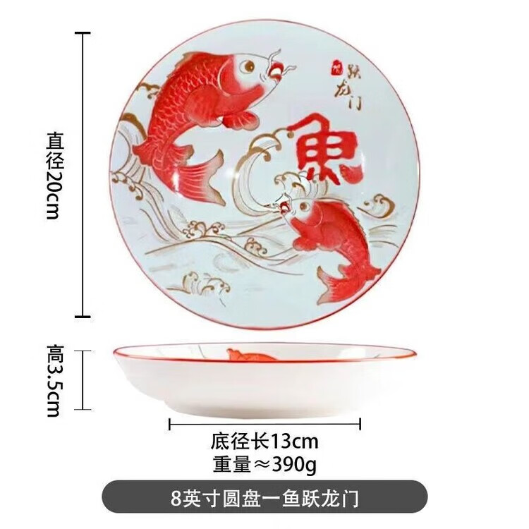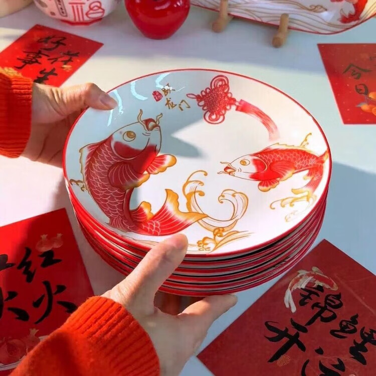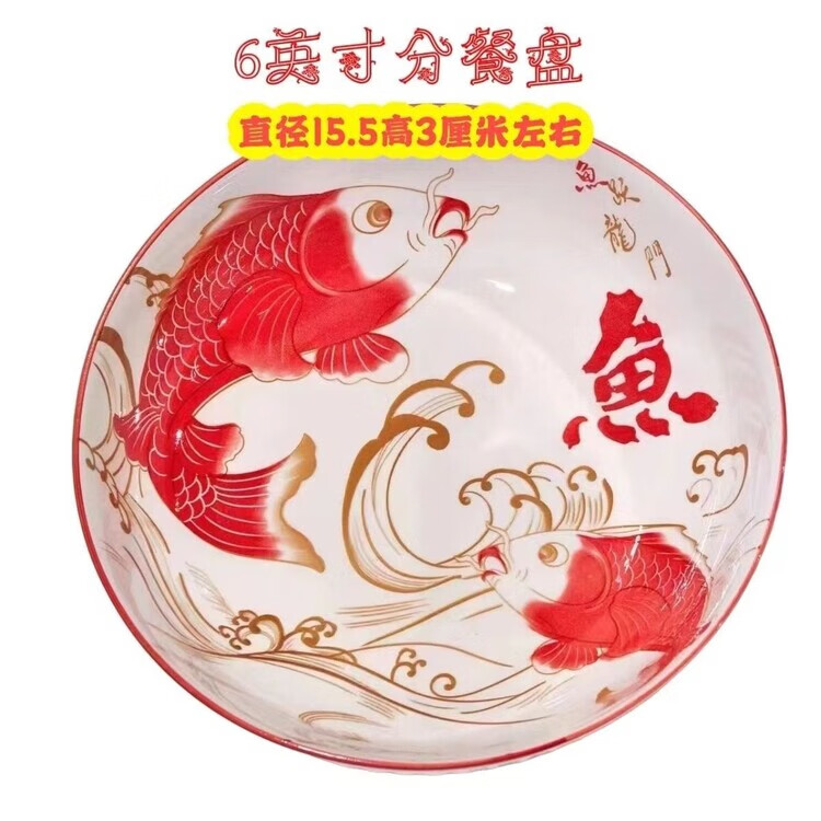 泰禧阁新年鱼跃龙门陶瓷家用餐具釉下彩锦鲤盘子工艺英寸吉祥复古厨房 厂家直销 6.25英寸圆盘4个直径15.5CM