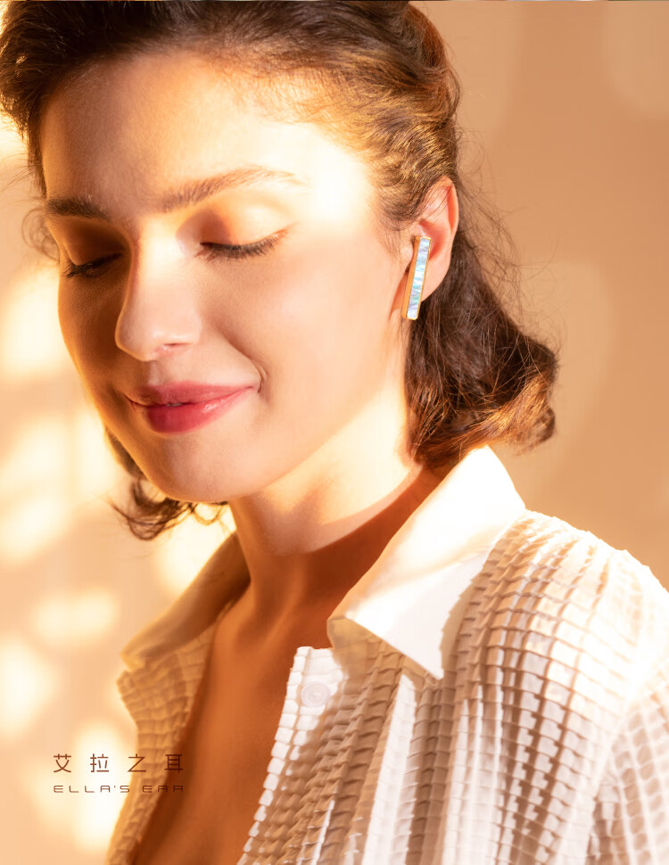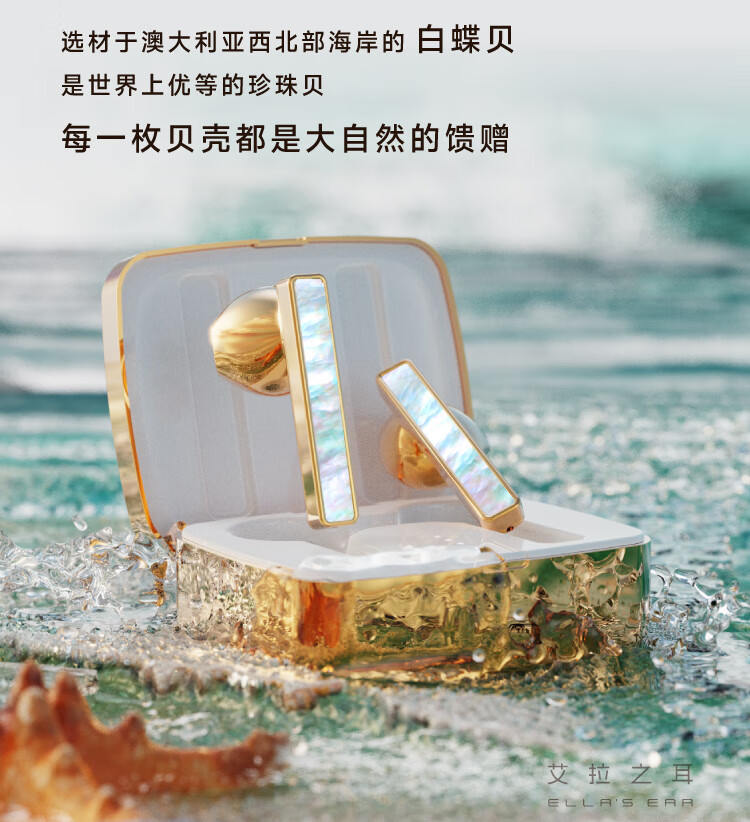 艾拉之耳【全球首创】澳洲天然白贝母宝石蓝牙耳机TWS无线半入耳式降噪时尚艺术穿戴设备轻奢礼物 【潮嗣·虹彩贝母】礼盒包装