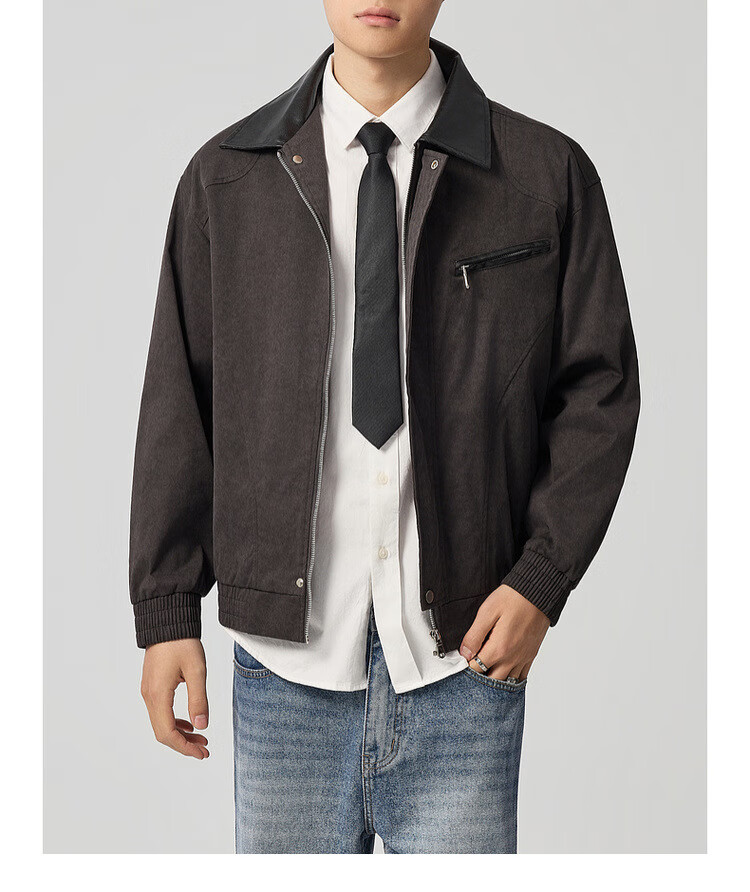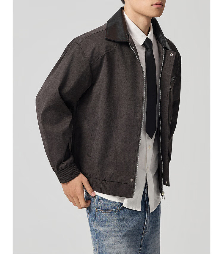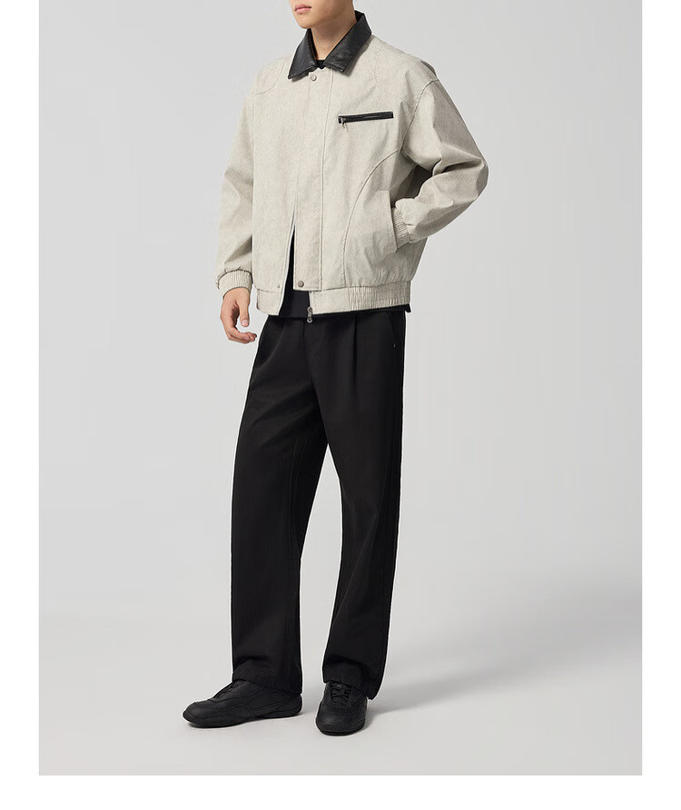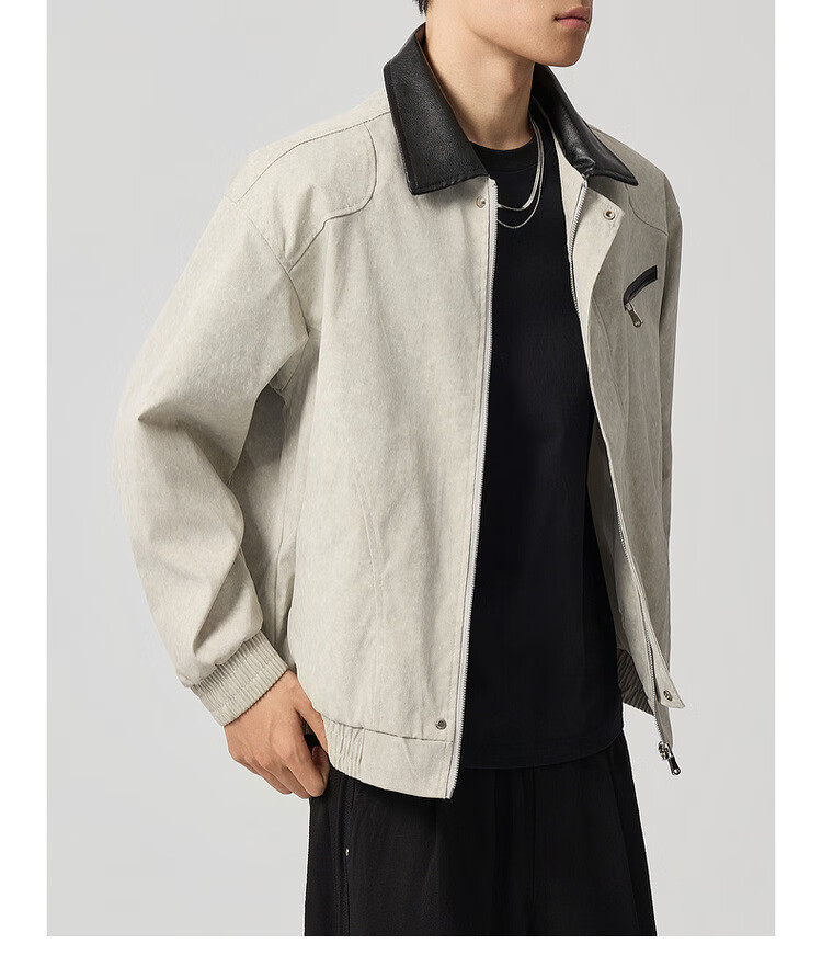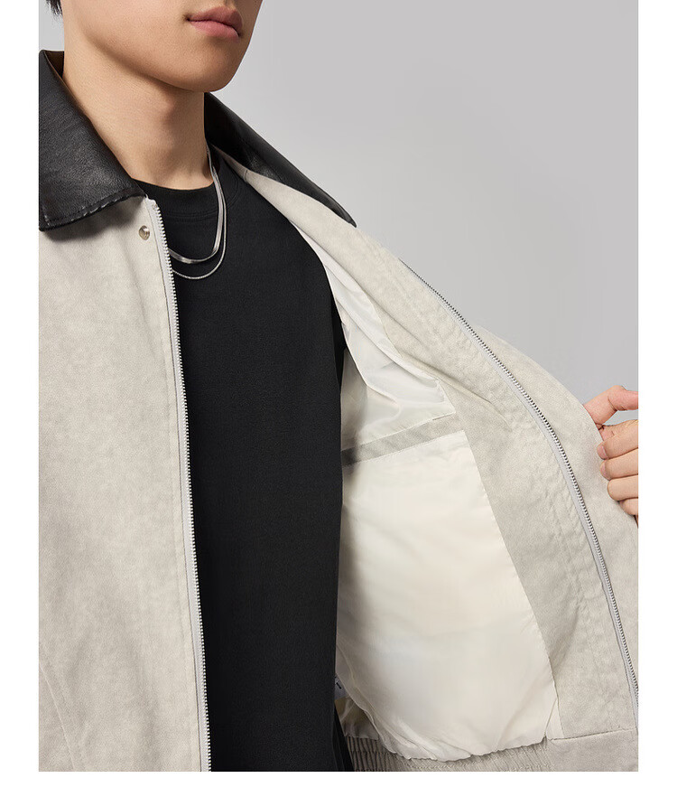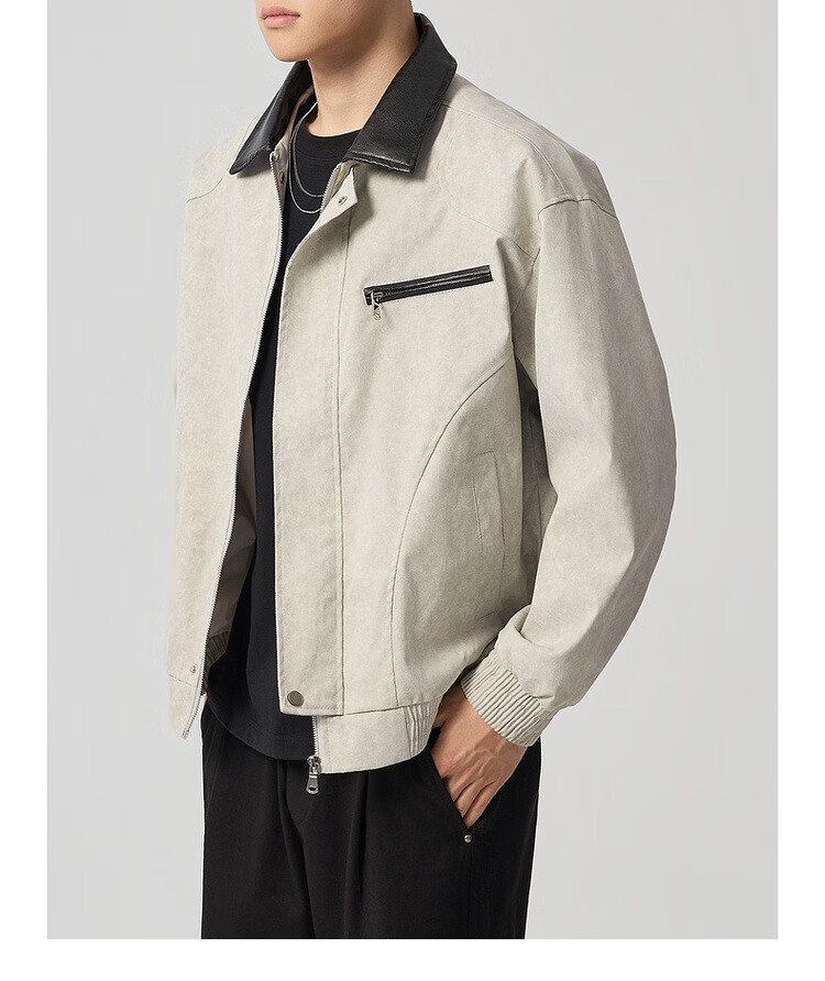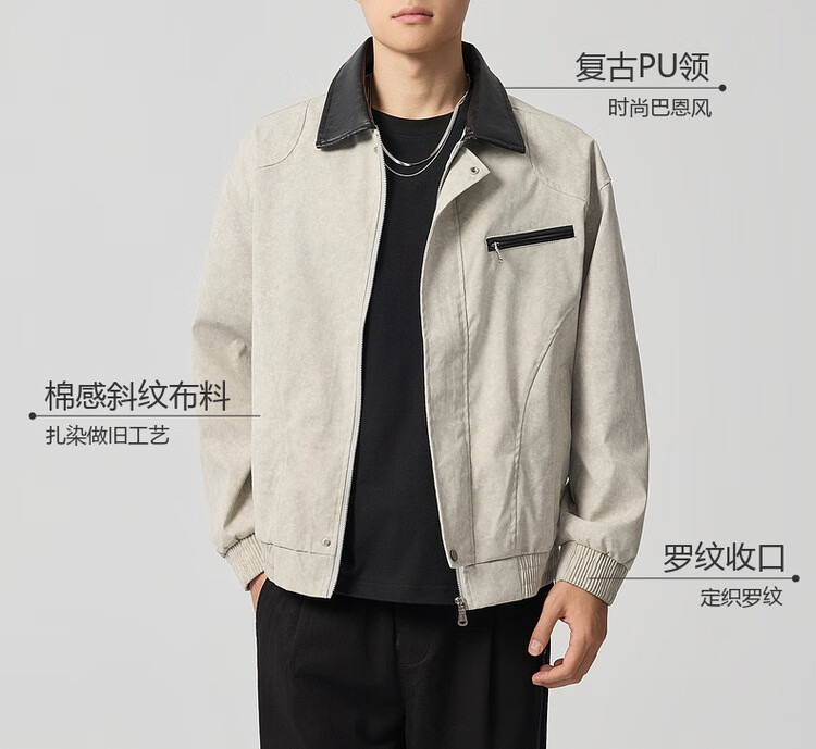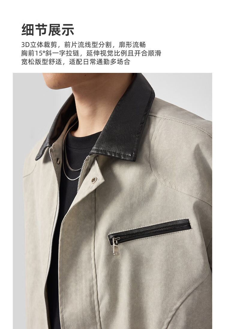 墨麦客(MMAICCO)美式复古工装翻领夹克巴恩风夹克男2025秋季新款撞色宽松男士夹克 浅灰色 常规 巴恩风工装翻领夹克 M