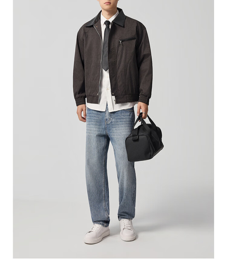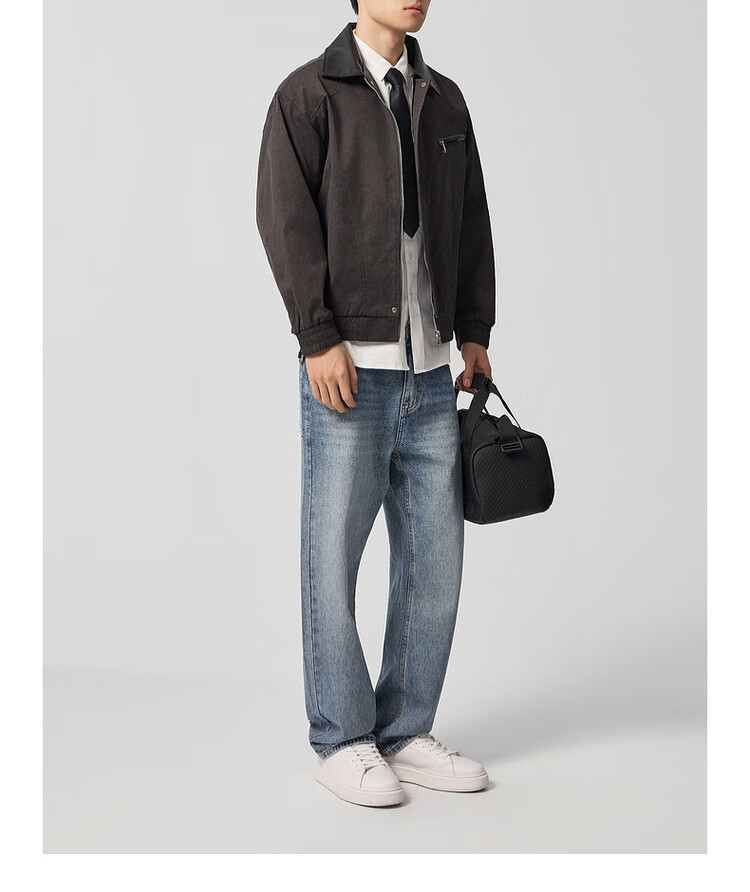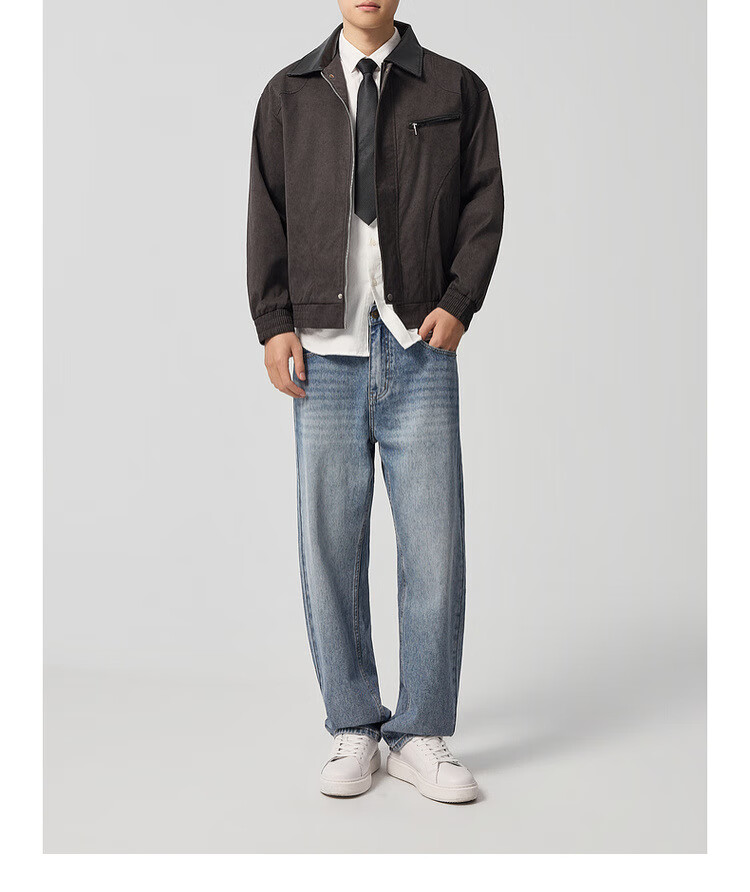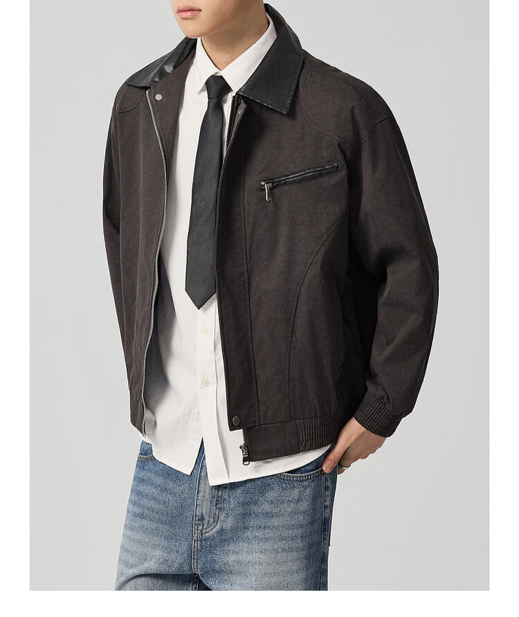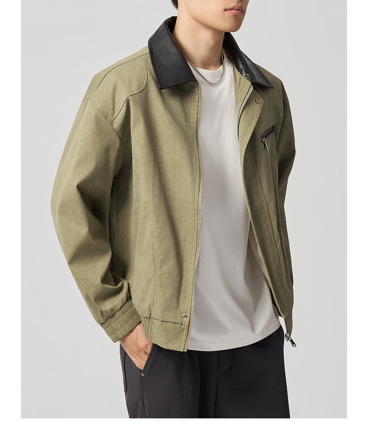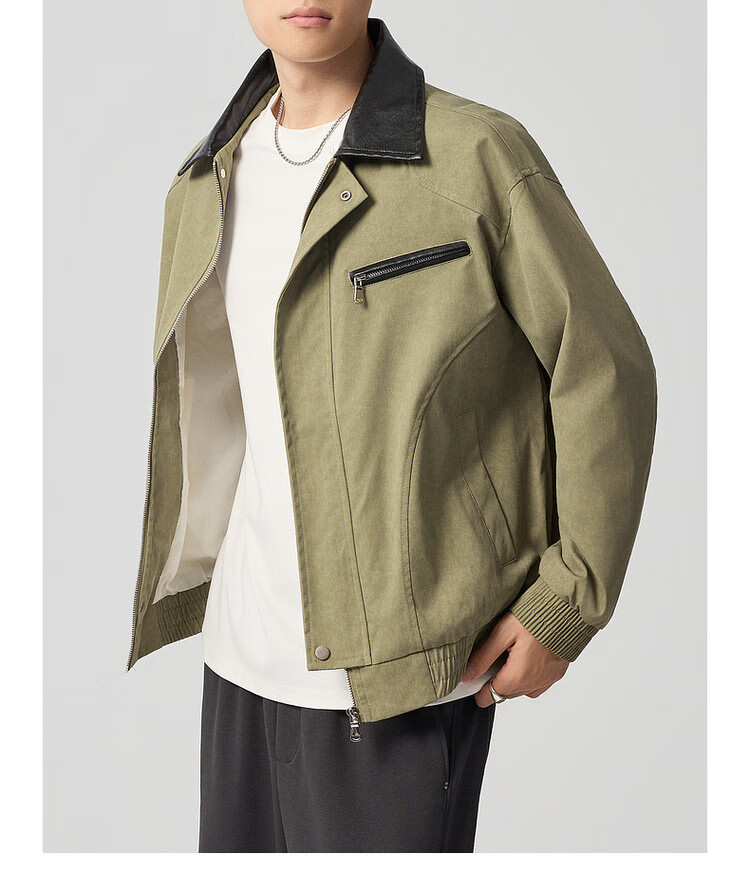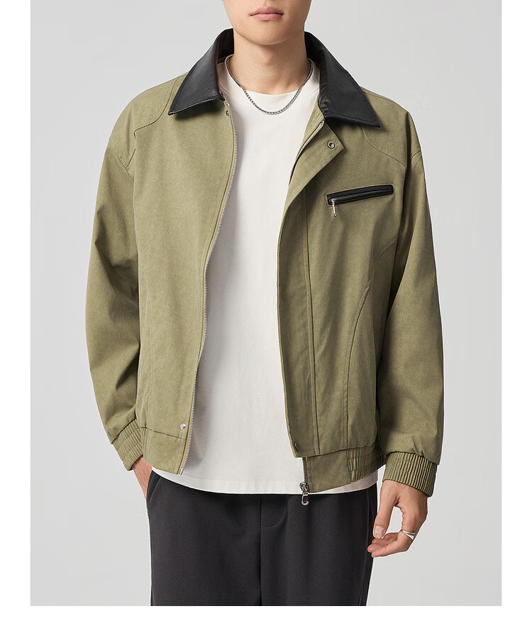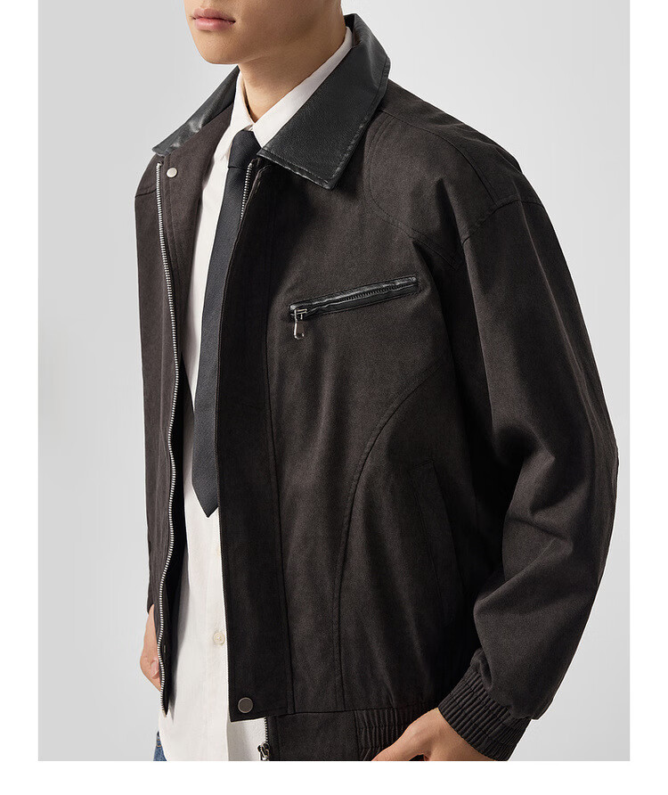墨麦客(MMAICCO)美式复古工装翻领夹克巴恩风夹克男2025秋季新款撞色宽松男士夹克 浅灰色 常规 巴恩风工装翻领夹克 M
