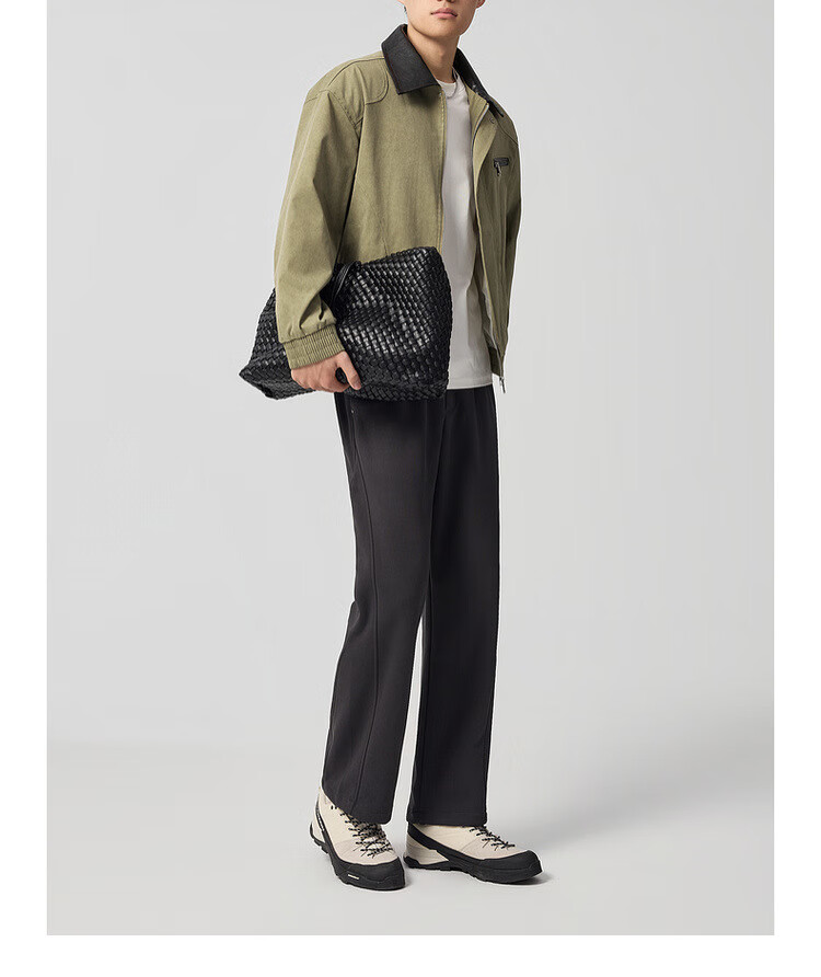 JEEP SPIRIT吉普新款情侣套装时尚休闲百搭宽松潮流帅气立领长袖跑步条纹撞色 黑色 XL