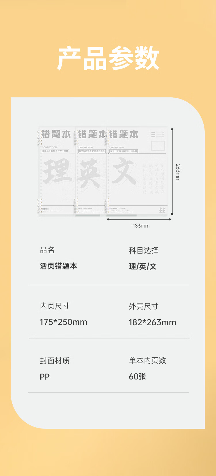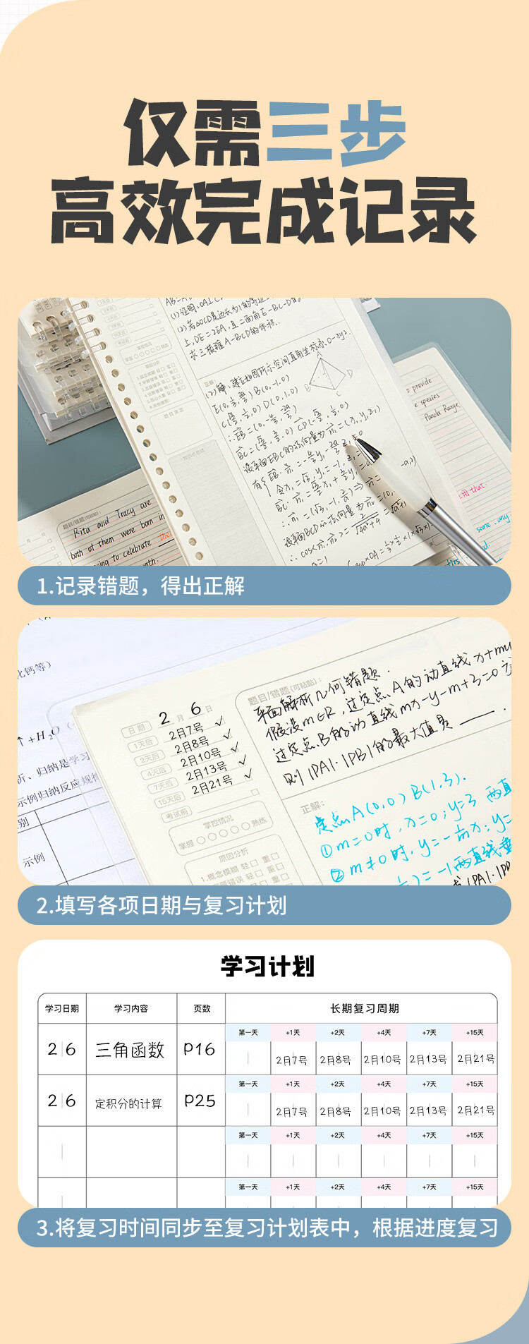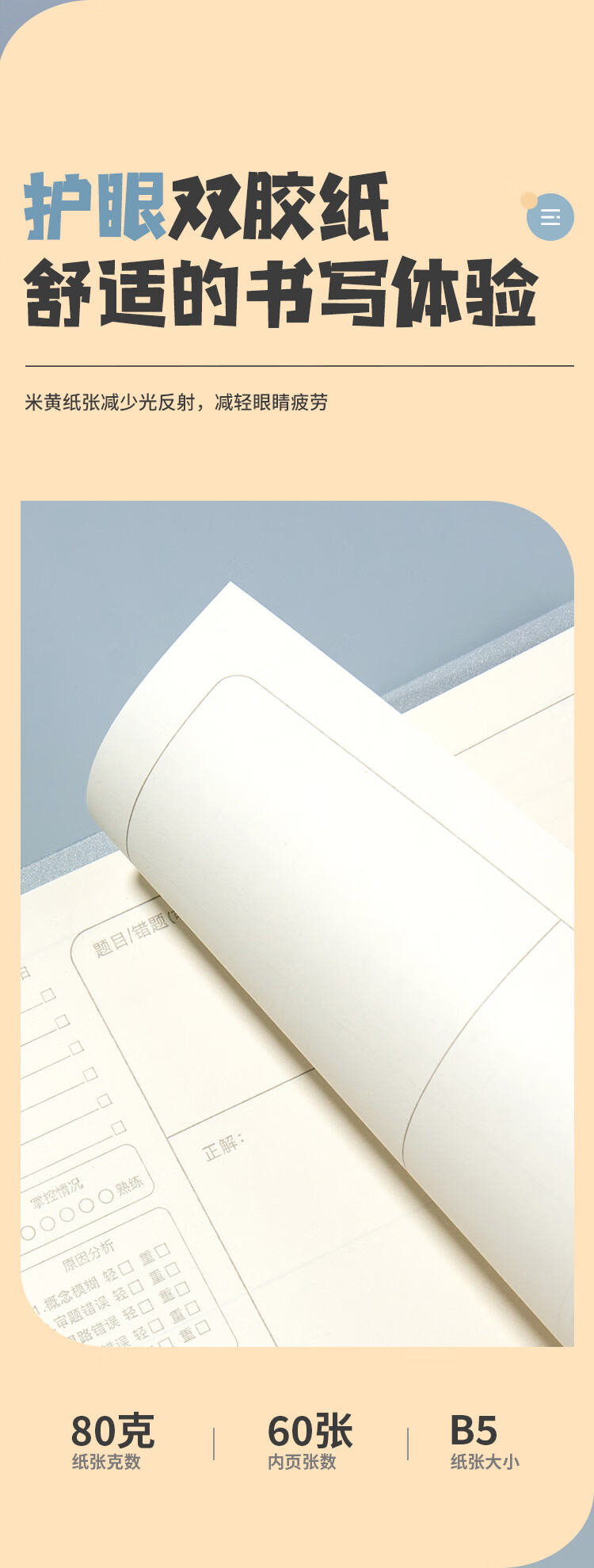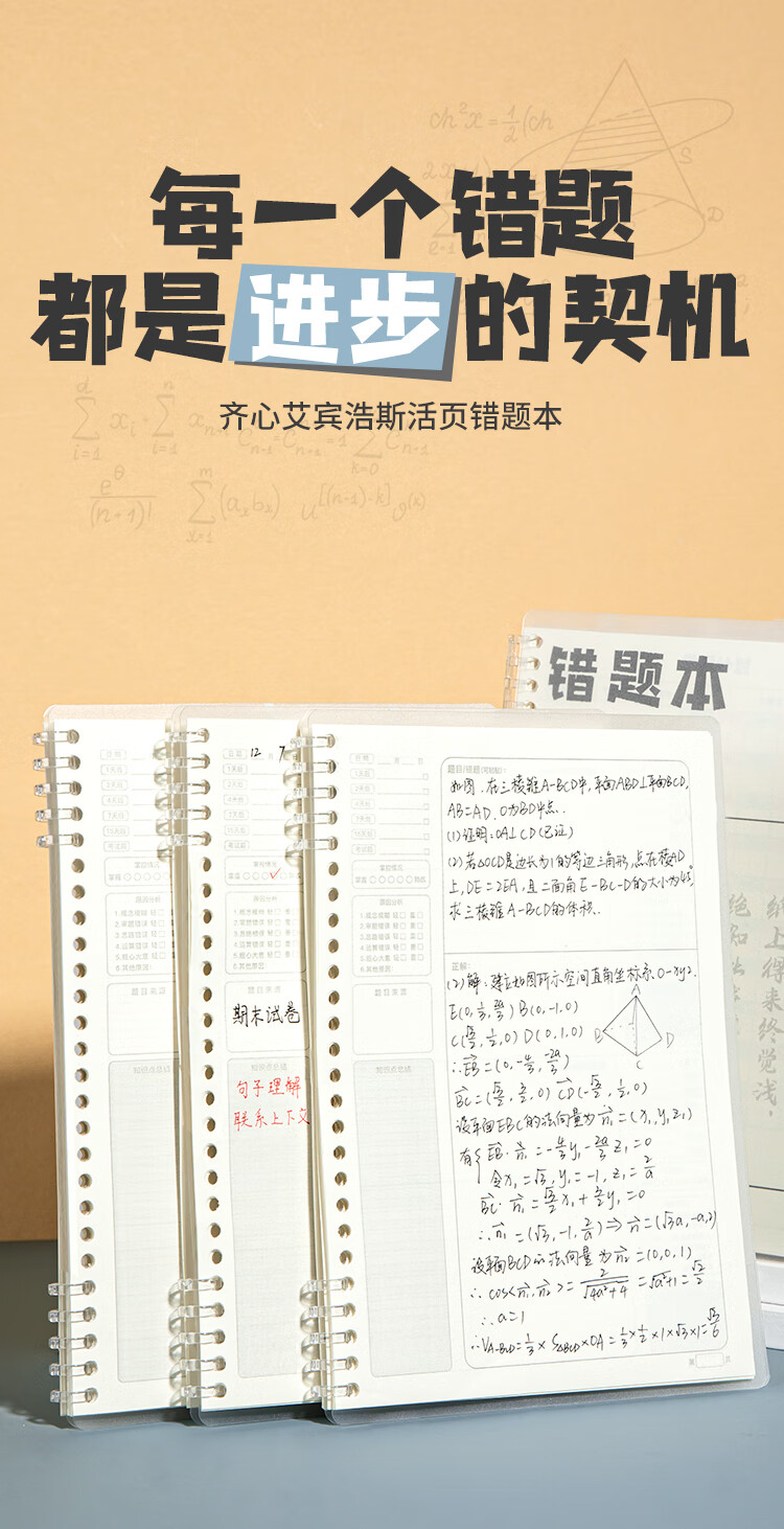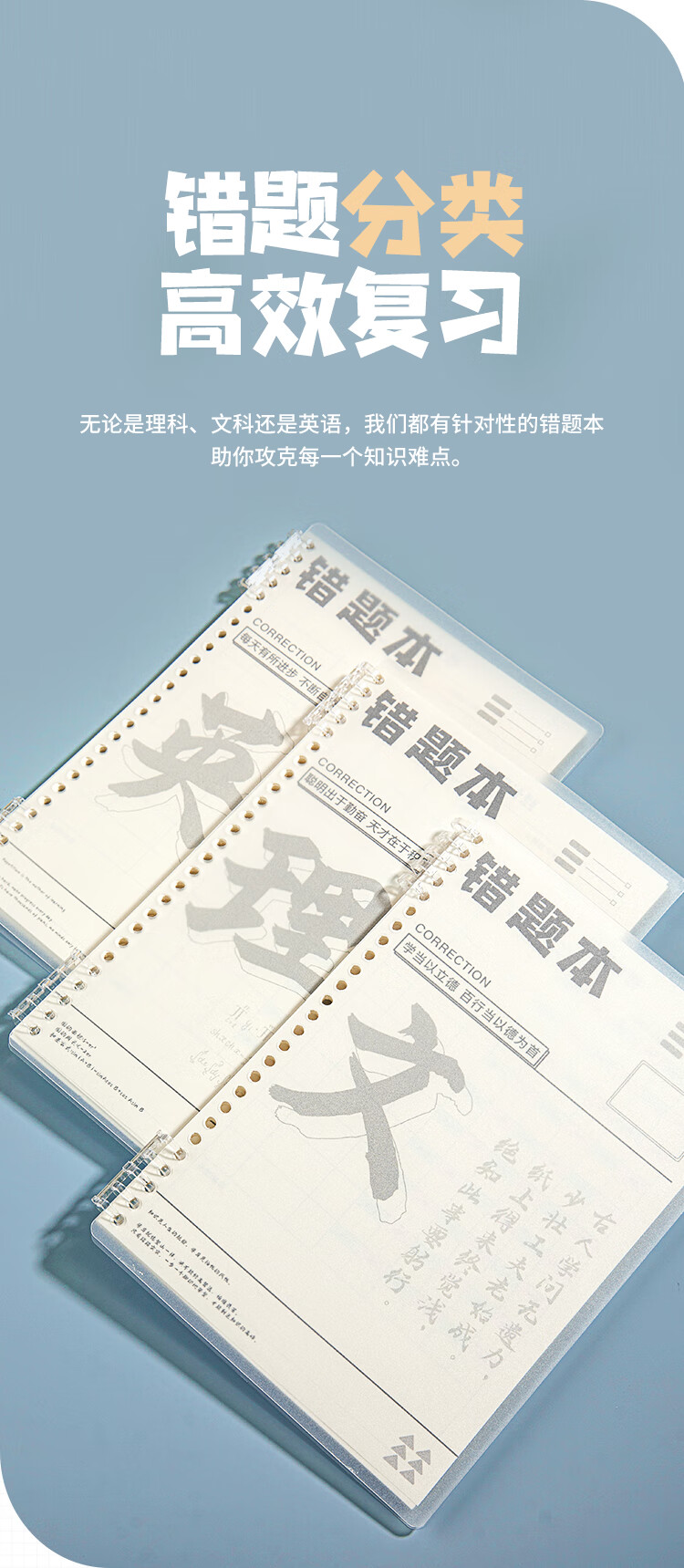齐心(COMIX)【热门商品】理科活页错题本 学生错题笔记本本子b5/60张 考研中高考复习物理化生数学本 DS-645