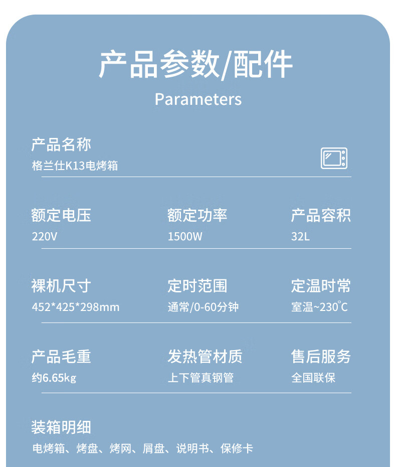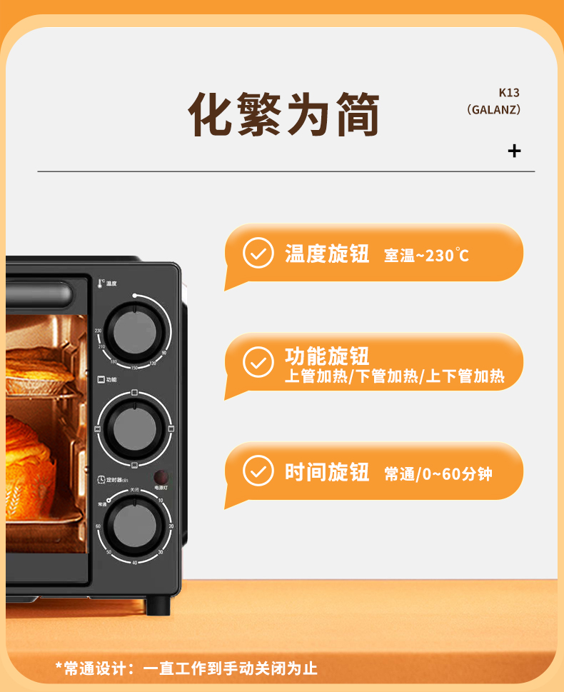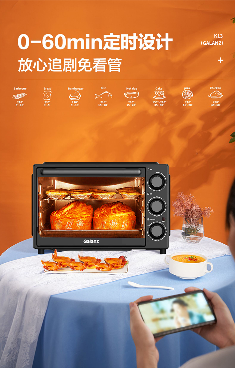 格兰仕(Galanz)烤箱家用烤箱电烤箱32升机械式操控上下精准控温专业烘焙易操作烘烤蛋糕面包K13